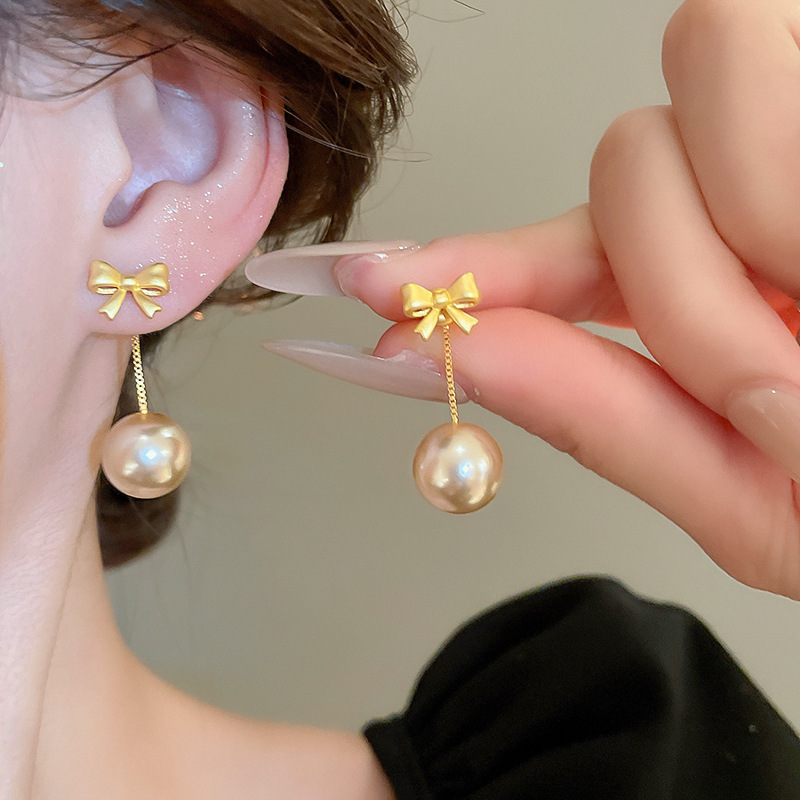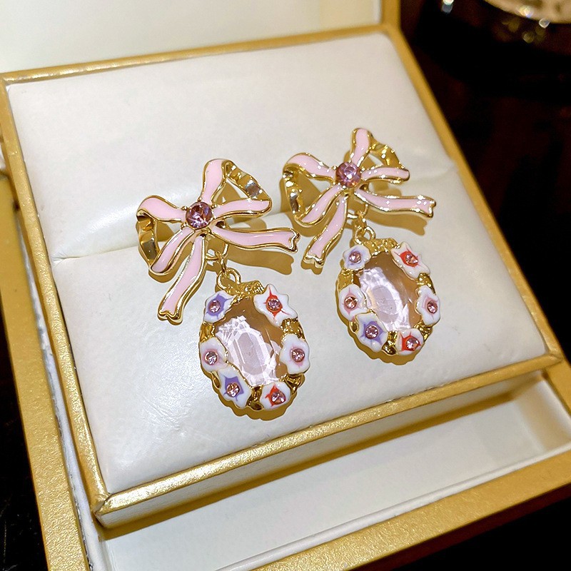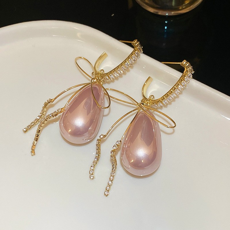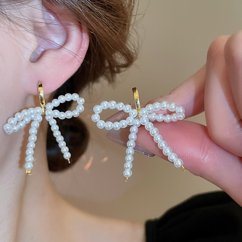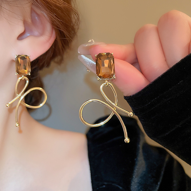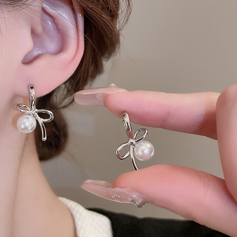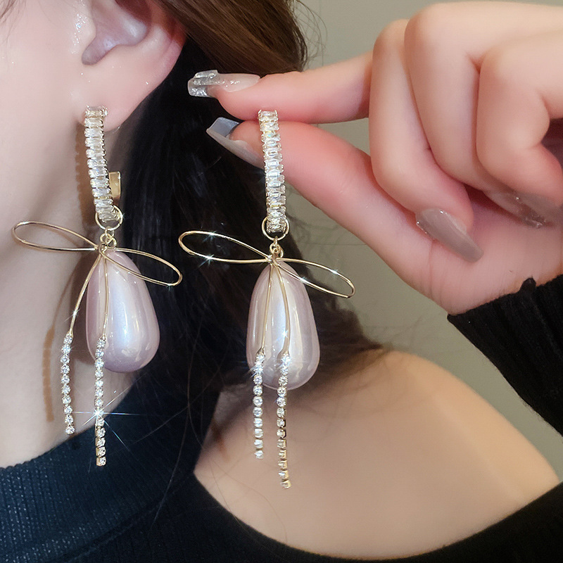 Aguja de plata Pendientes de lazo de diamantes coreanos Pendientes de temperamento de moda de todo fósforo Pendientes de diseño de nicho Sentido de lujo ligero