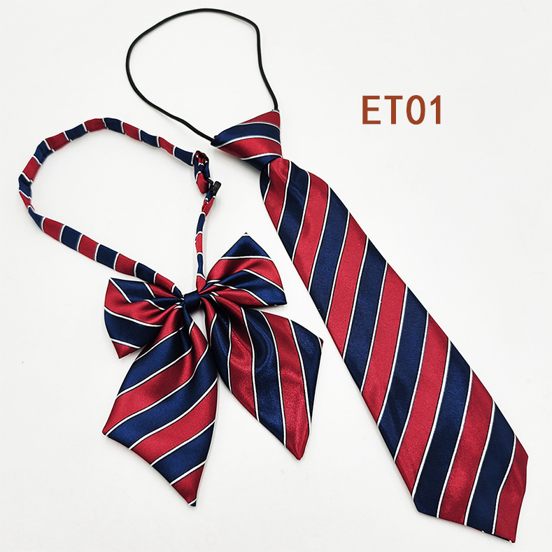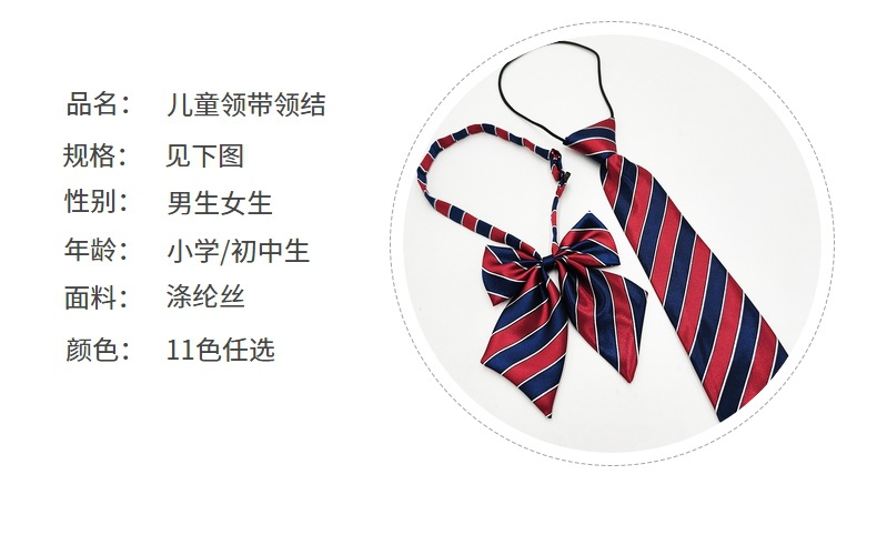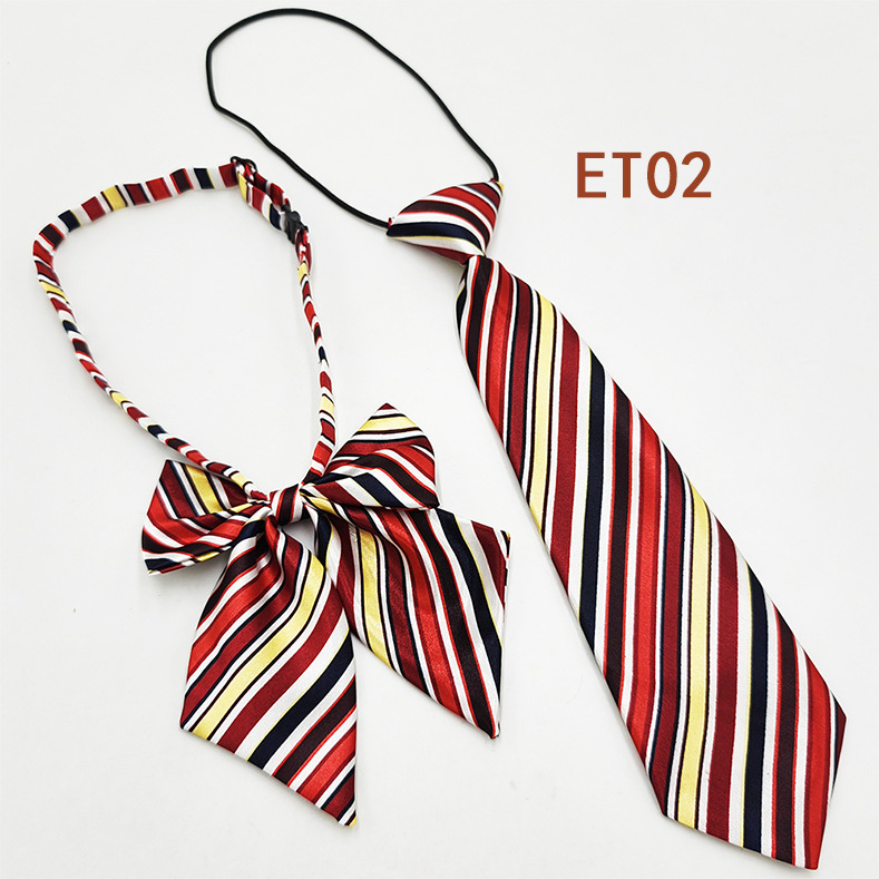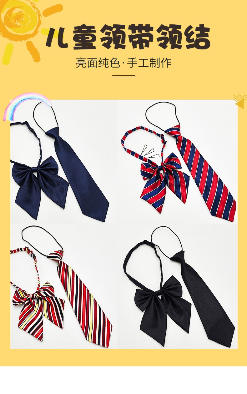 Spot de fábrica al por mayor conjunto de pajarita de corbata para niños de escuela primaria, corbata a rayas de color sólido, pajarita de raíz de plumas