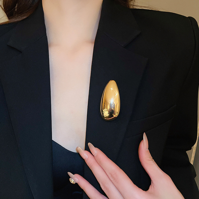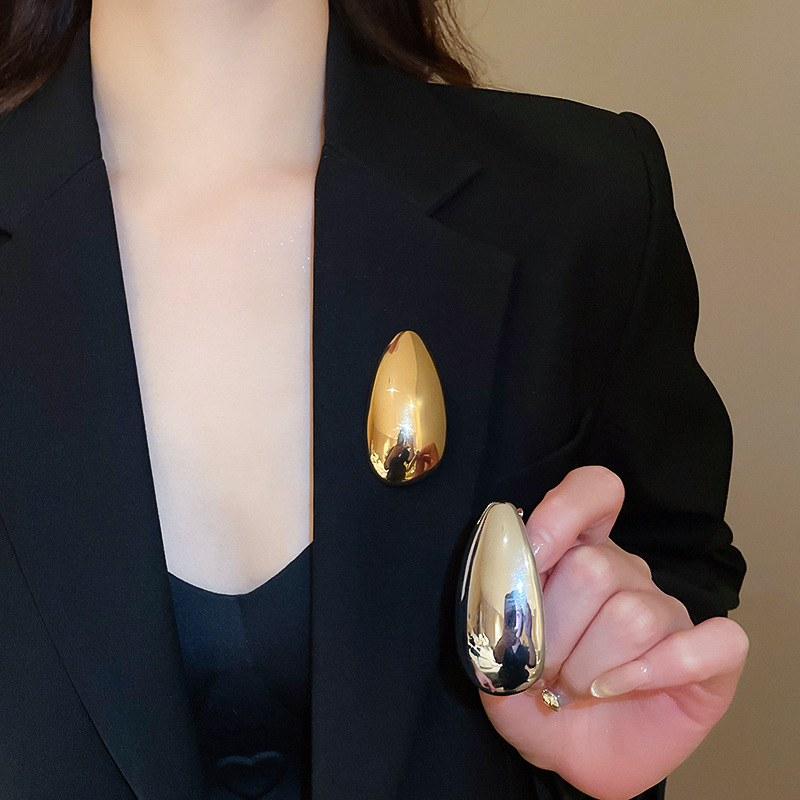 Broche de semillas de melón exagerado ovalado irregular transfronterizo, lujo ligero de nicho, alfileres de alta gama, accesorios de joyería simples de moda