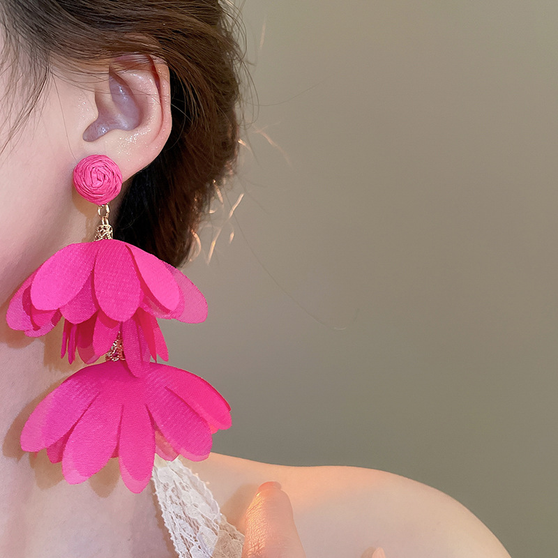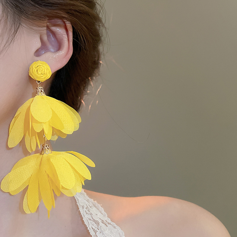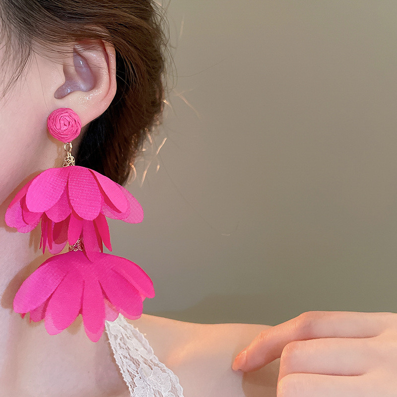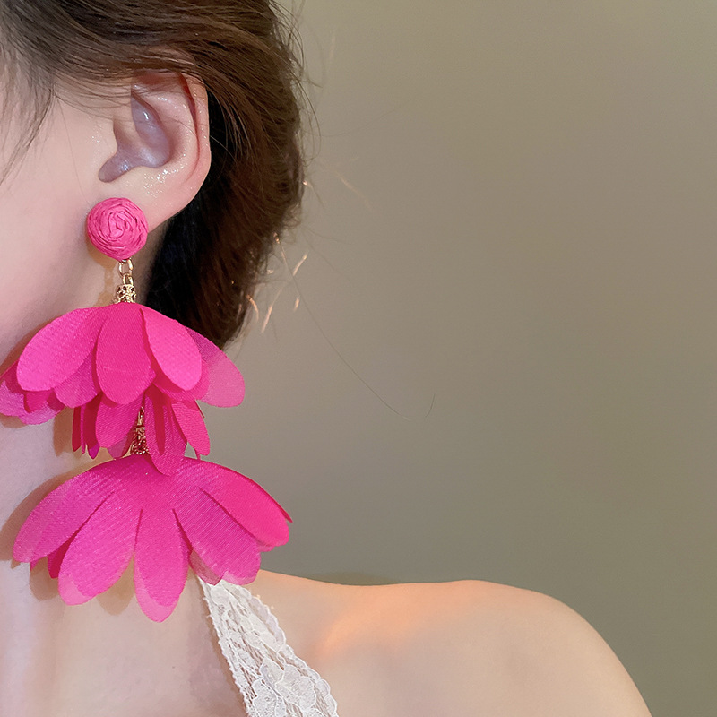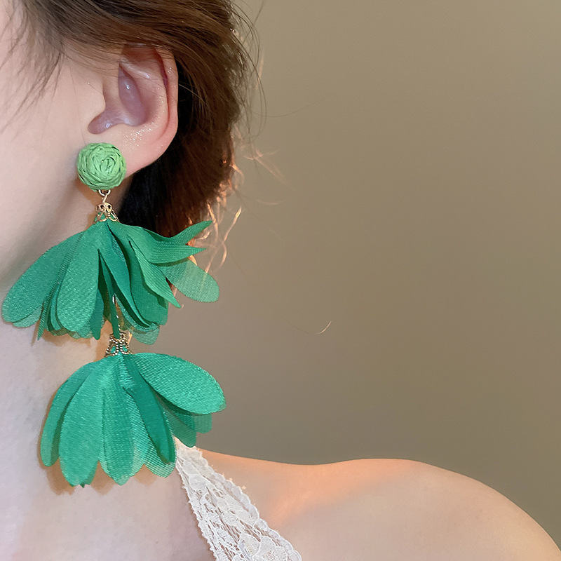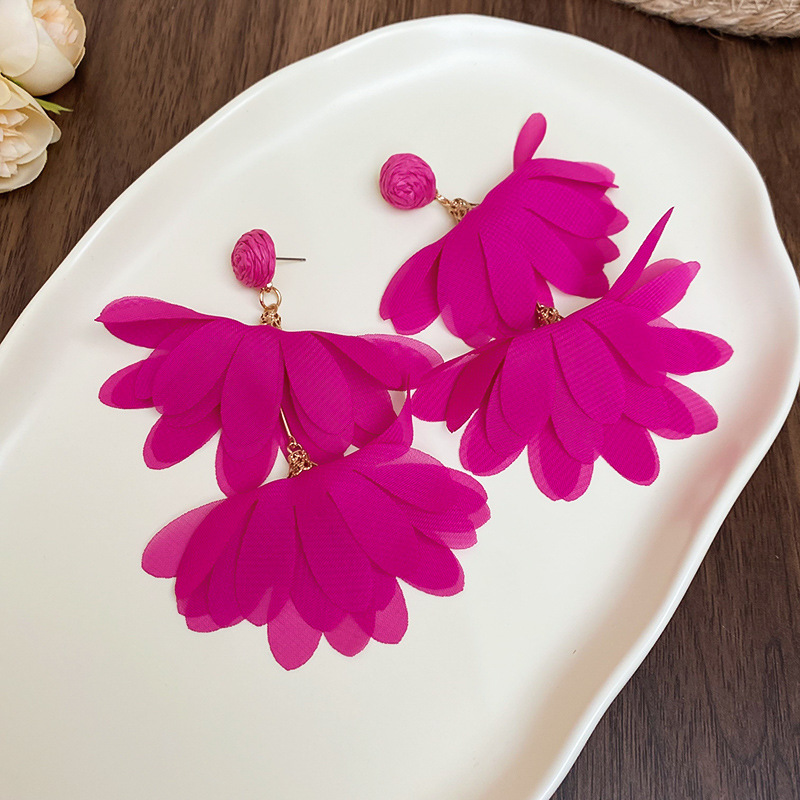 Pendientes de borla de flores de gasa de hierba de Lafite de moda Pendientes de estilo de vacaciones de personalidad de nicho Pendientes exagerados de lujo ligero