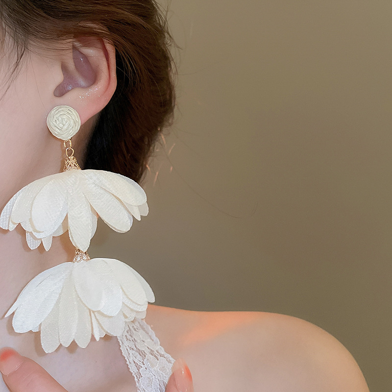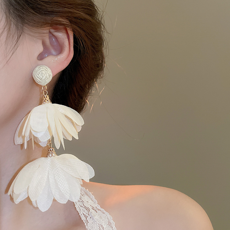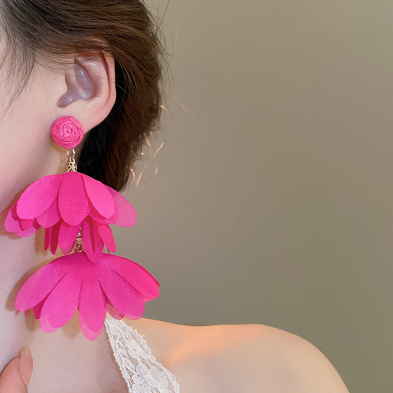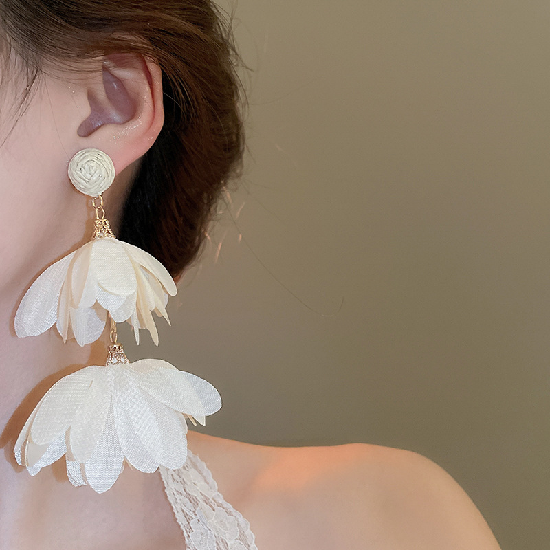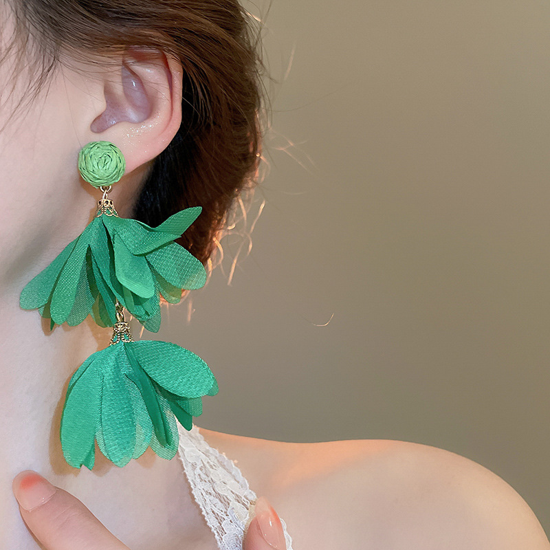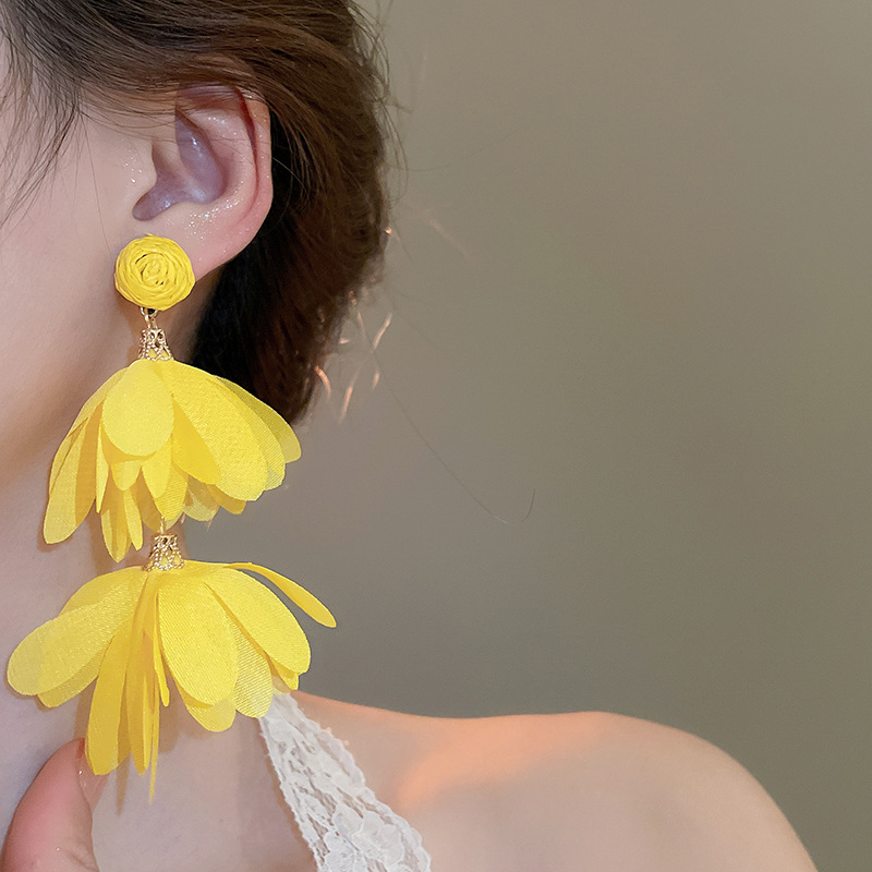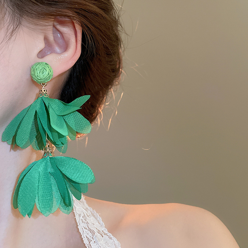 Pendientes de borla de flores de gasa de hierba de Lafite de moda Pendientes de estilo de vacaciones de personalidad de nicho Pendientes exagerados de lujo ligero