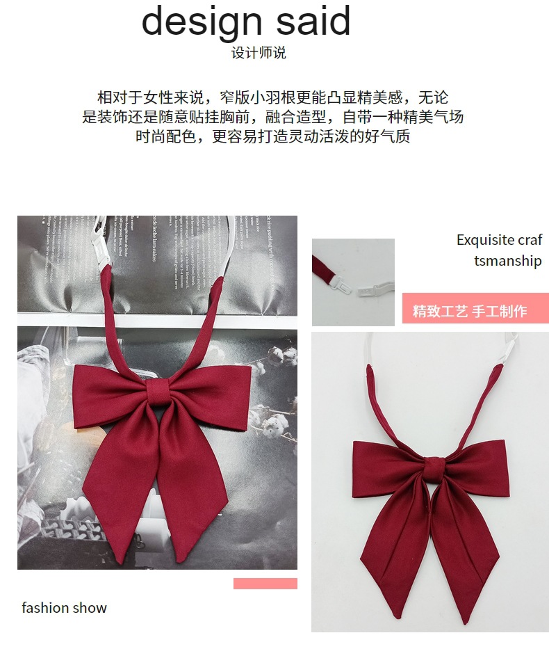 Spot al por mayor versión estrecha niña pequeña pajarita de raíz de plumas pajarita flor moda nuevo lazo color sólido jk pajarita satinado