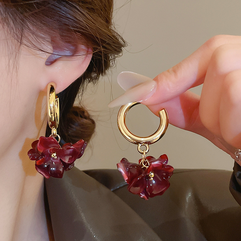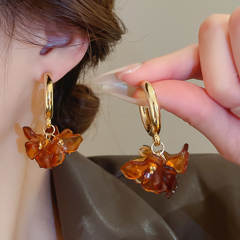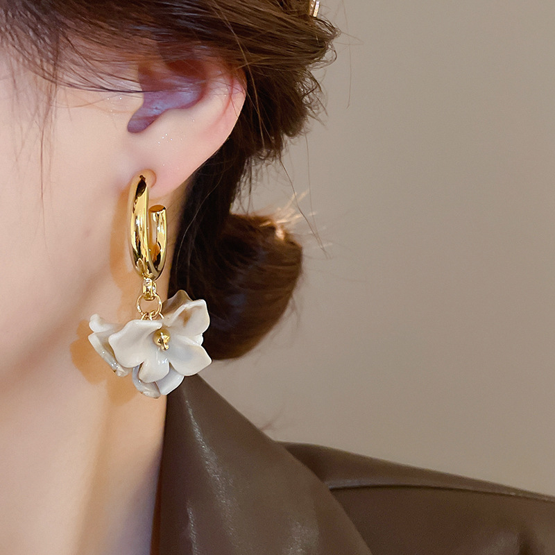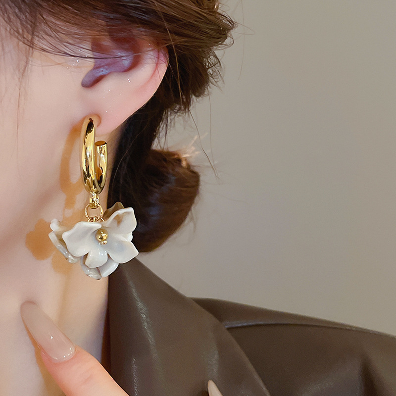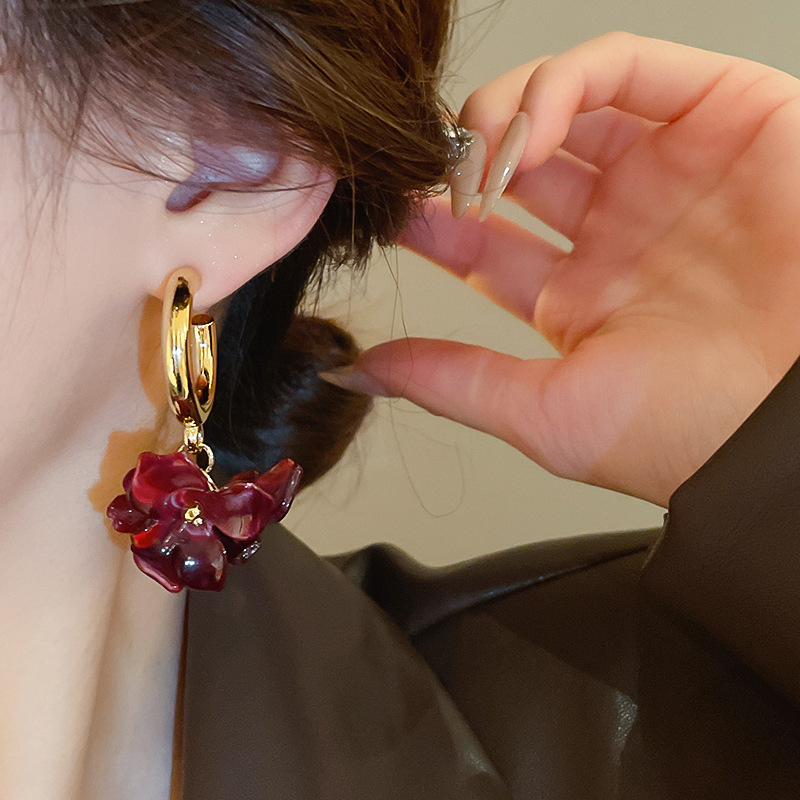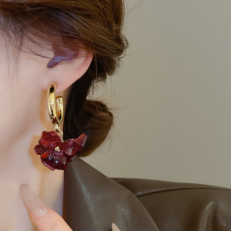 Pendientes de flor Maillard con aguja de plata Pendientes retro de nicho Pendientes de temperamento de moda Lujo ligero Sentido de alta gama Otoño e invierno al por mayor