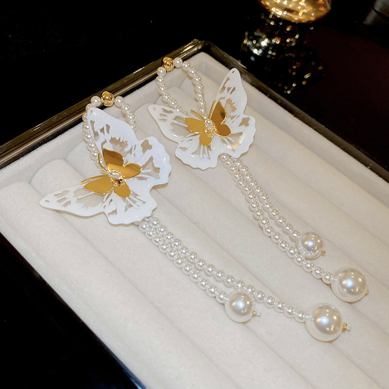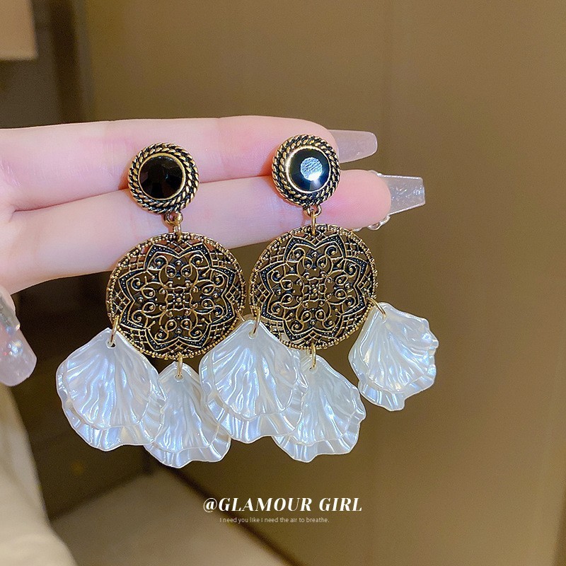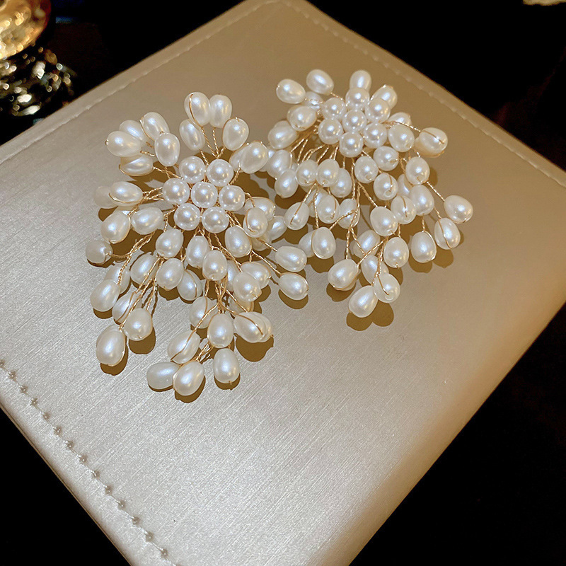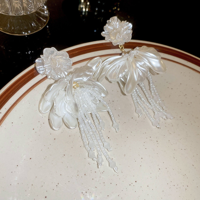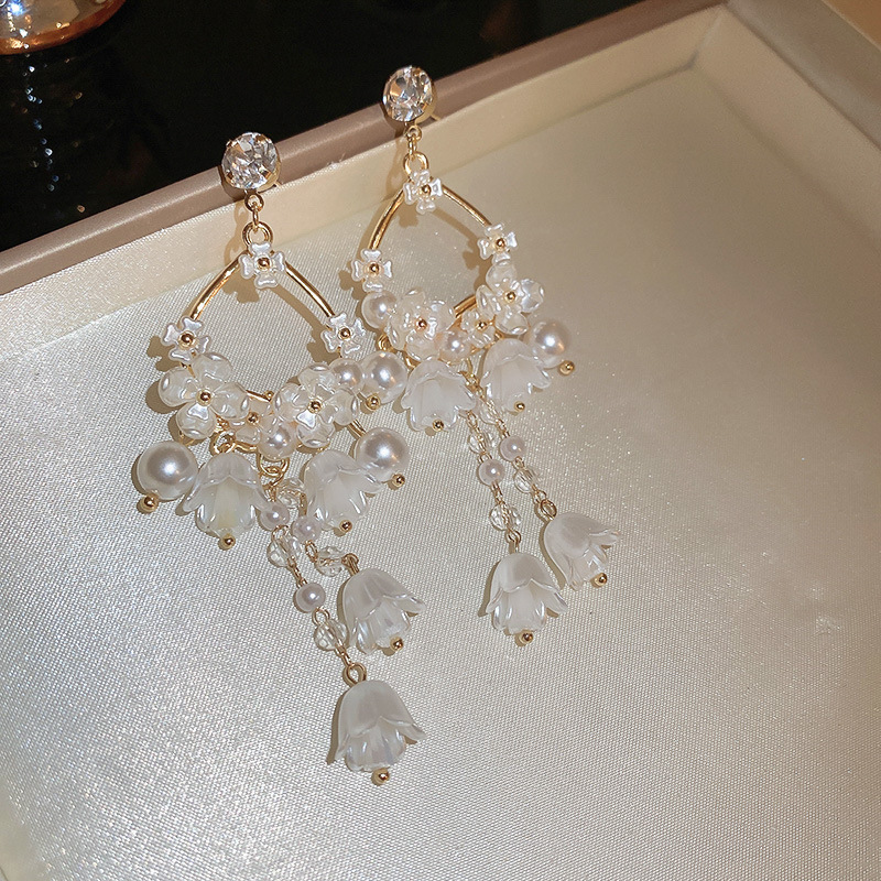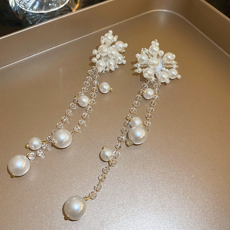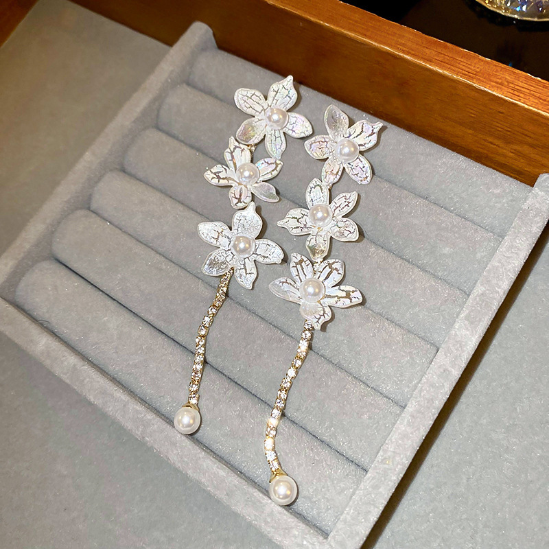 Pendientes de perlas con borla de flores de alta calidad con aguja de plata Pendientes de todo fósforo de moda francesa de nuevo estilo Pendientes de alta calidad de lujo ligero