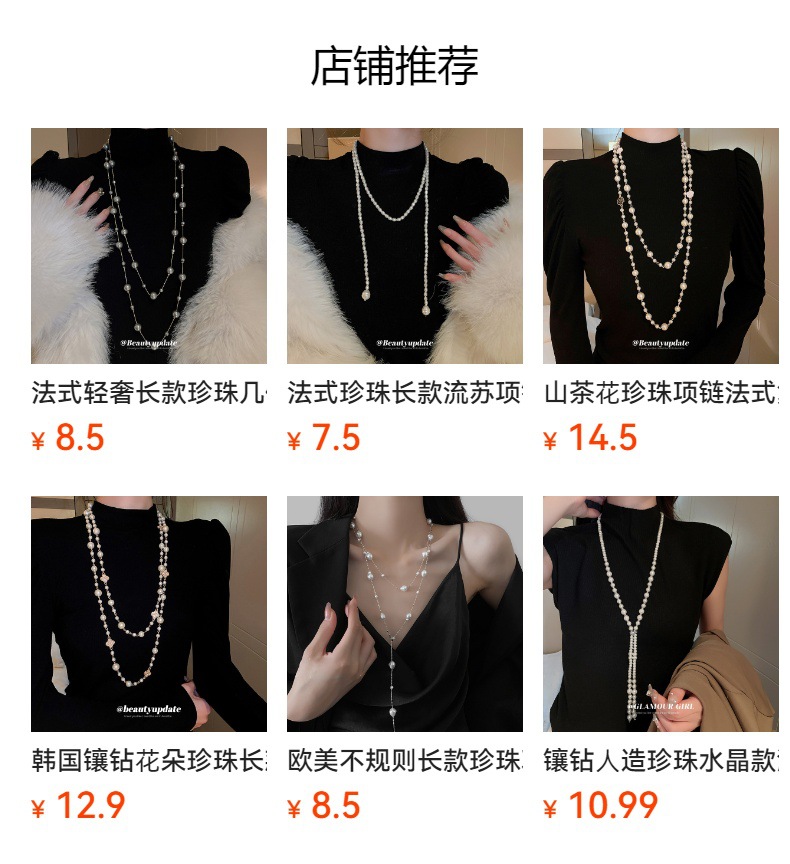 Collar de perlas artificiales transfronterizas europeas y americanas, moda femenina, temperamento de lujo ligero, cadena de suéter, sentido de alta gama, joyería de todo fósforo de nicho