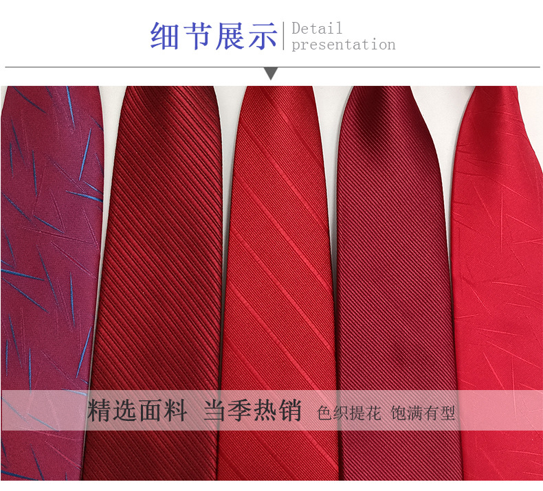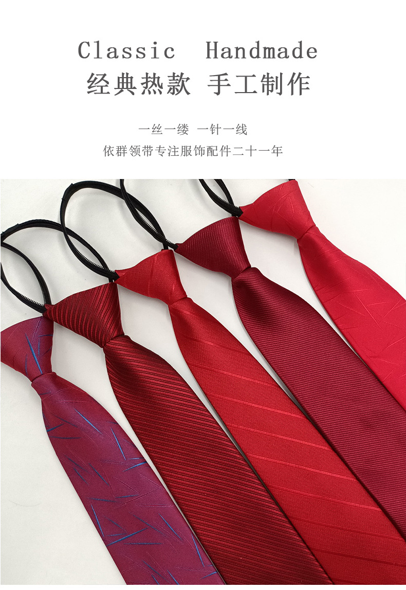 Corbata de cremallera roja para hombres fácil de tirar Estilo libre novio mejor hombre de negocios corbata casual a rayas de hilo teñido 8cm