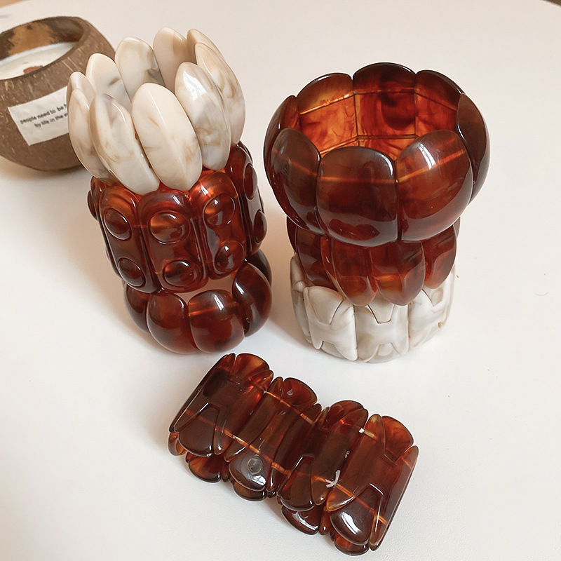 Maillard otoño e invierno pulseras elásticas ovaladas, pulsera de personalidad de nicho, temperamento de moda, joyería de alta gama de lujo ligero