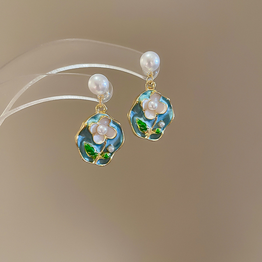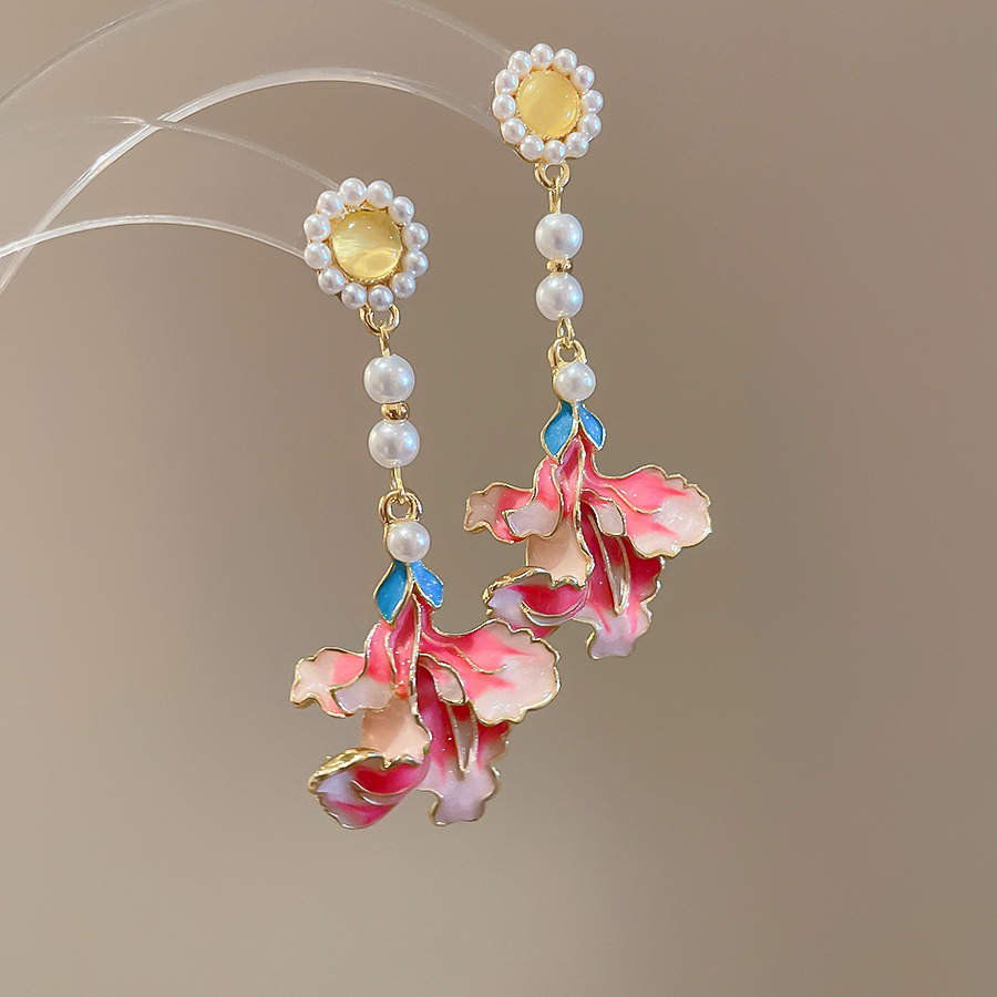 Pendientes de flores de color dopamina Pendientes dulces y frescos de primavera y verano Pendientes pequeños y elegantes de alta gama para mujer