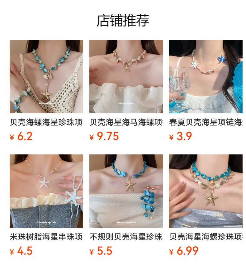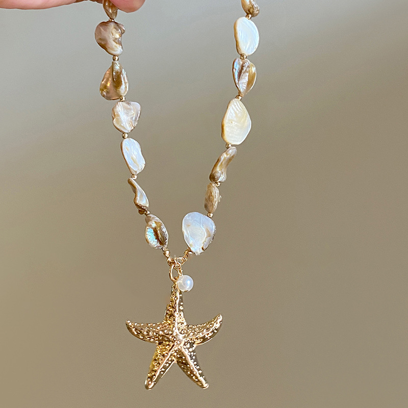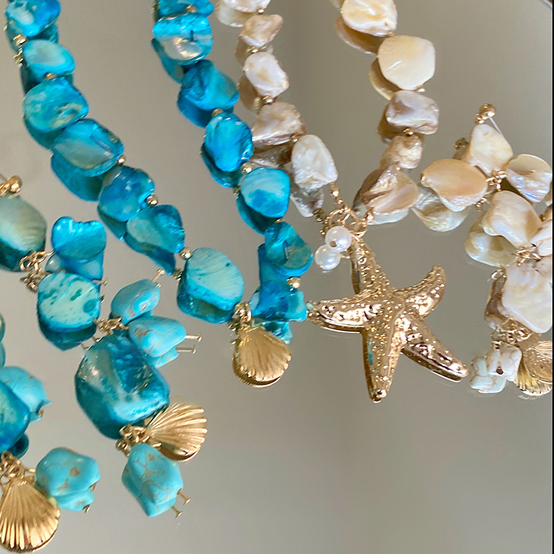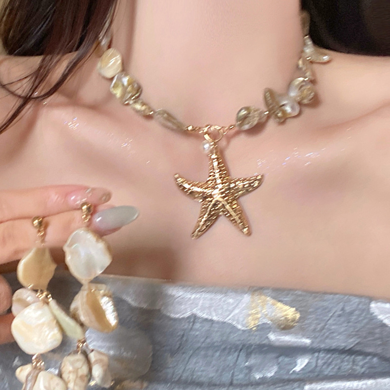 Concha estrella de mar collar de concha playa playa playa vacaciones temperamento temperamento cadena de clavícula moda de nicho europeo y americano accesorios de todo fósforo