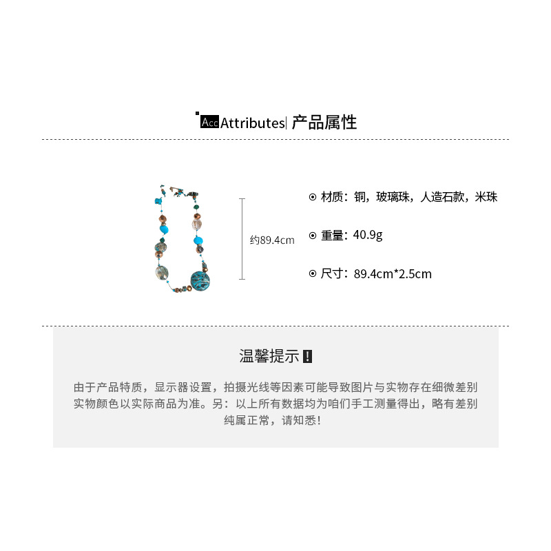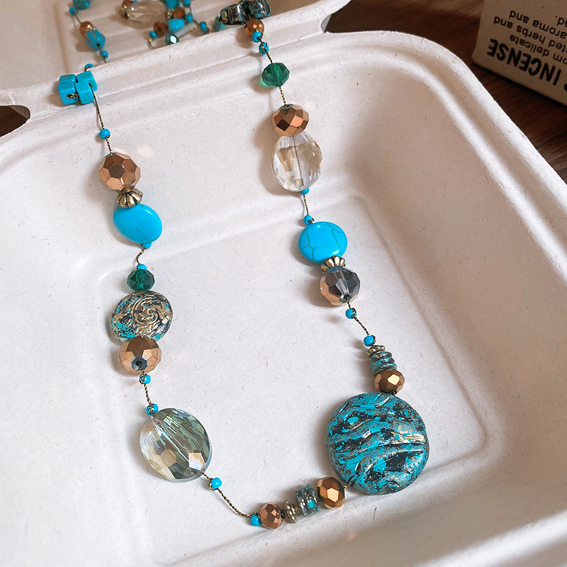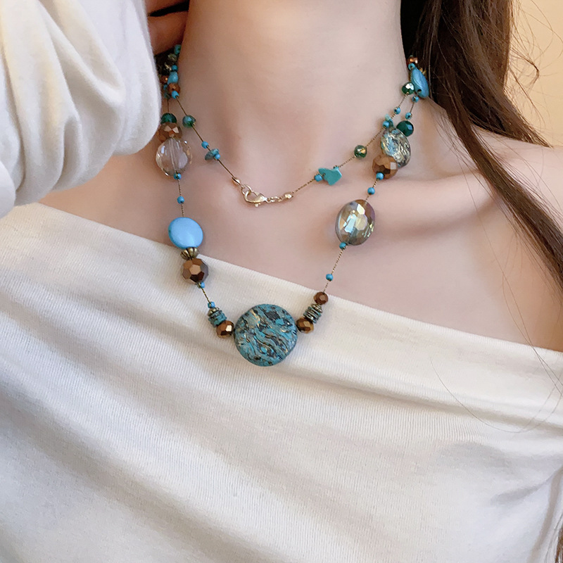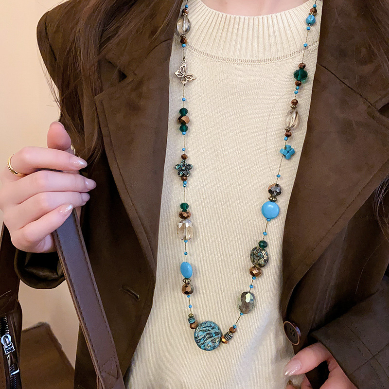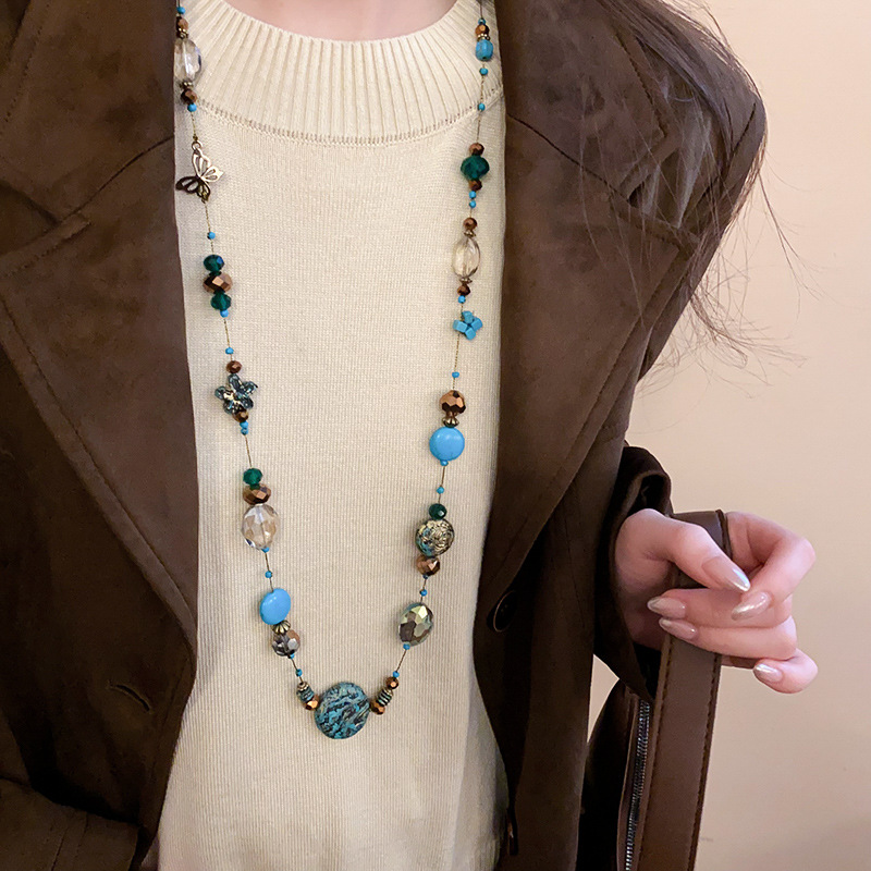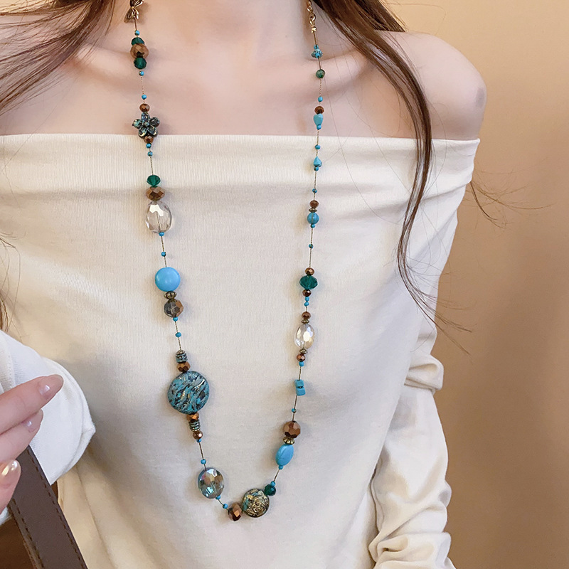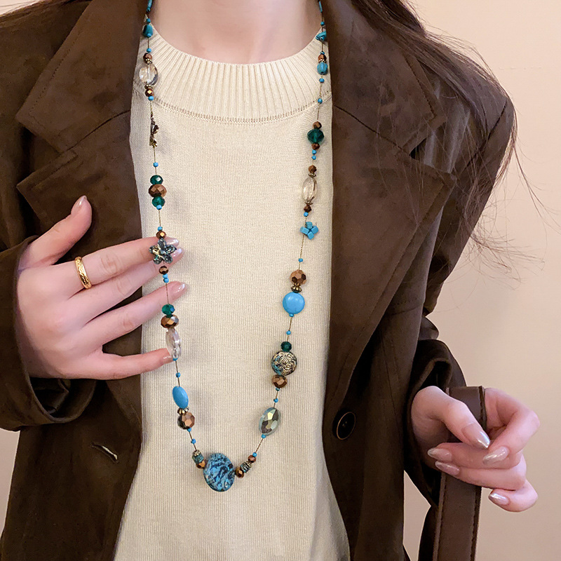 Collar con cuentas apiladas de estilo de piedra artificial transfronteriza, cadena de suéter de diseño de nicho de estilo étnico femenino, joyería de moda de alta gama
