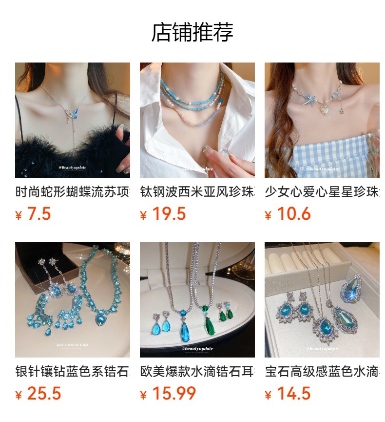 | Colores | 1 # Pulsera-Plata-Azul,2 # Aguja de plata-plata-azul,3 # Collar-Plata-Azul,4 # Anillo-Plata-Azul |