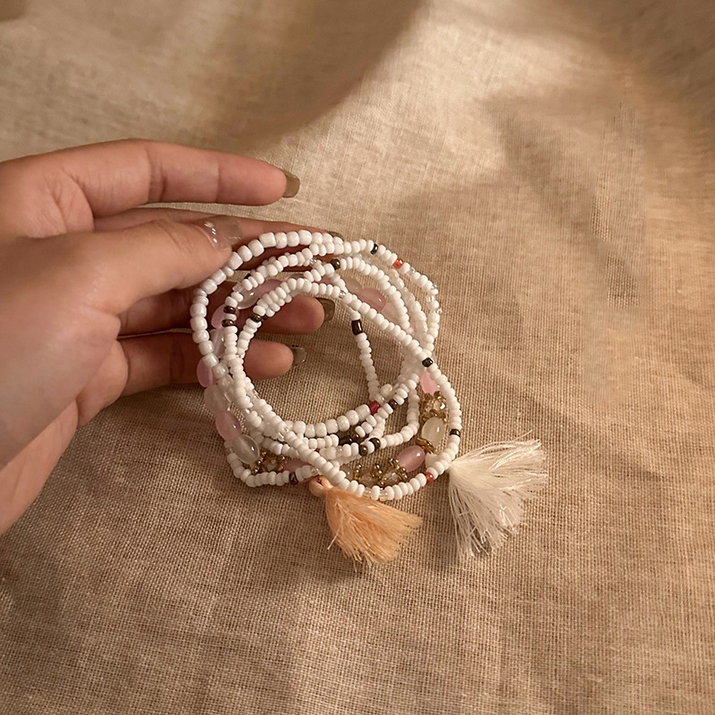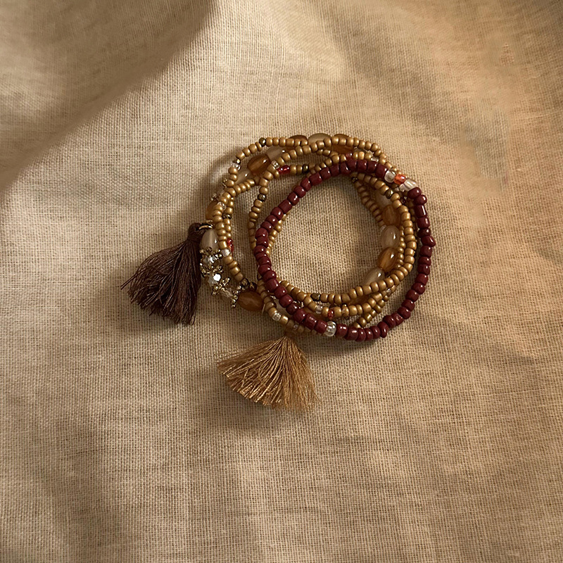 Brazalete con cuentas multicapa de cuentas de mijo de estilo bohemio para niñas, estilo étnico de verano, lujo ligero, joyería de mano retro de nicho