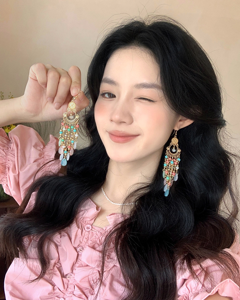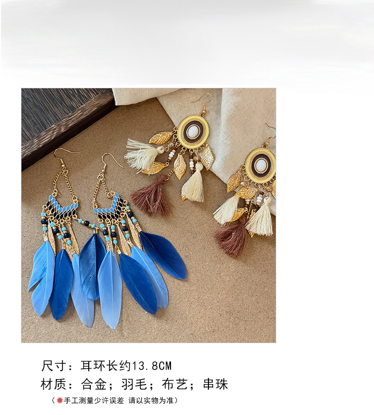 Pendientes con borlas de plumas de colores bohemios, ganchos para las orejas de temperamento de estilo étnico de nicho, pendientes de todo fósforo de alta calidad al por mayor