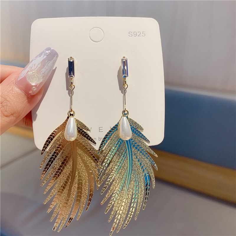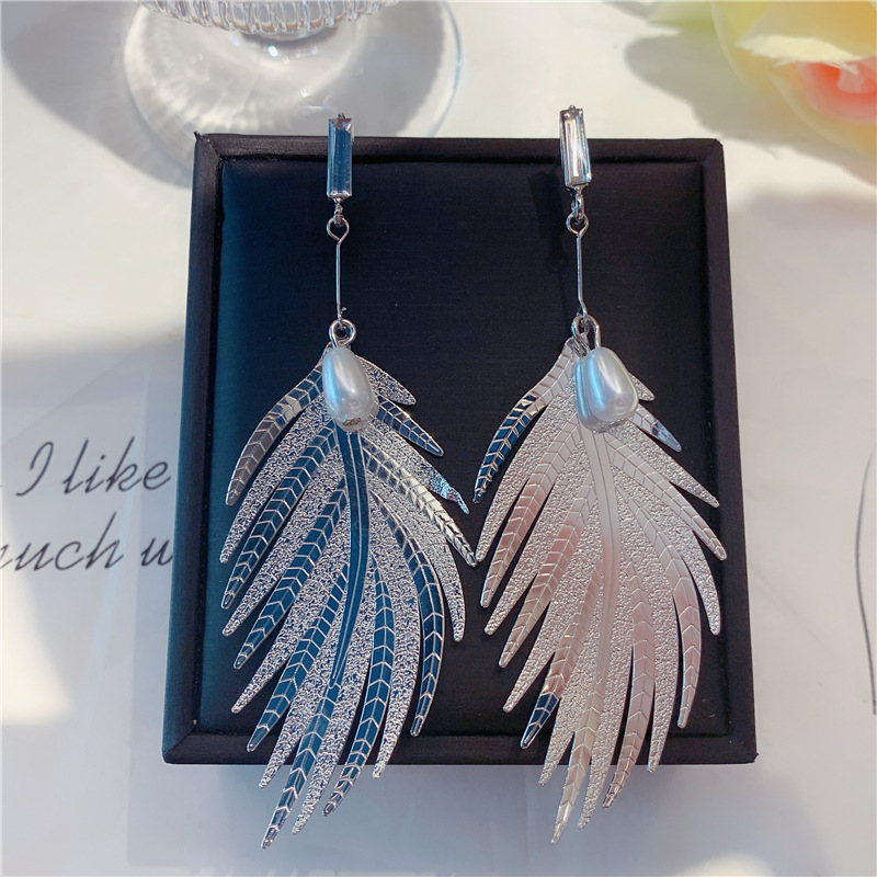 2023 nuevo colgante de moda coreana, pendientes de hoja de metal de todo fósforo de personalidad, pendientes simples de temperamento de celebridad neta de perlas