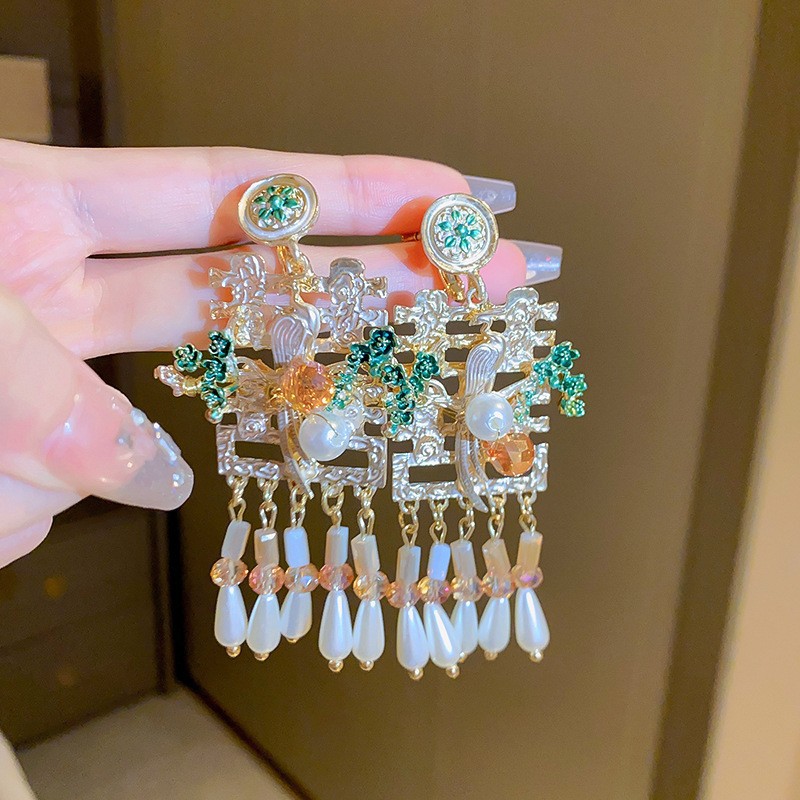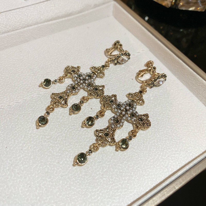 Pendientes de pinza de oreja de perla de temperamento de lujo ligero francés