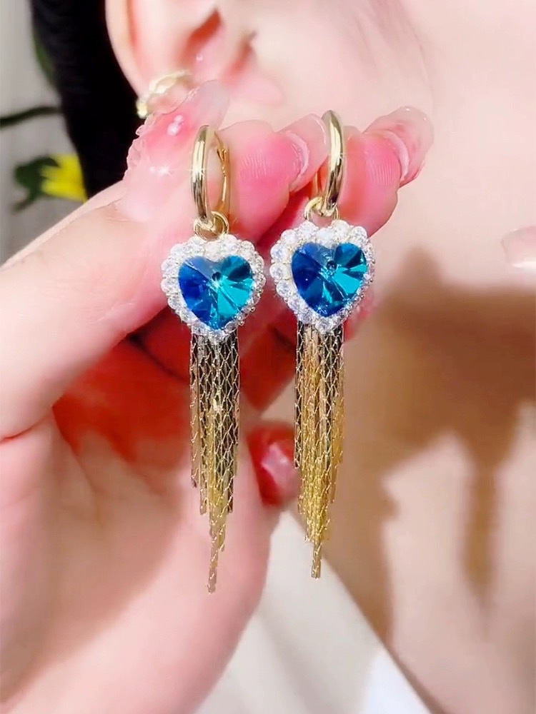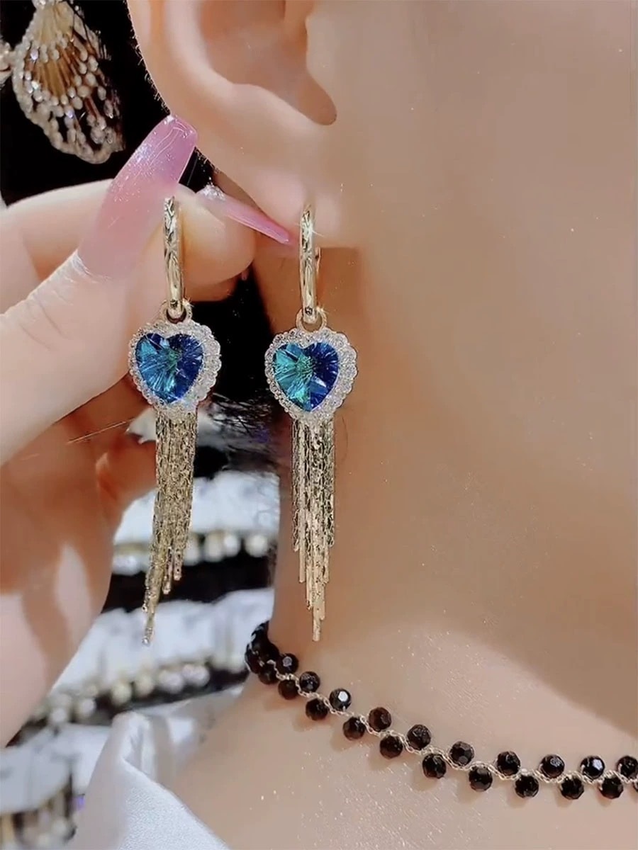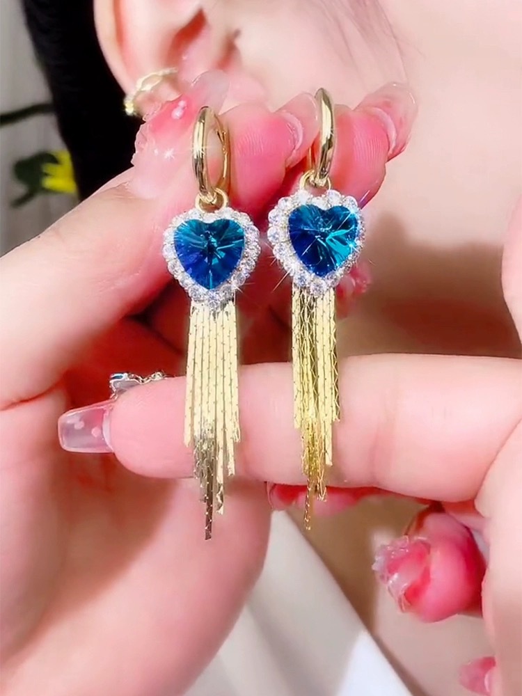 2024 nueva versión coreana de los pendientes súper parpadeantes de alta gama de estilo coreano, pendientes de amor de temperamento de flecos largos de nicho, venta al por mayor femenina