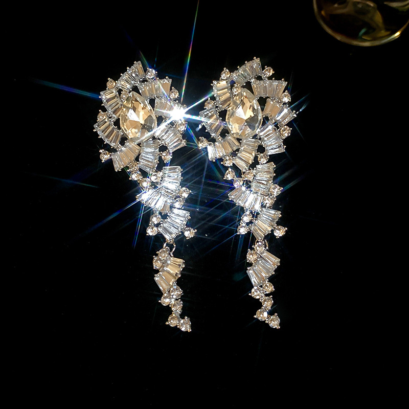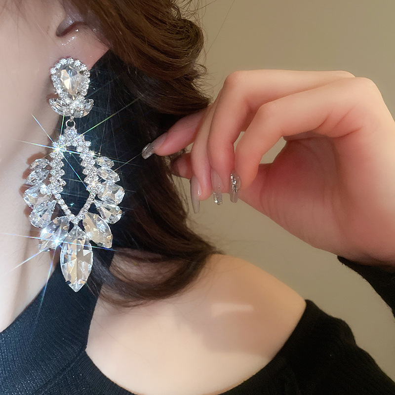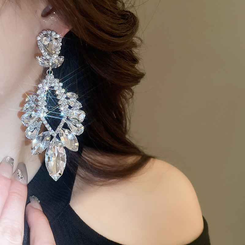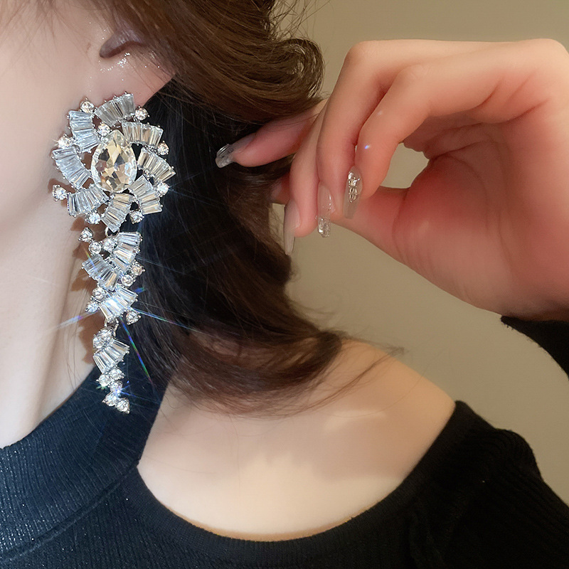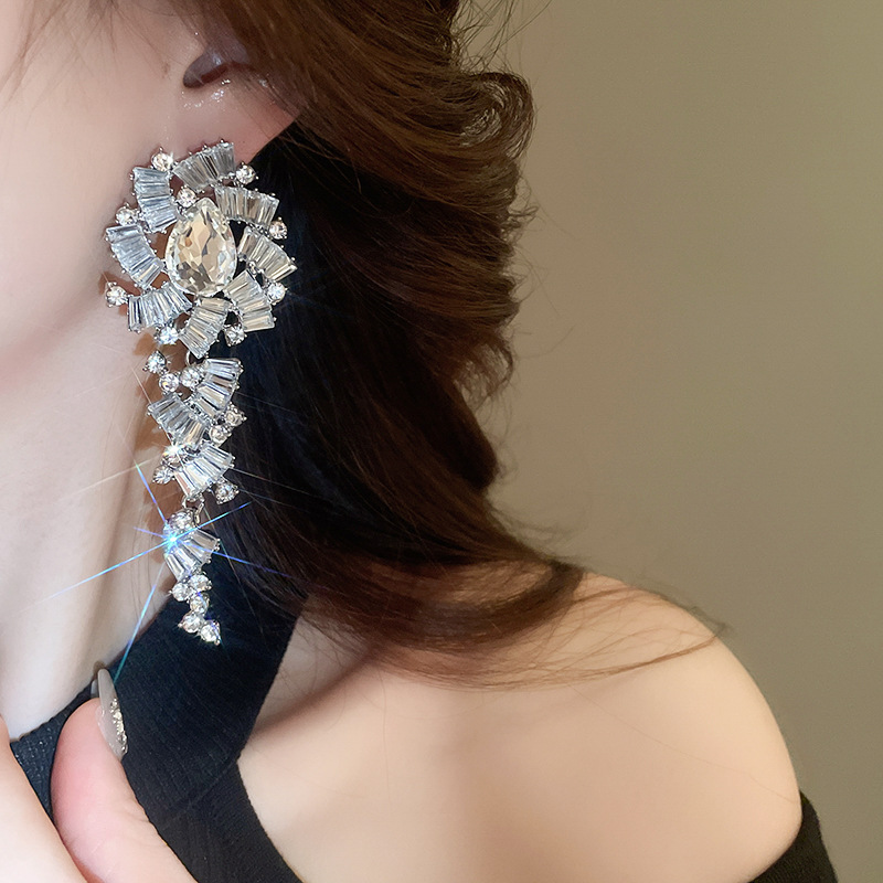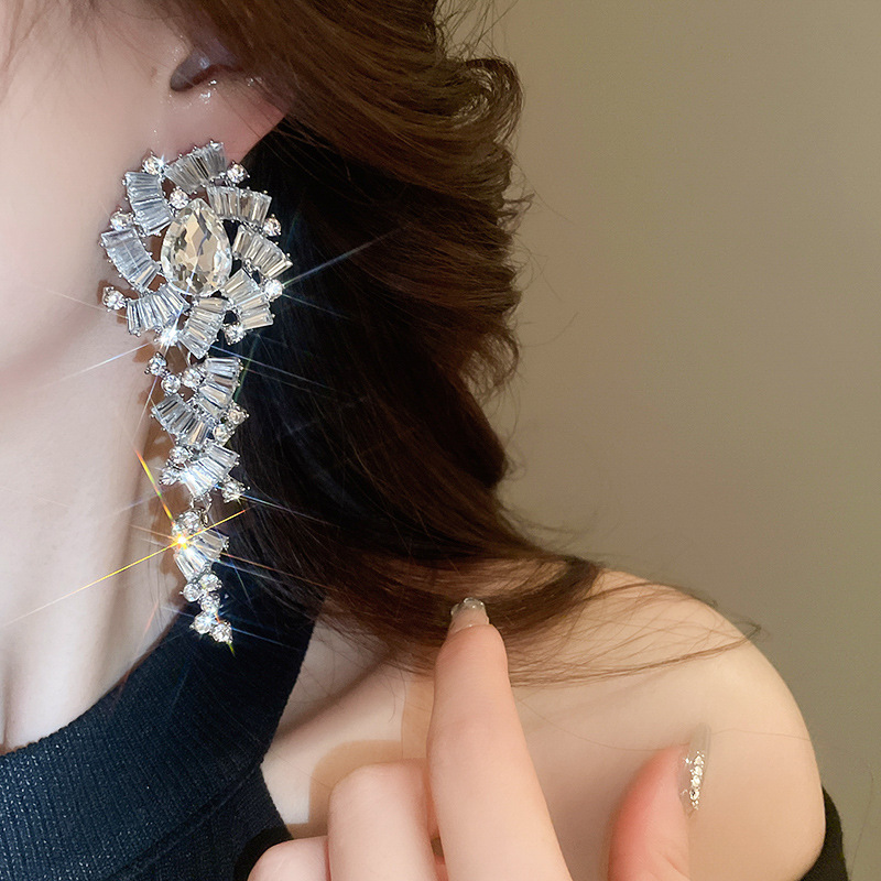 Pendientes de gota de agua en forma de diamante con aguja de plata, personalidad de nicho femenina, pendientes exagerados, pendientes de temperamento de moda, lujo ligero, sentido de alta gama