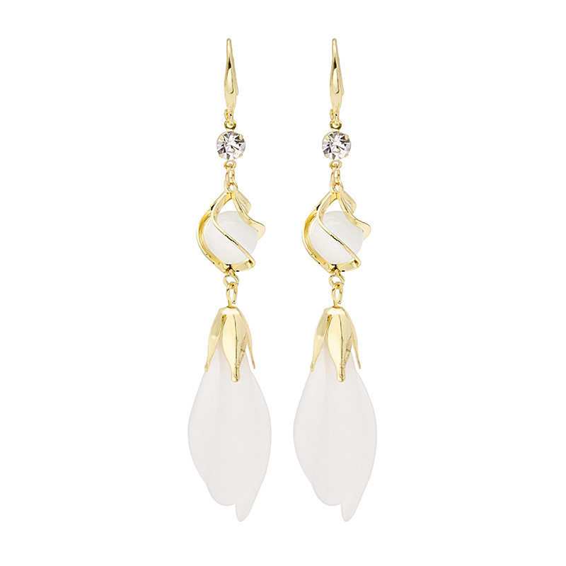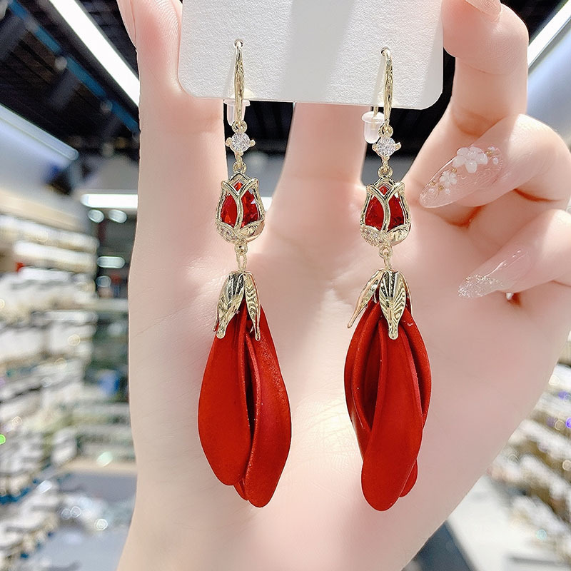 Pendientes de borla de pétalos de hadas largos de temperamento coreano Pendientes de tulipán nuevos pendientes de red