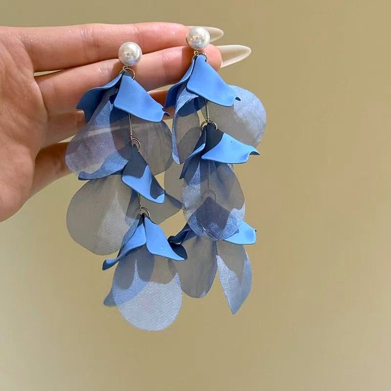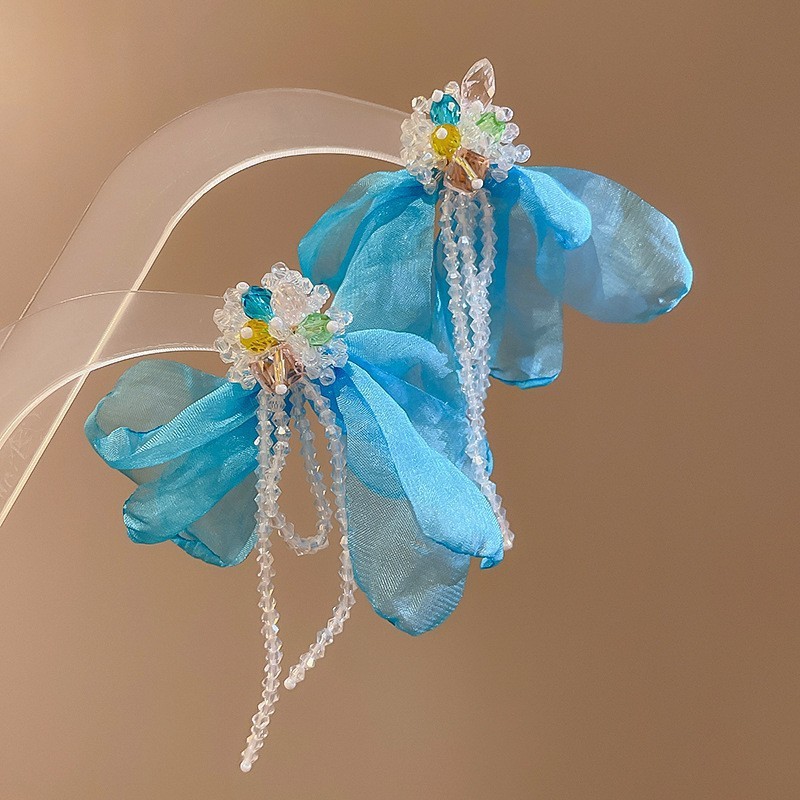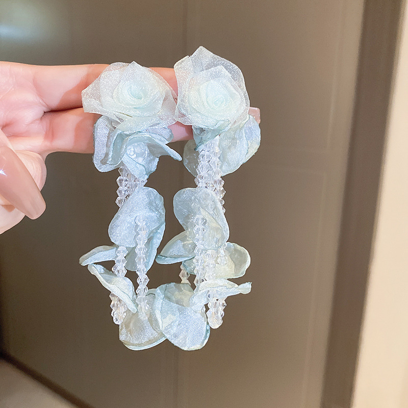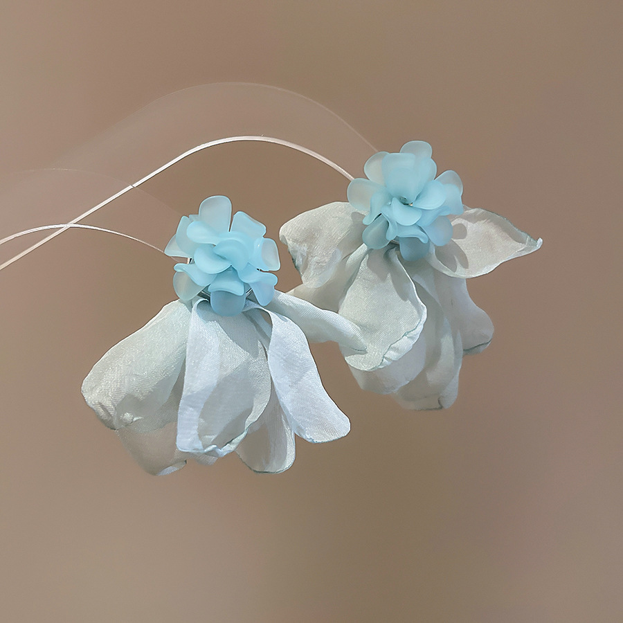 Pendientes de borla de cuentas de arroz de flor de gasa de aguja de plata Pendientes de todo fósforo de estilo de vacaciones Pendientes frescos y dulces para mujer