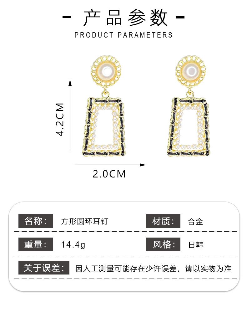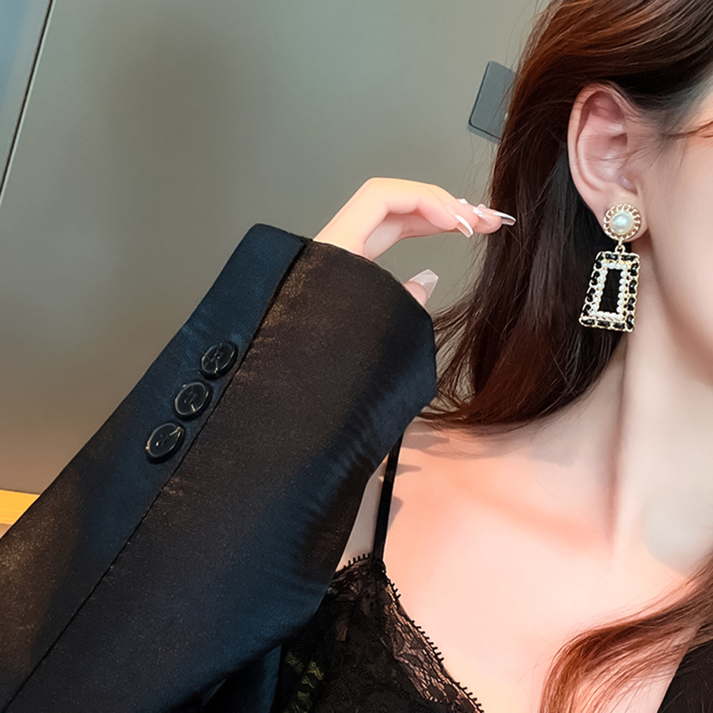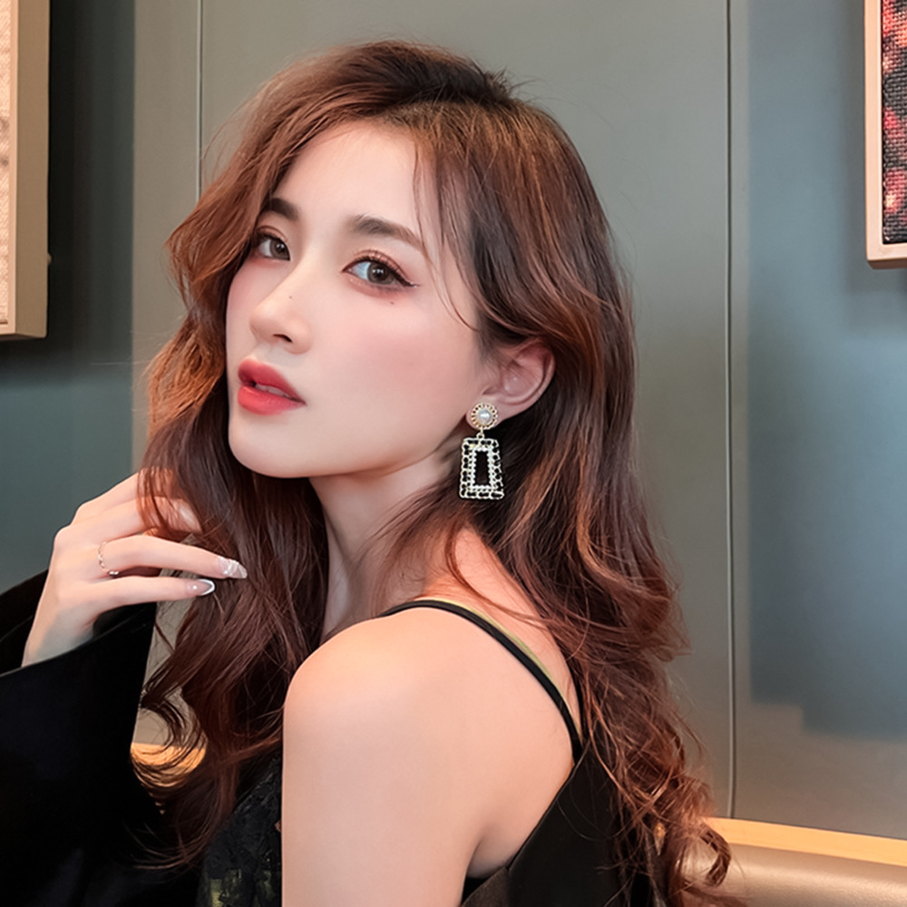 Pendientes de perlas cuadrados geométricos huecos con aguja de plata Pendientes de viento de fragancia pequeña retro elegante Pendientes de moda de temperamento de nicho para mujer