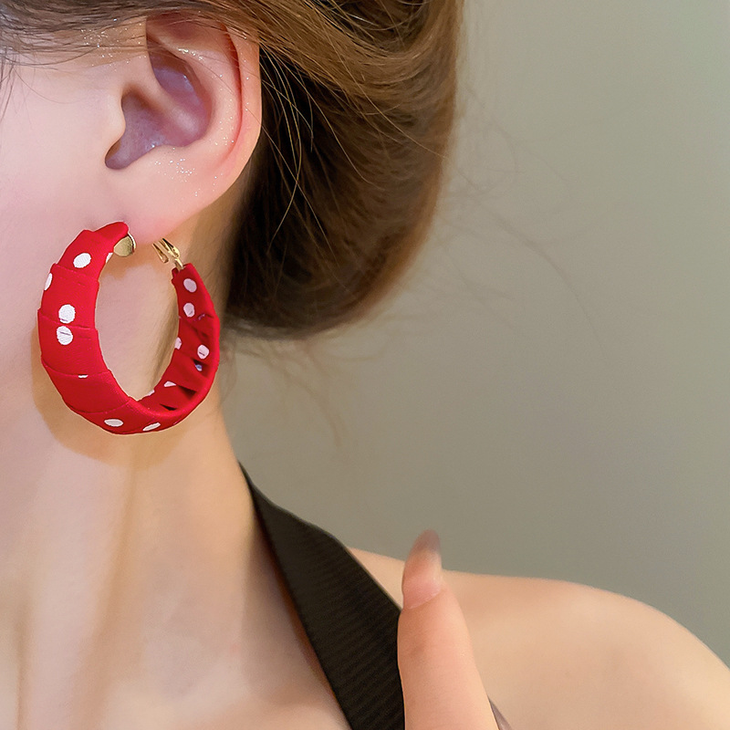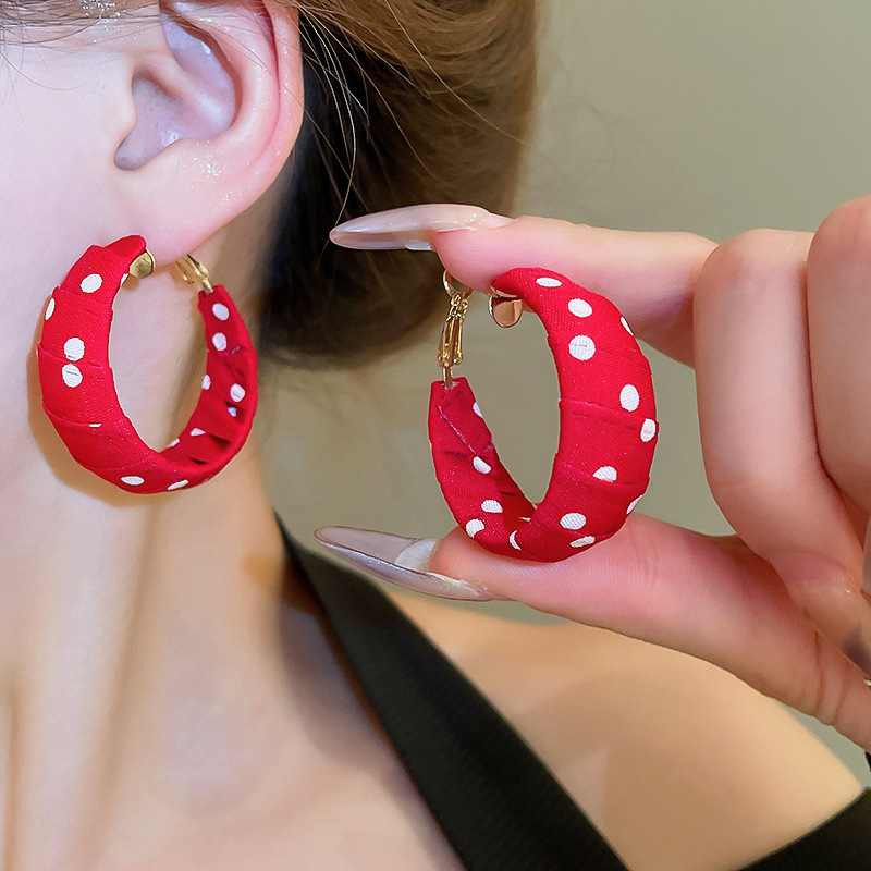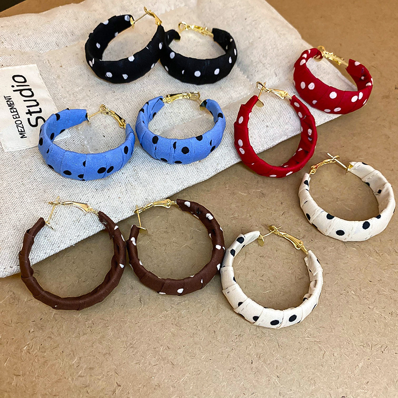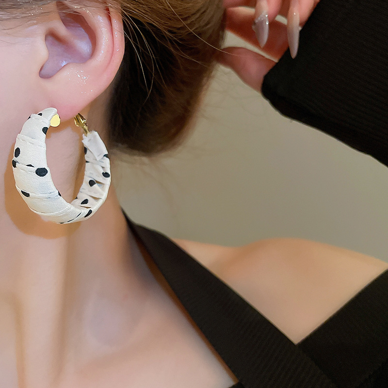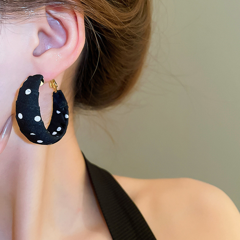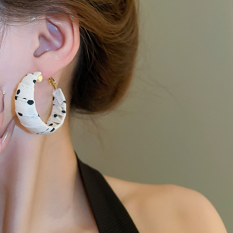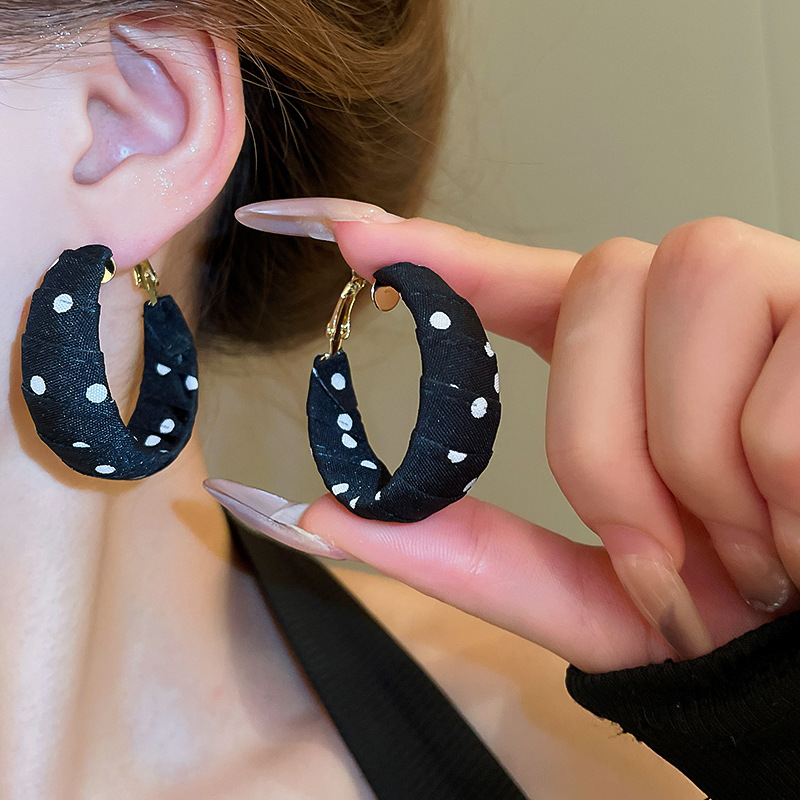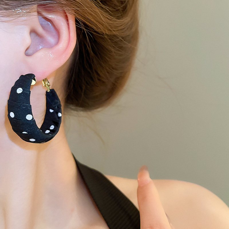 Pendientes enrollados de tela de lunares de nuevo producto de aguja de plata Pendientes de diseño de moda de nicho Pendientes de viaje de niña de estilo ins