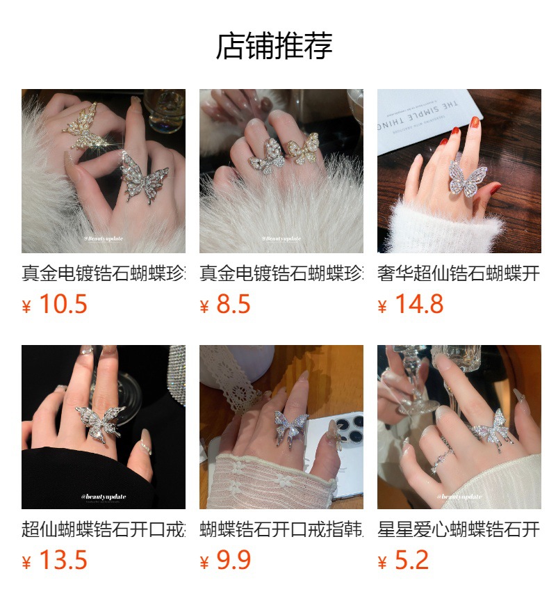 Super hadas De Lujo circón mariposa anillo abierto luz europea y americana de lujo de moda anillo de dedo índice nicho de alta calidad pulsera de todo fósforo