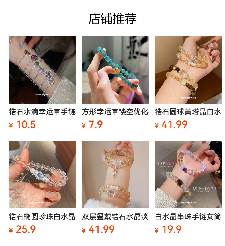 Pulsera de cuentas de trébol de cristal blanco en polvo de cristal blanco Pulsera ligera y de lujo de alta gama, joyería de todo fósforo de nicho dulce y simple