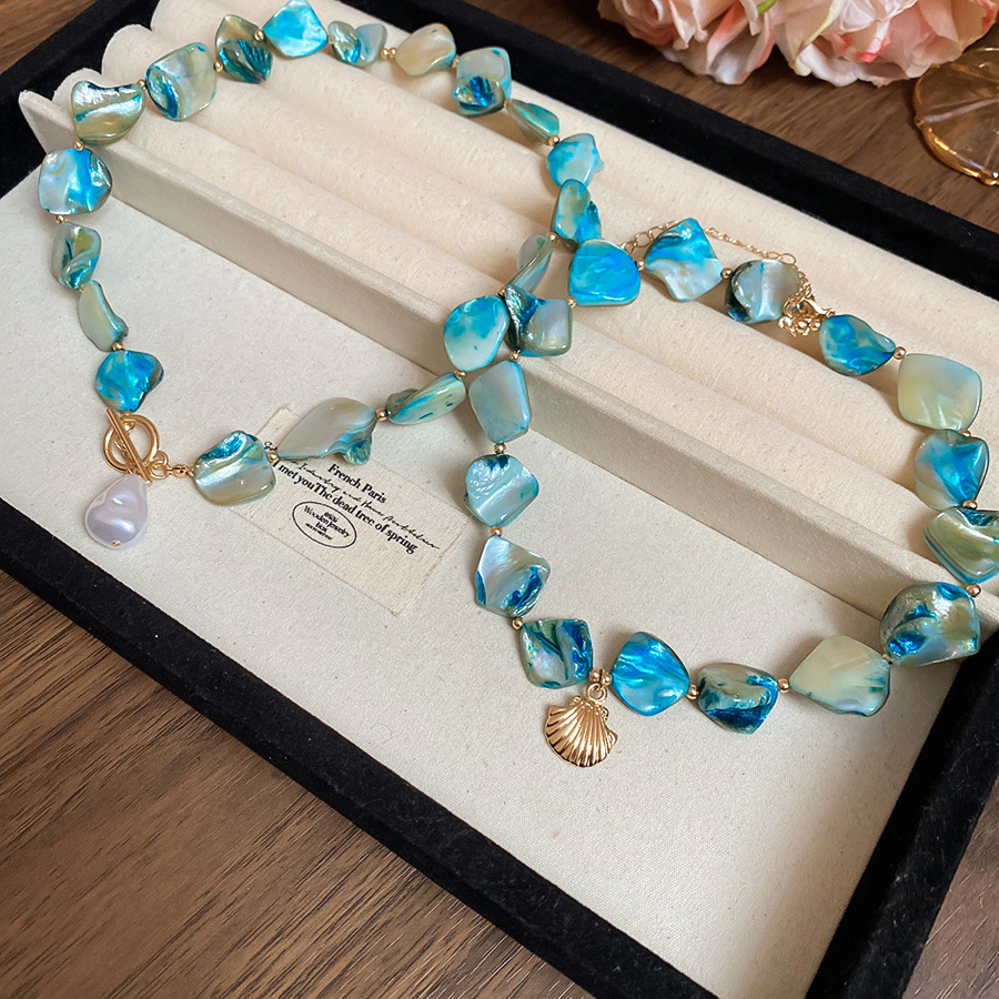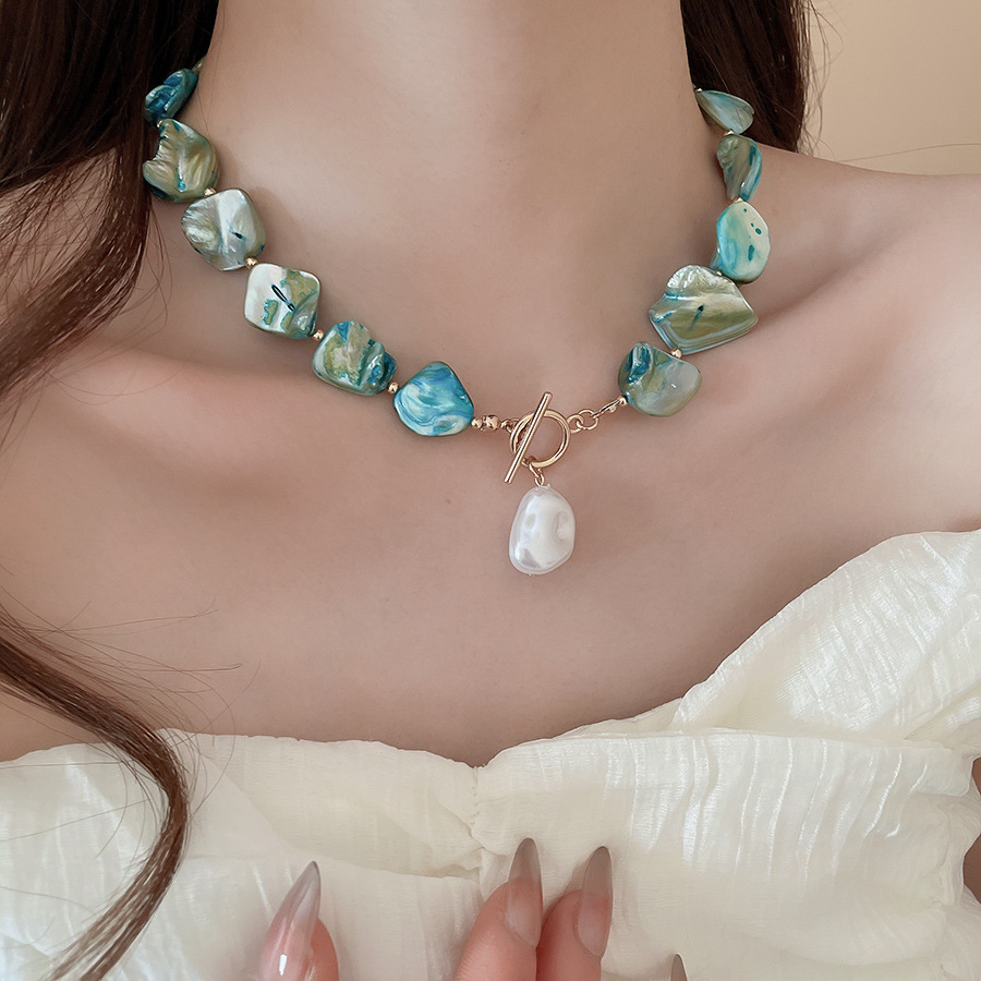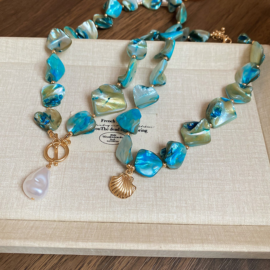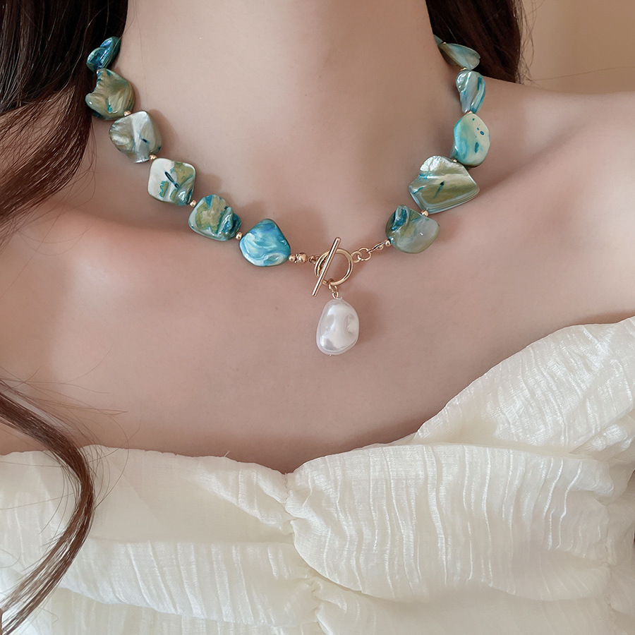 Collar de perlas de concha natural irregular, cadena de clavícula de viento de vacaciones junto al mar, collar de temperamento bohemio de alta calidad