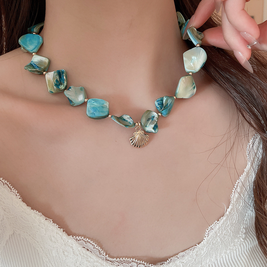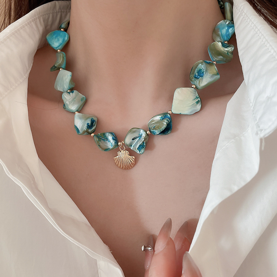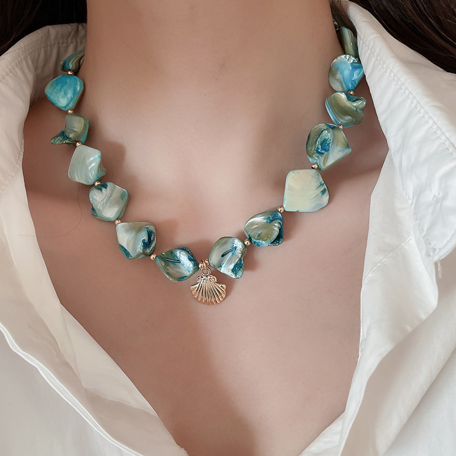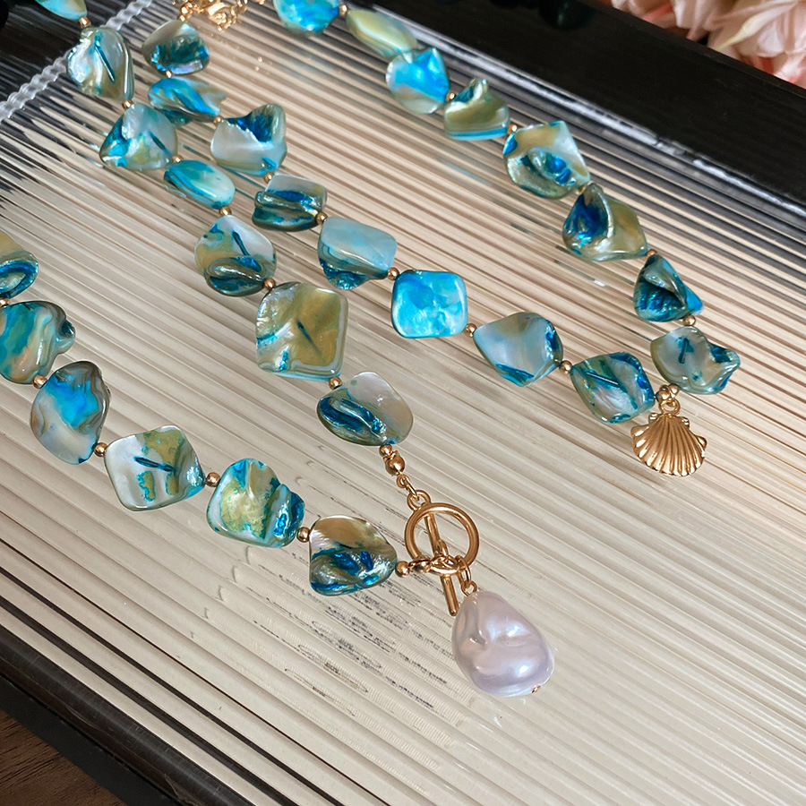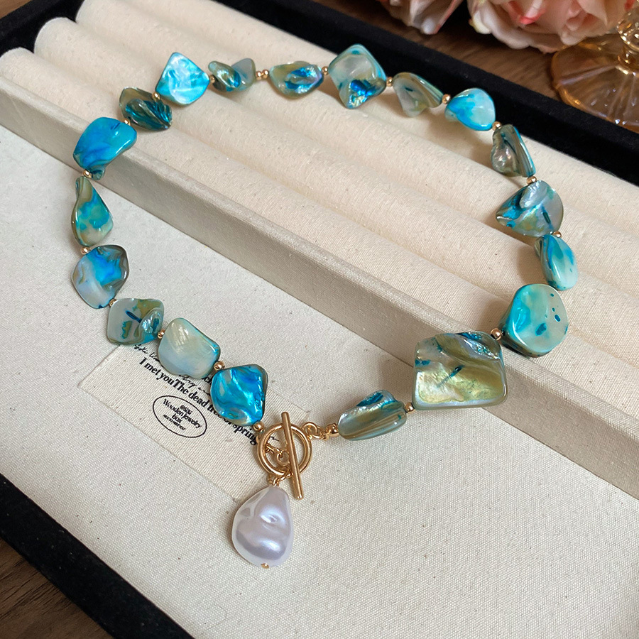 Collar de perlas de concha natural irregular, cadena de clavícula de viento de vacaciones junto al mar, collar de temperamento bohemio de alta calidad