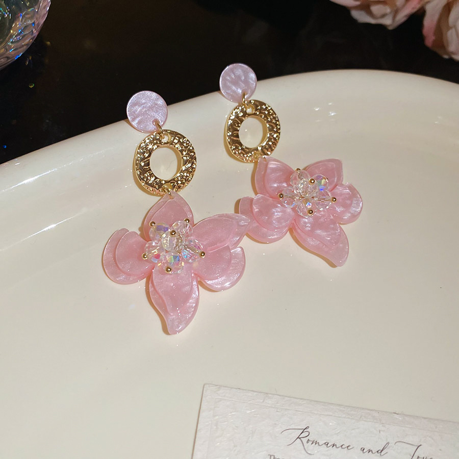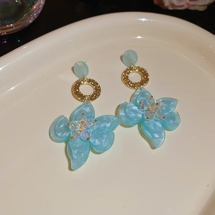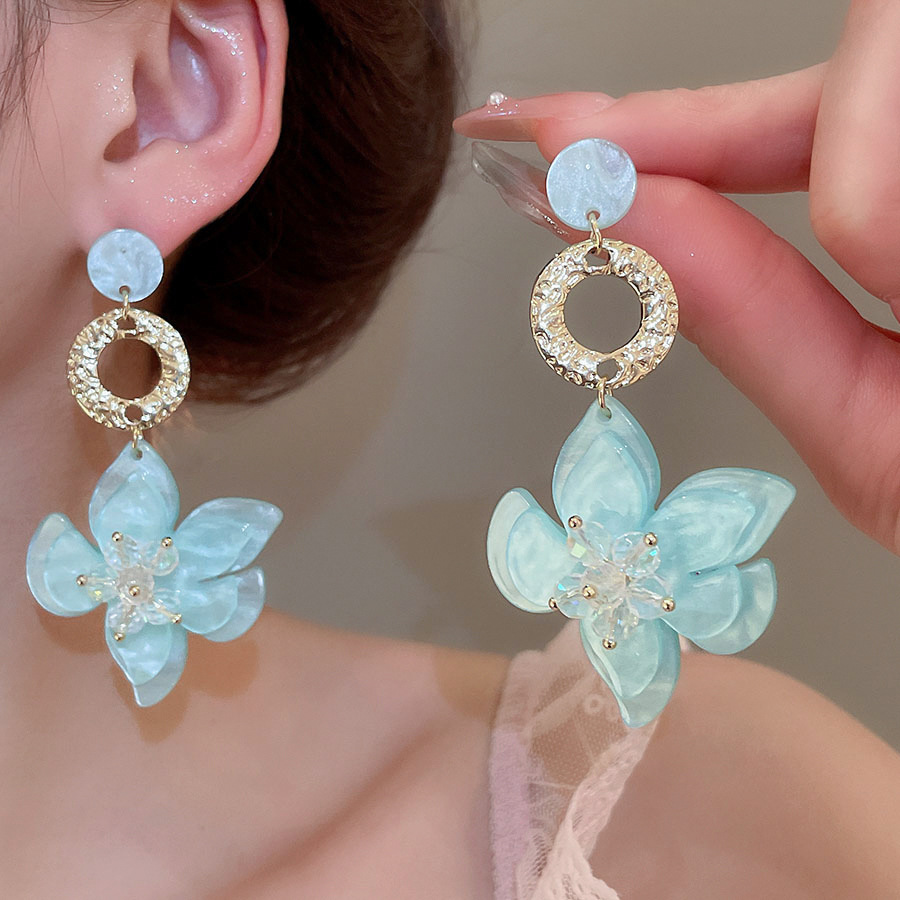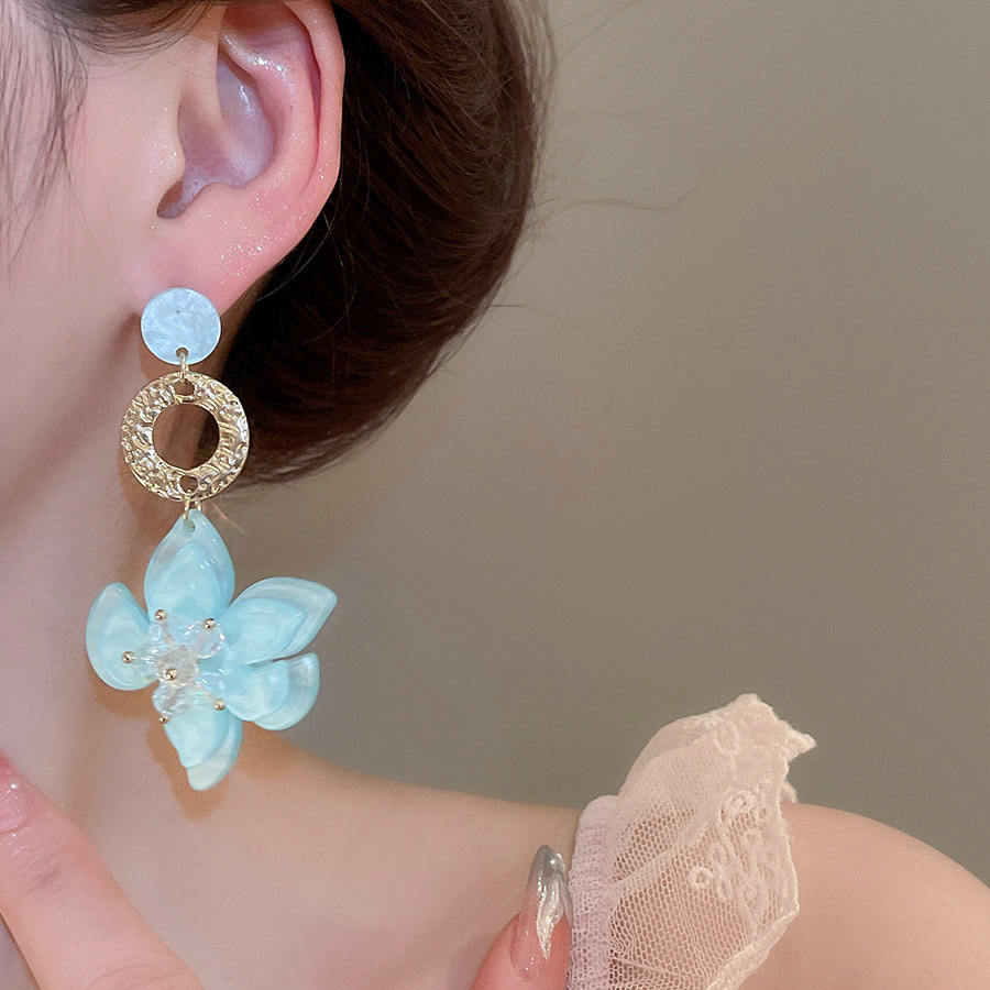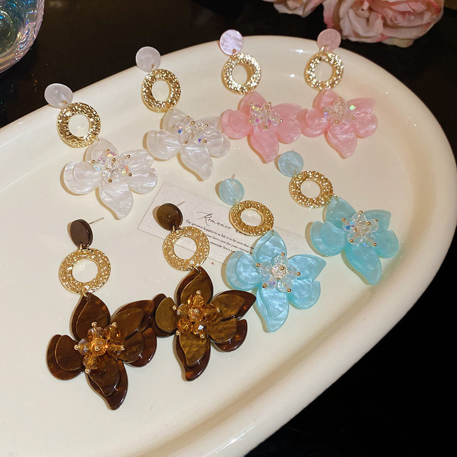 Pendientes de borla de flor de vidrio de resina de aguja de plata Pendientes de lujo ligero y dulce de alta gama Pendientes de nicho de moda mujer