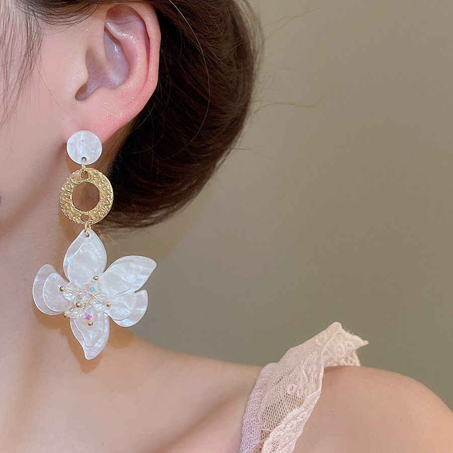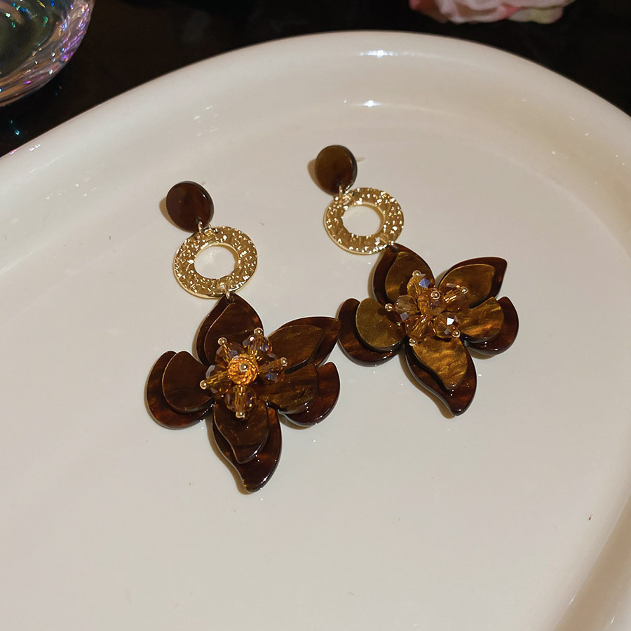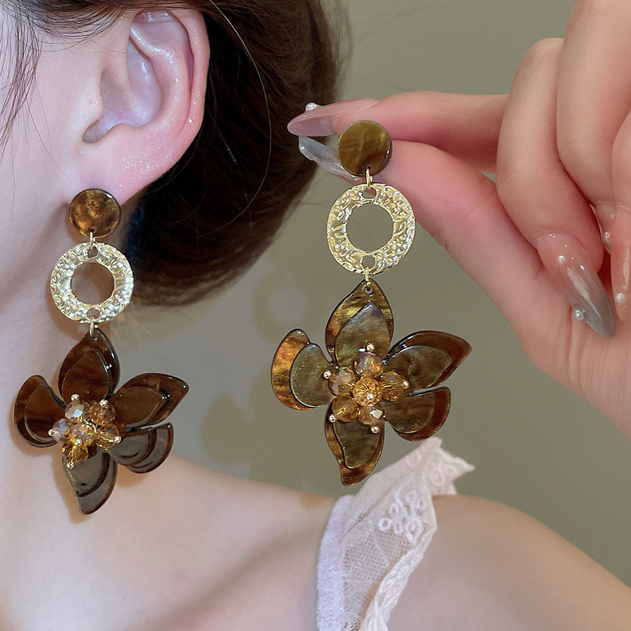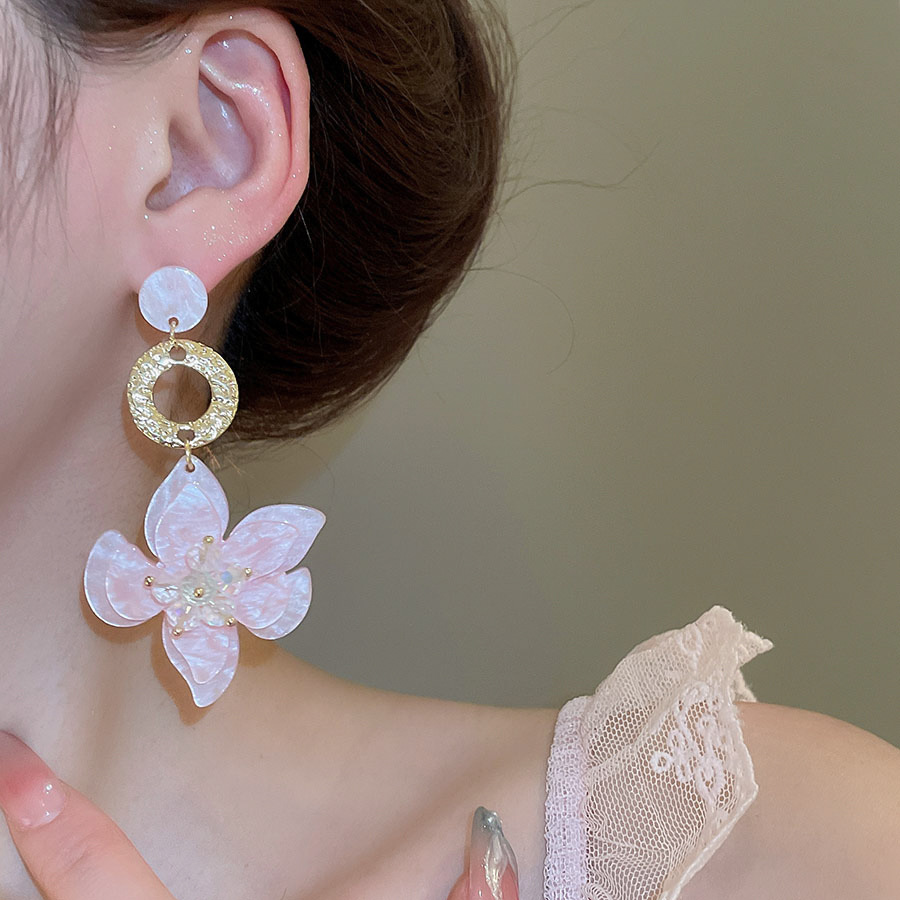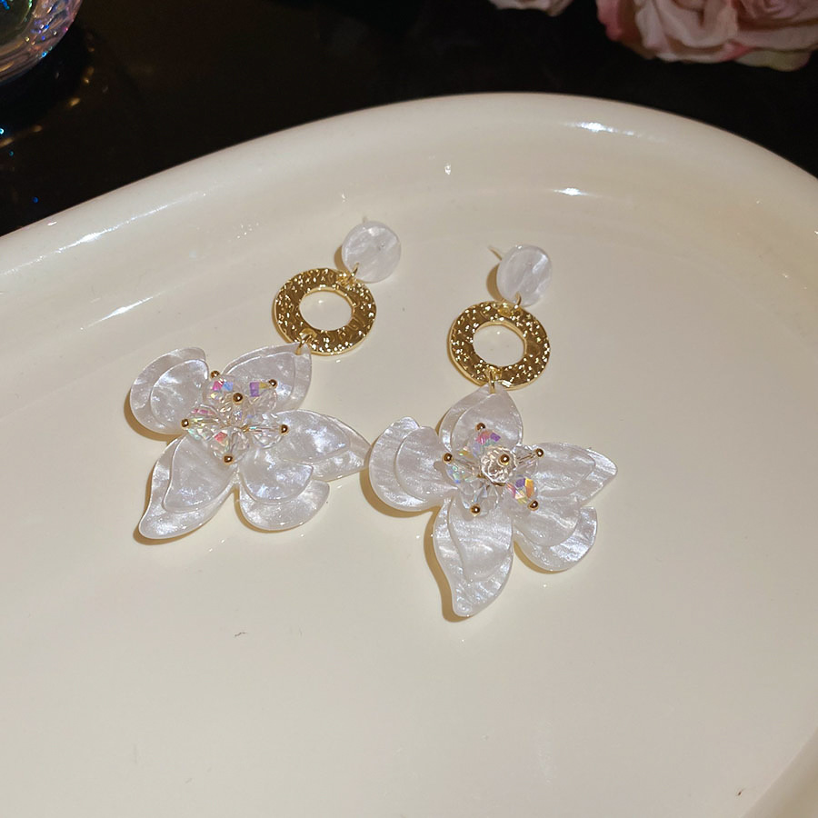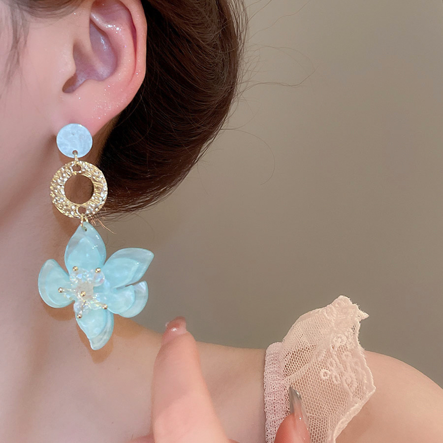 Pendientes de borla de flor de vidrio de resina de aguja de plata Pendientes de lujo ligero y dulce de alta gama Pendientes de nicho de moda mujer