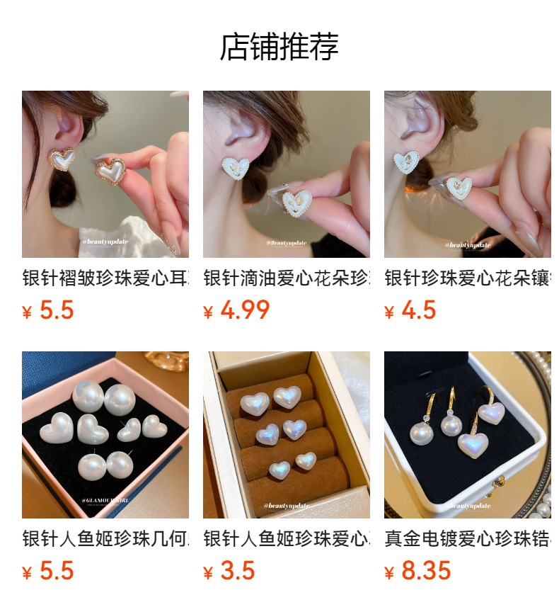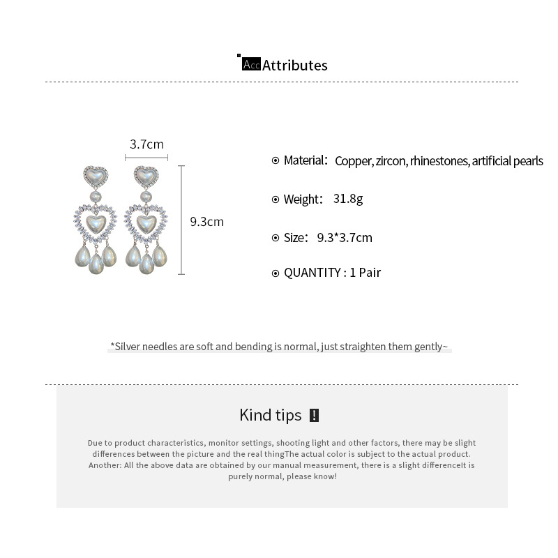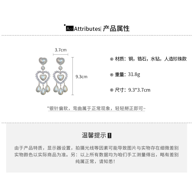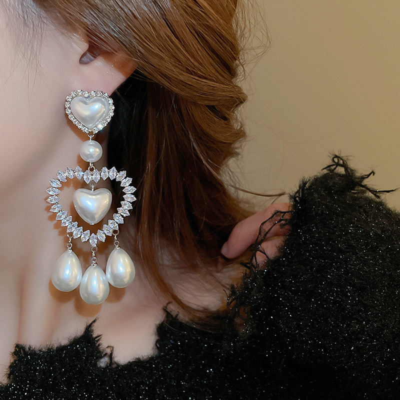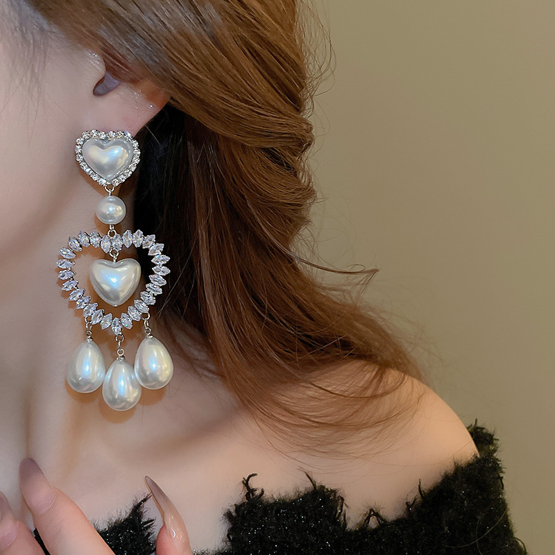 Pendientes de gota de agua de amor de diamantes llenos de perlas artificiales de aguja de plata Pendientes exquisitos y hermosos Pendientes dulces de estilo princesa
