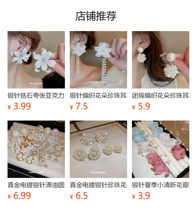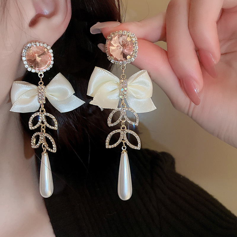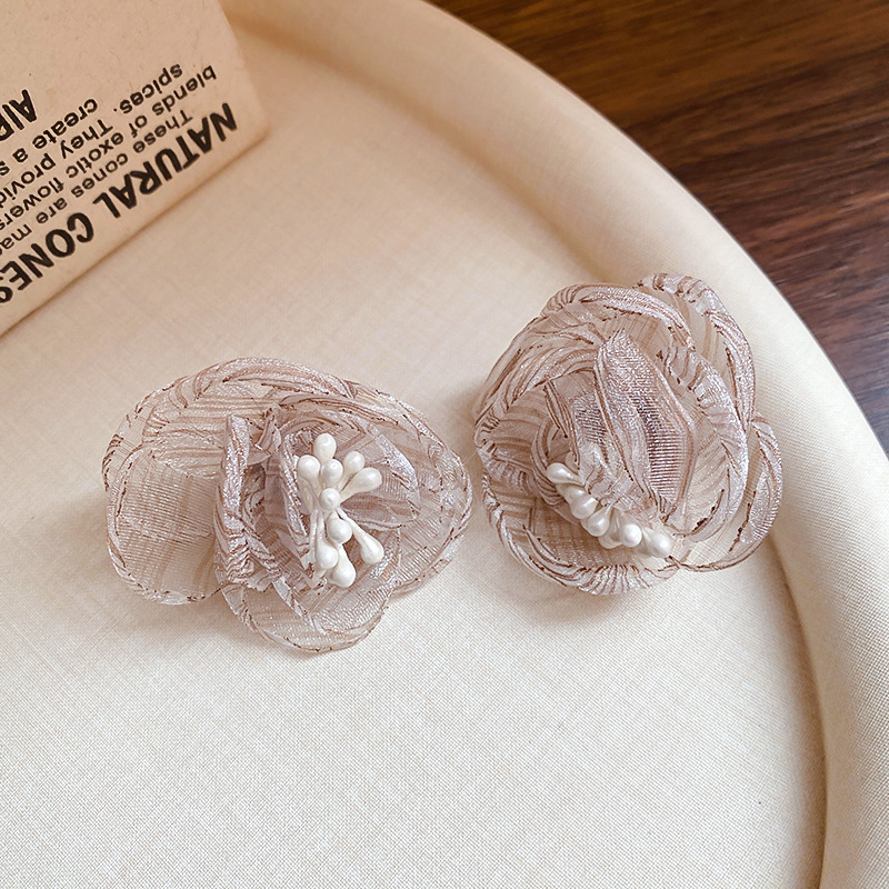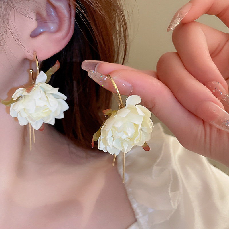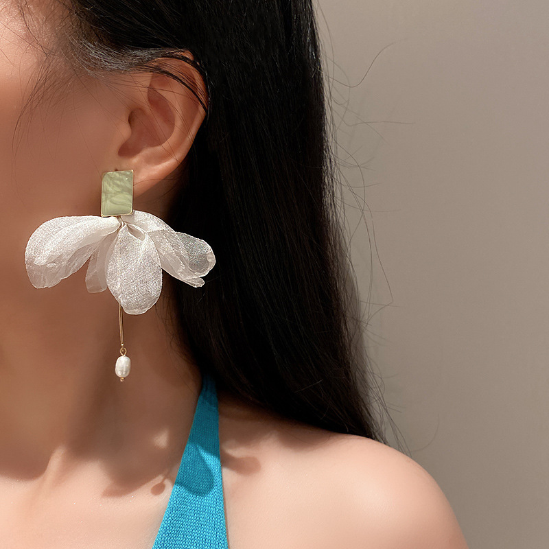 Pendientes de borla de flores de hilo de malla de perlas de aguja de plata Pendientes frescos y dulces de primavera y verano Pendientes de moda de deseo puro de súper hada al por mayor
