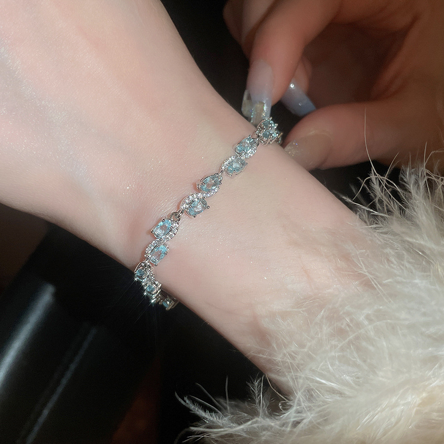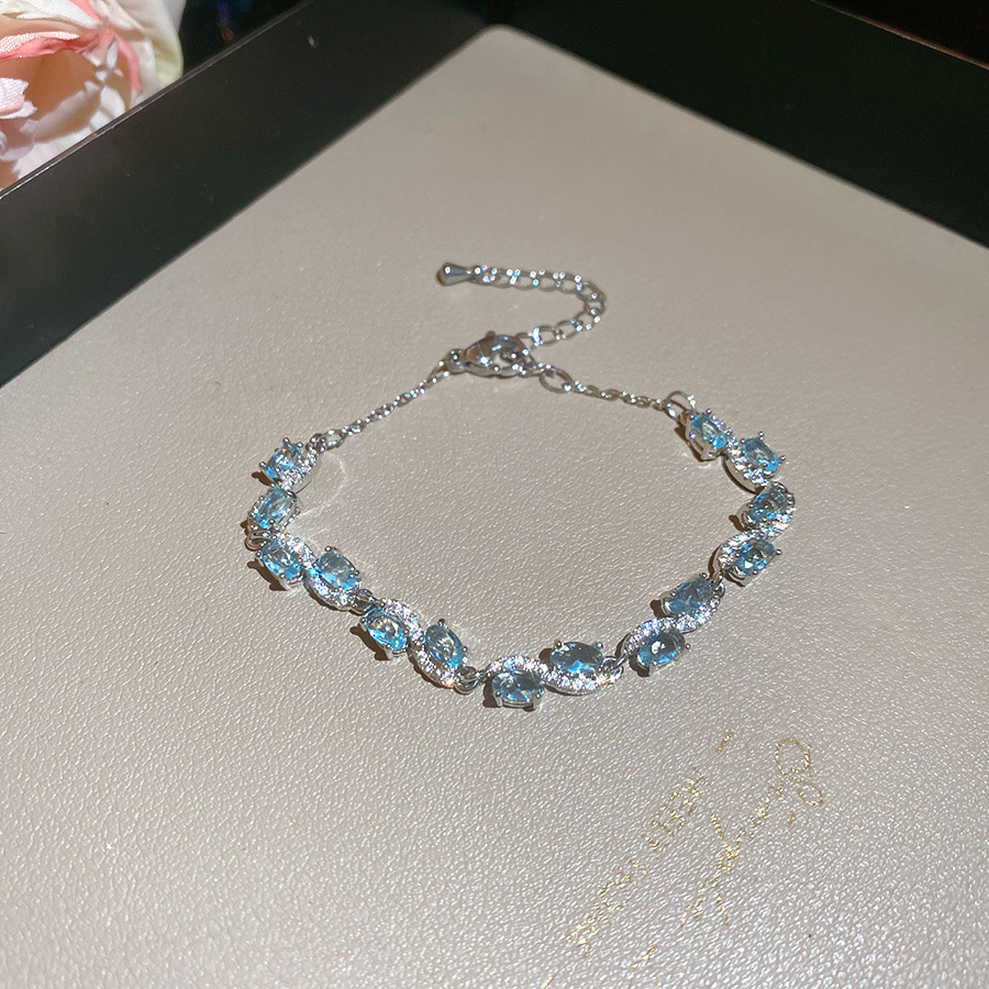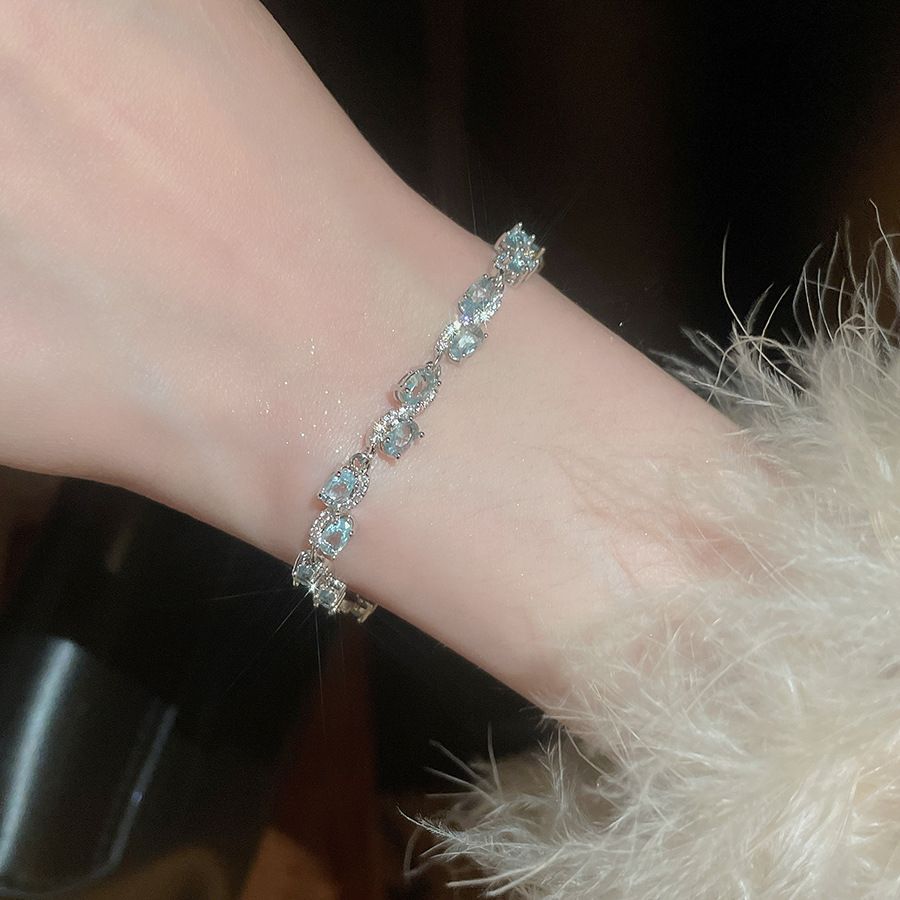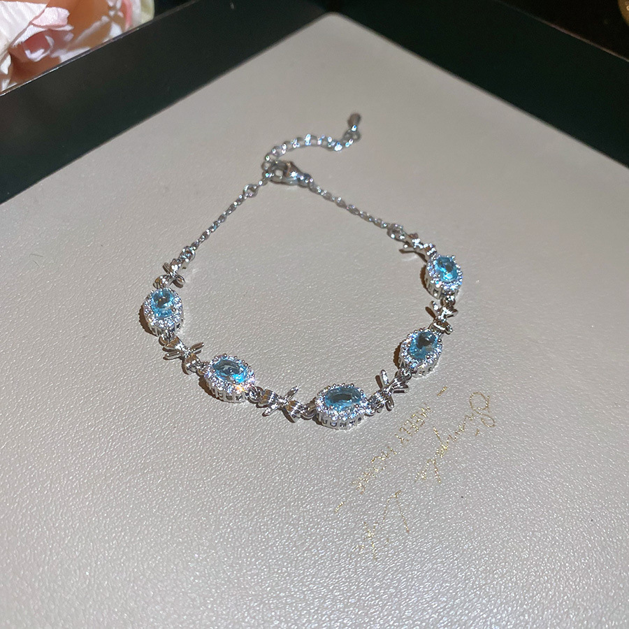 Pulsera de lazo ovalado de circón azul marino, exquisita pulsera ligera y de lujo de alta gama, pulsera de diseño de nicho