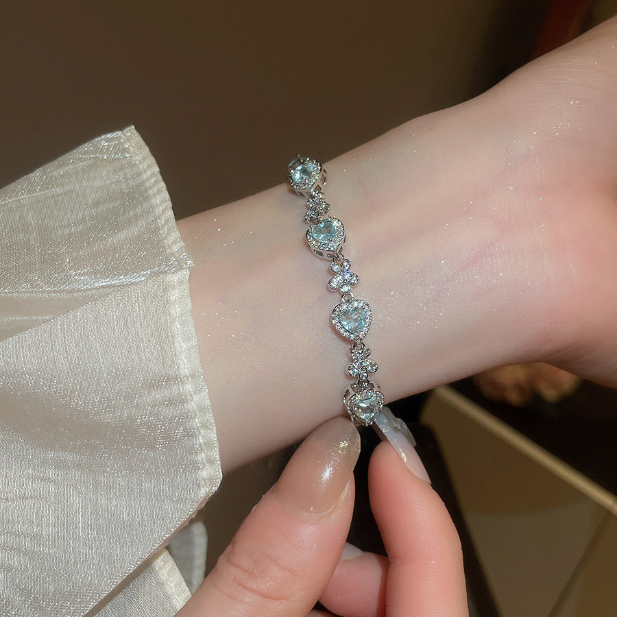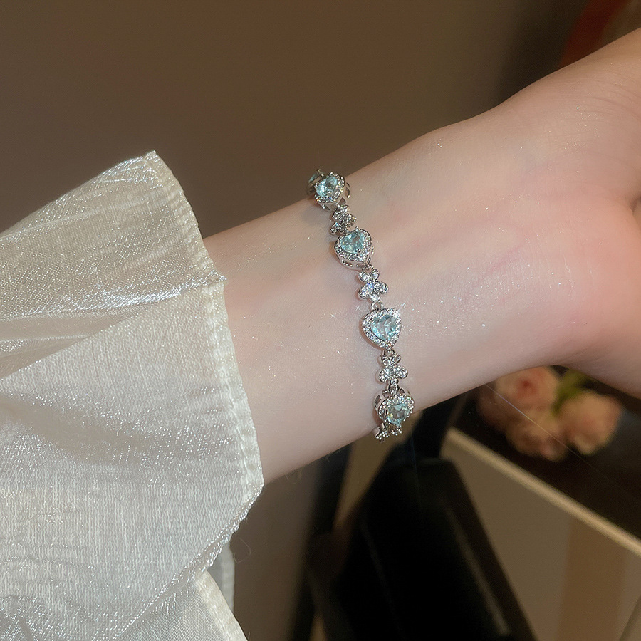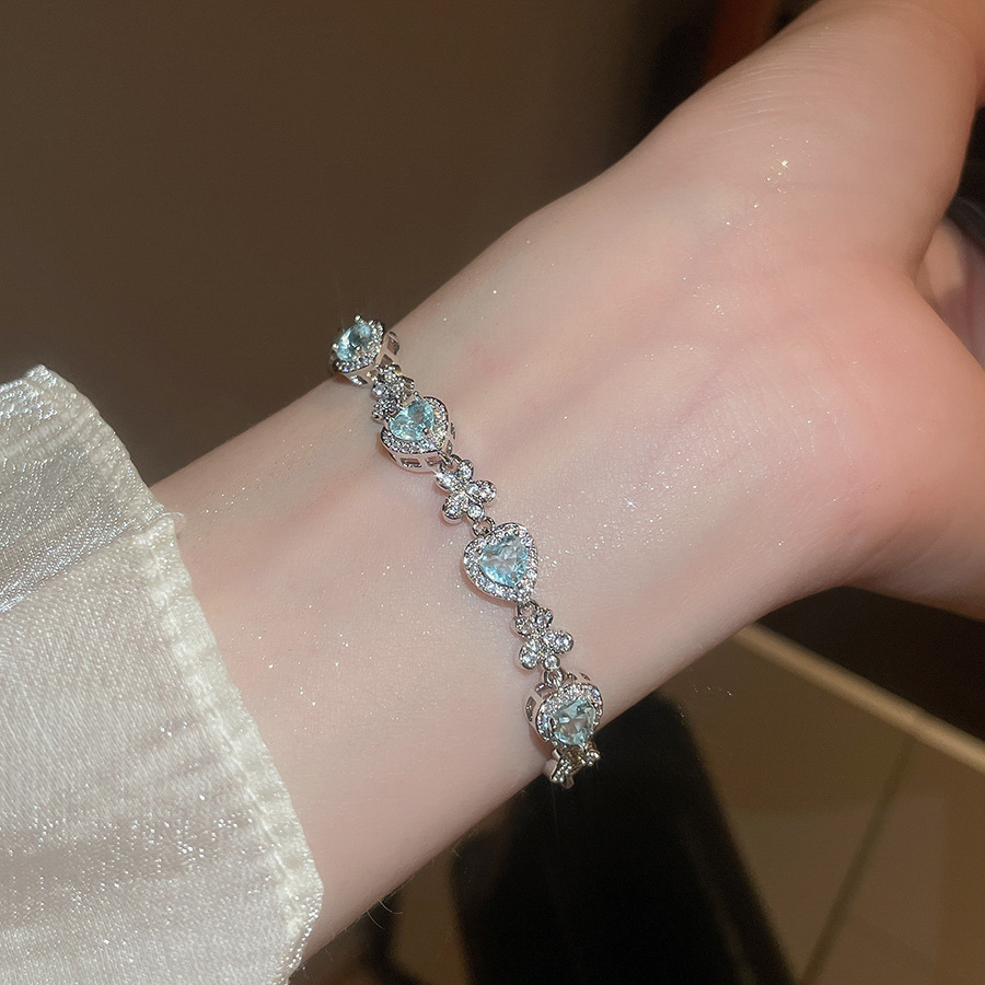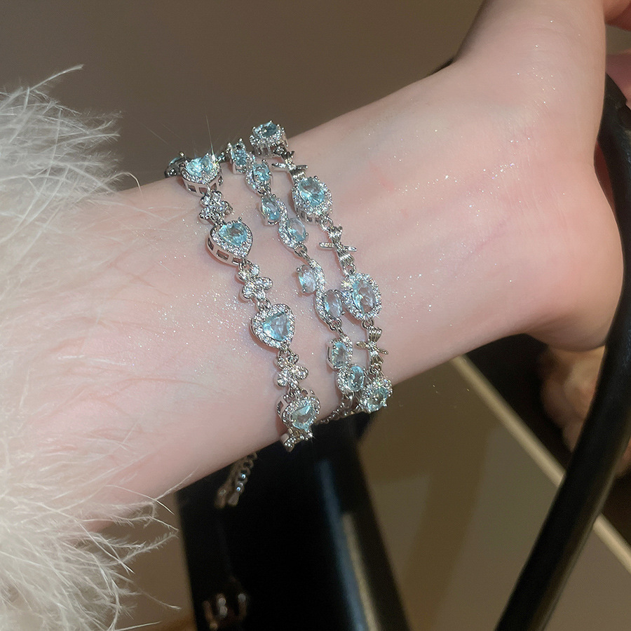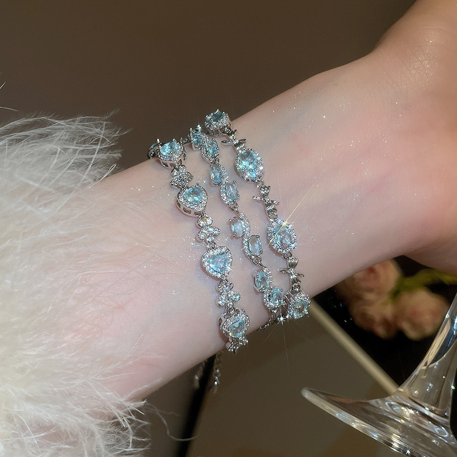 Pulsera de lazo ovalado de circón azul marino, exquisita pulsera ligera y de lujo de alta gama, pulsera de diseño de nicho