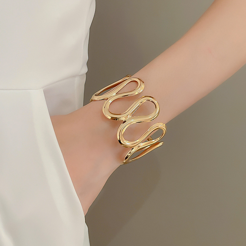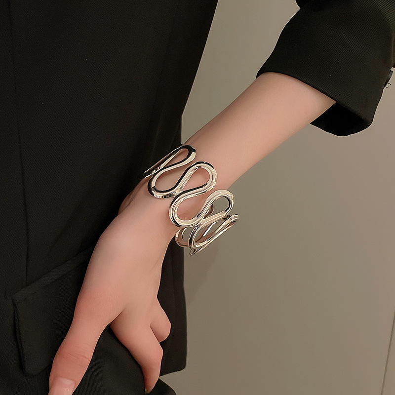 Pulsera de onda de metal transfronteriza europea y americana, pulsera de alta gama de moda de nicho, estilo ins, joyería de temperamento de lujo ligero al por mayor
