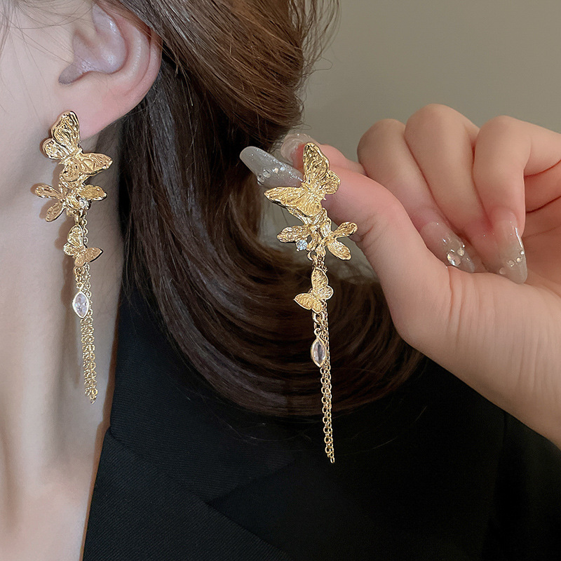 Pendientes de borla de flores transfronterizas de aguja de plata Pendientes de diseño de nicho europeo y americano Pendientes de temperamento de moda femenina Lujo ligero y de alta gama