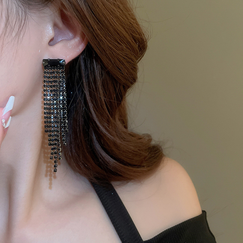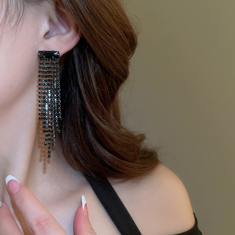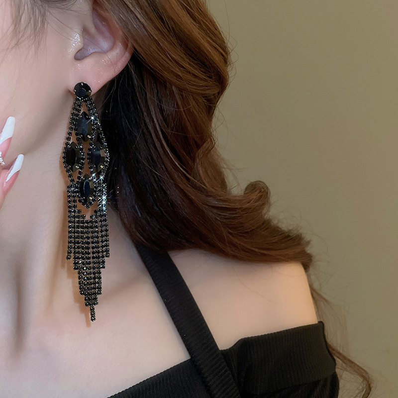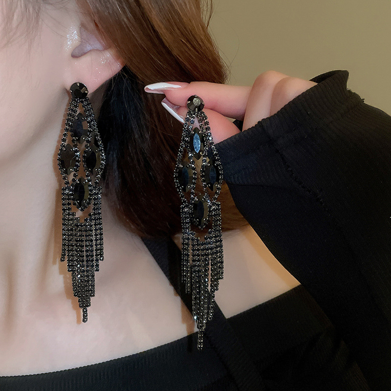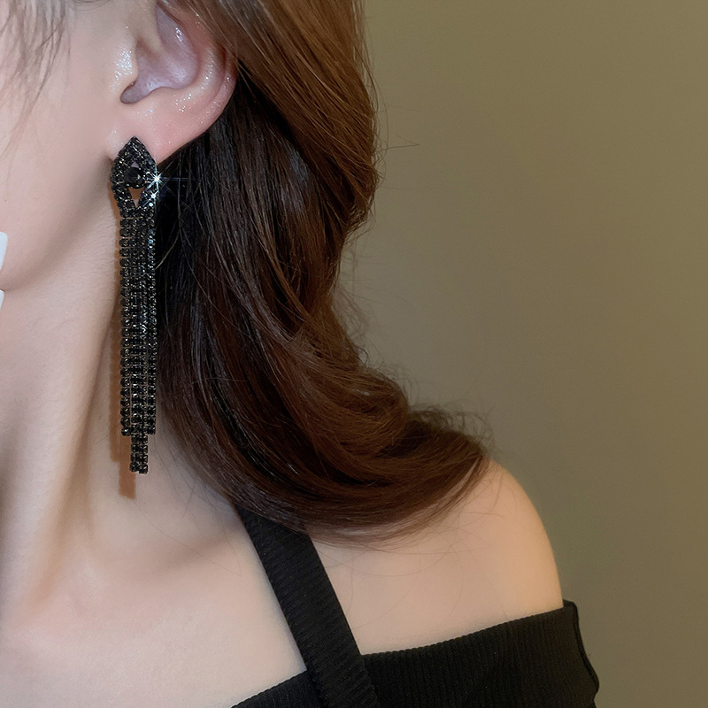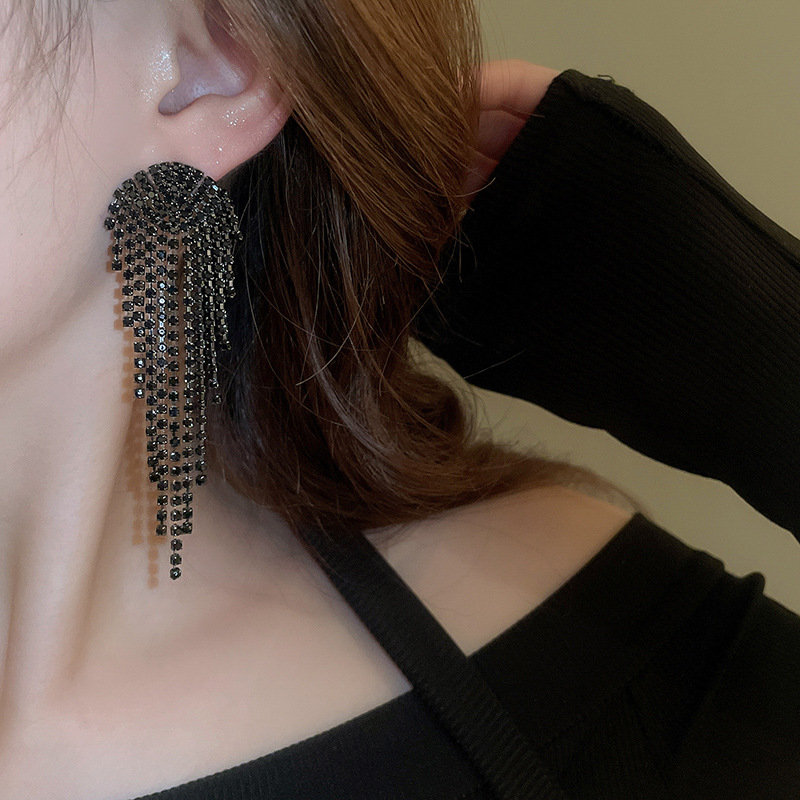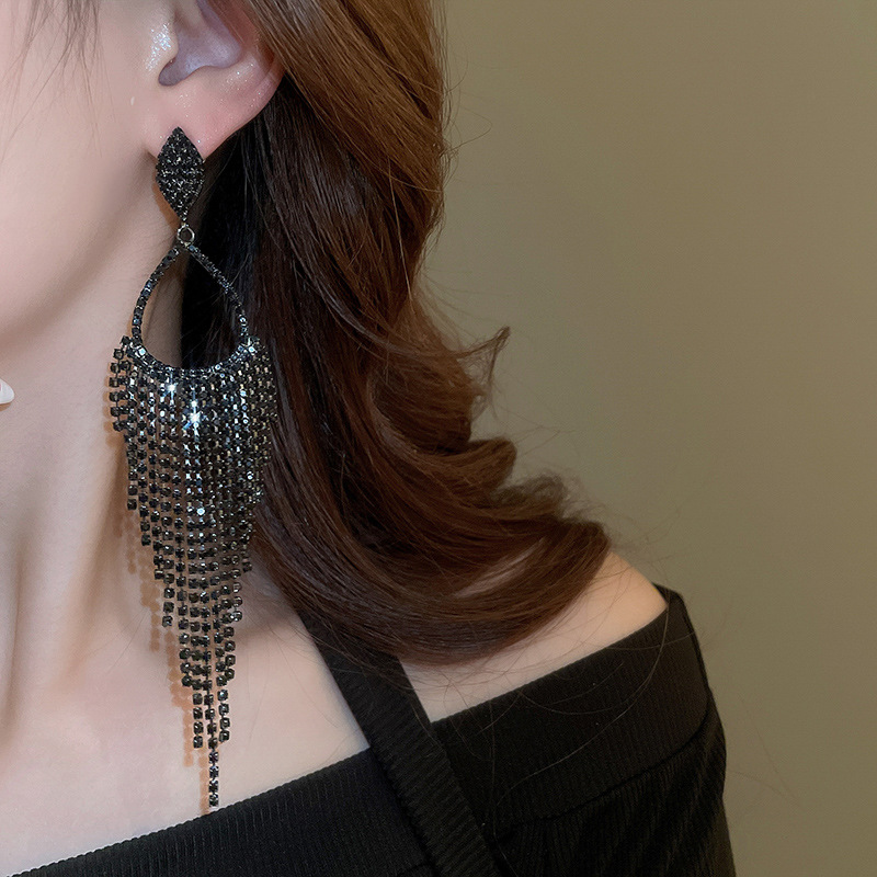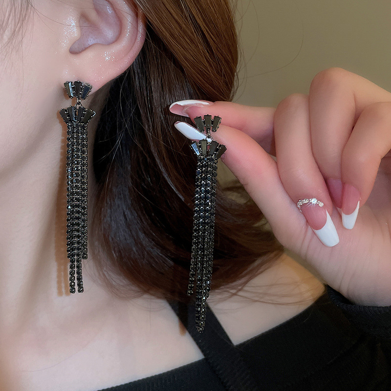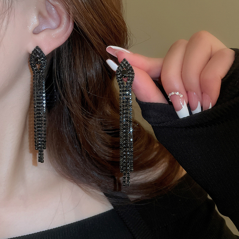 Pendientes de borla de gota de agua de diamante de viento oscuro largo de aguja de plata Pendientes de moda de lujo ligero Pendientes exagerados de temperamento de alta calidad
