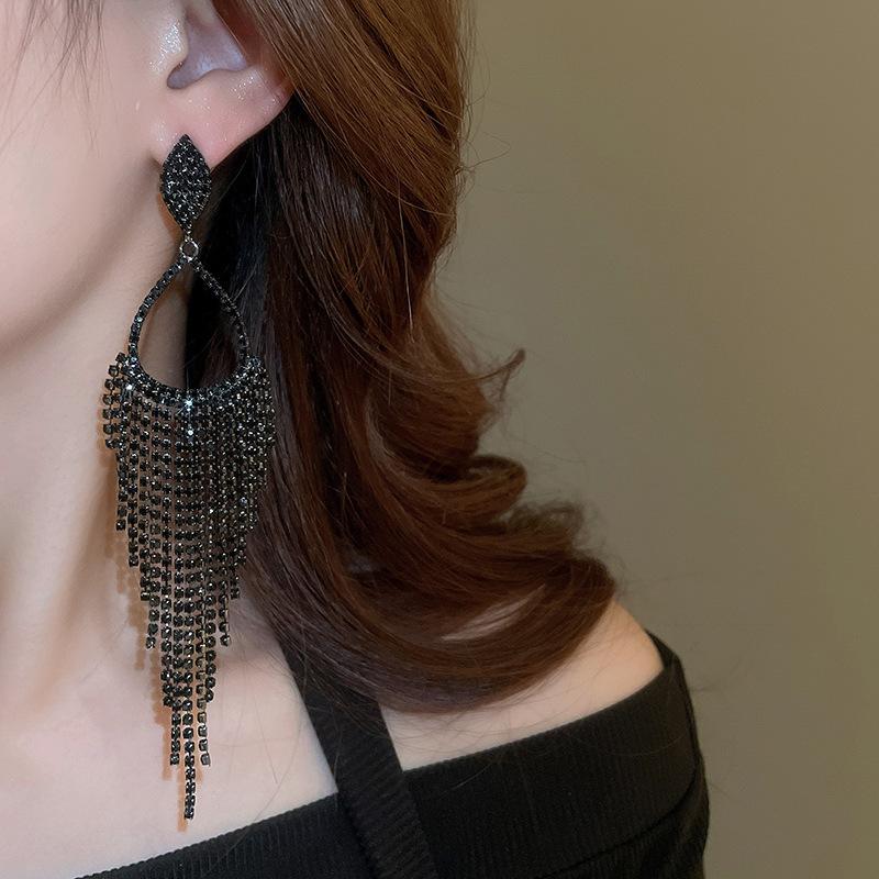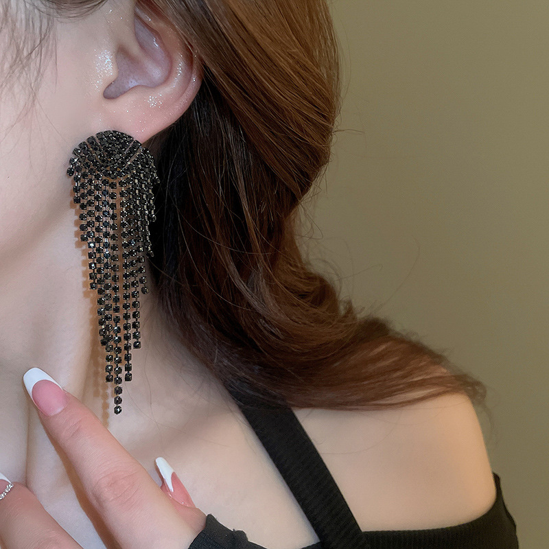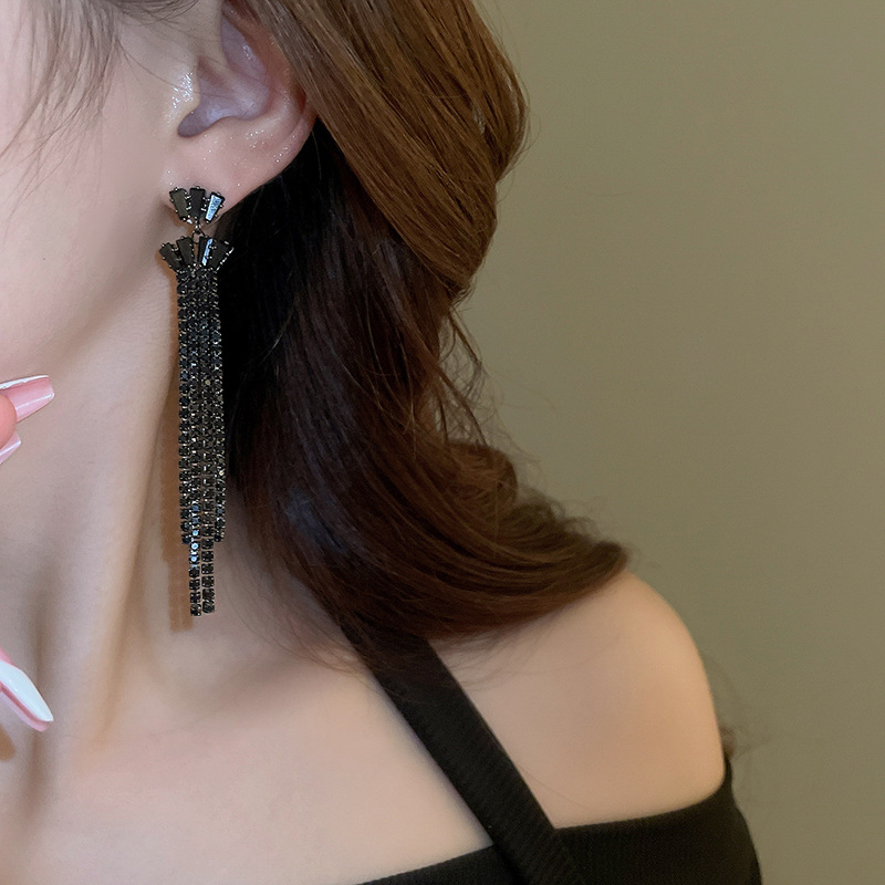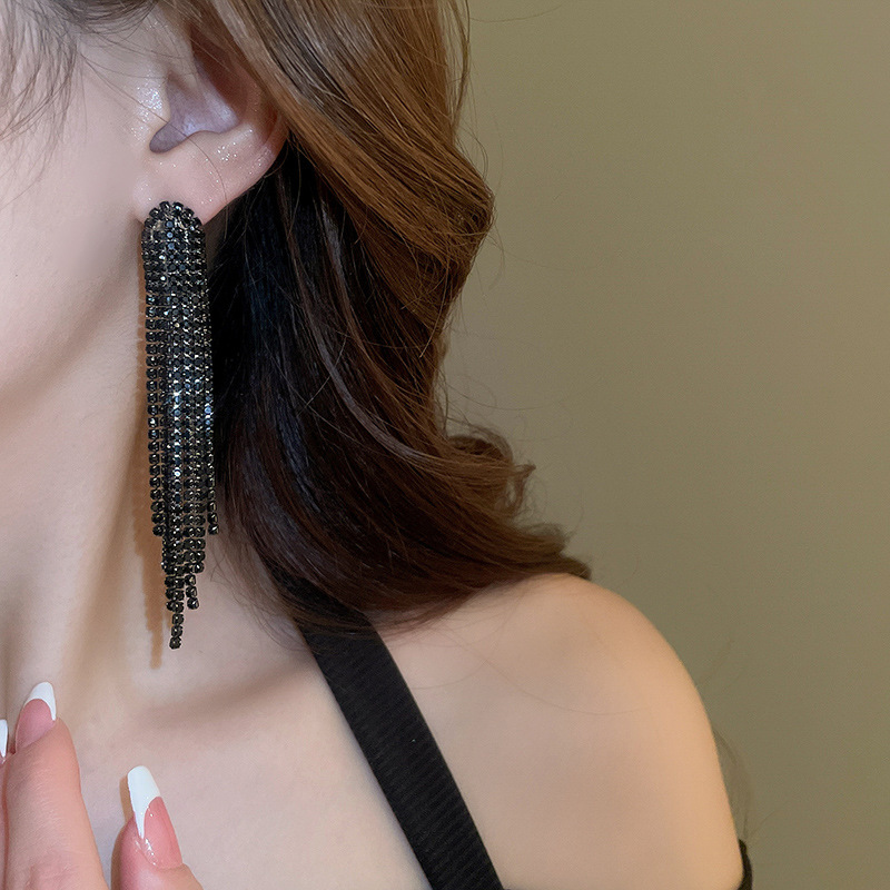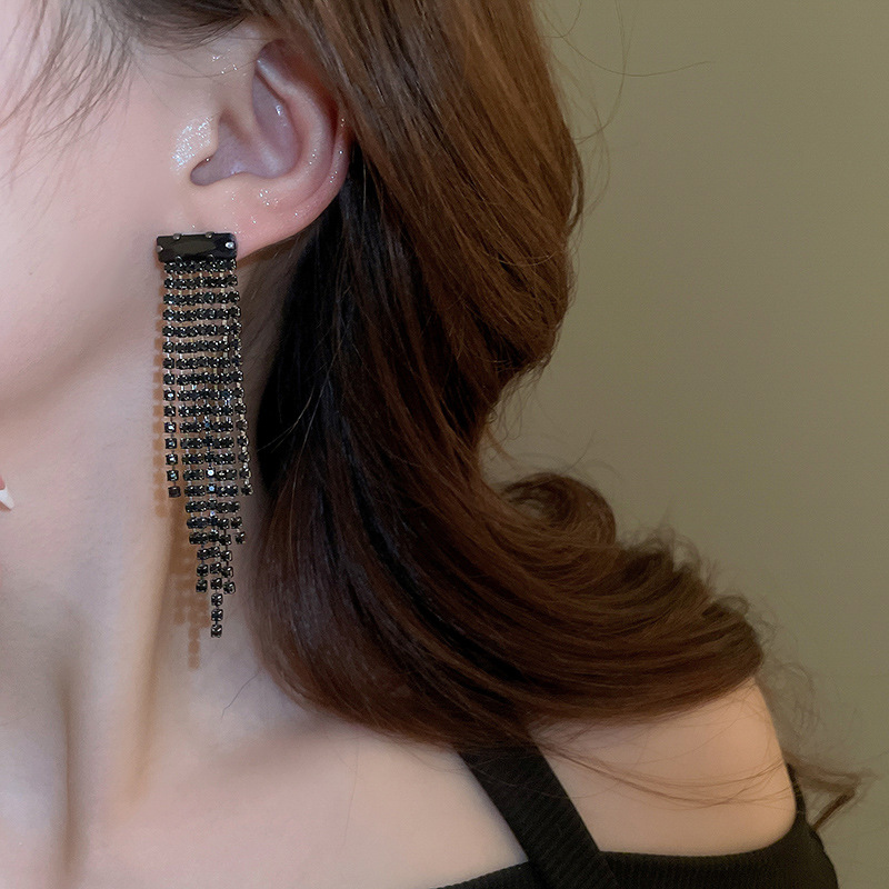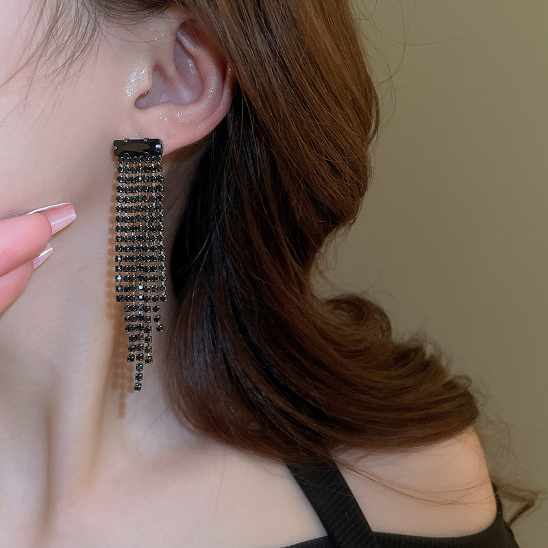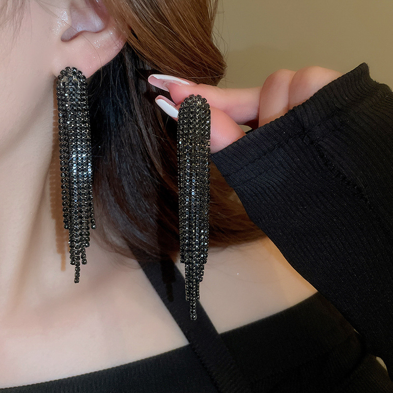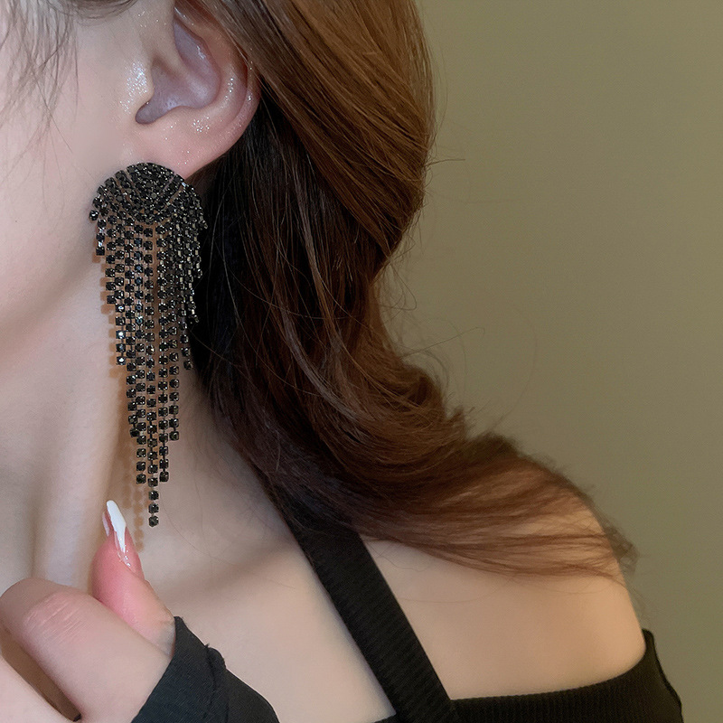 Pendientes de borla de gota de agua de diamante de viento oscuro largo de aguja de plata Pendientes de moda de lujo ligero Pendientes exagerados de temperamento de alta calidad
