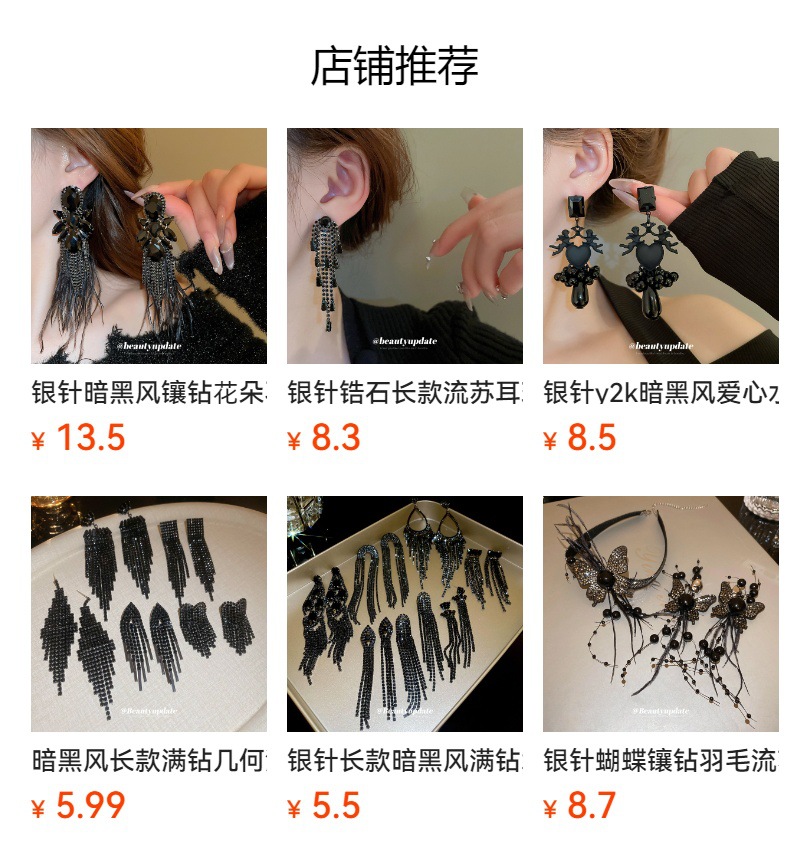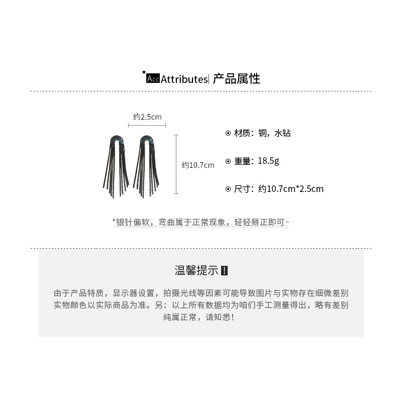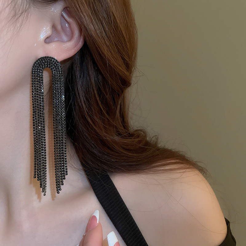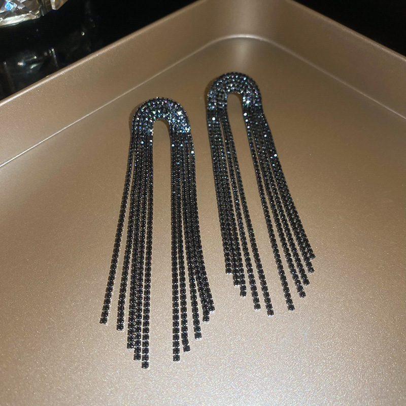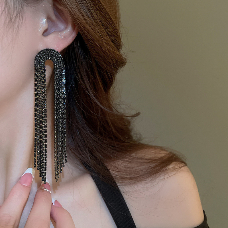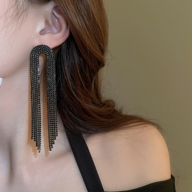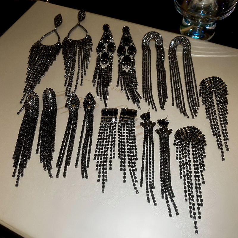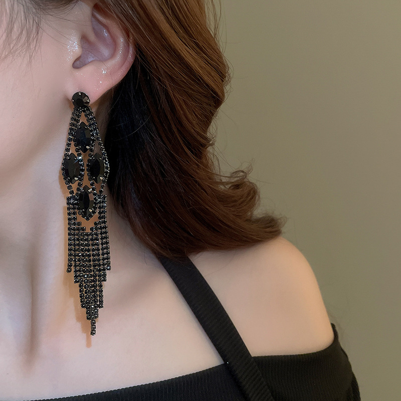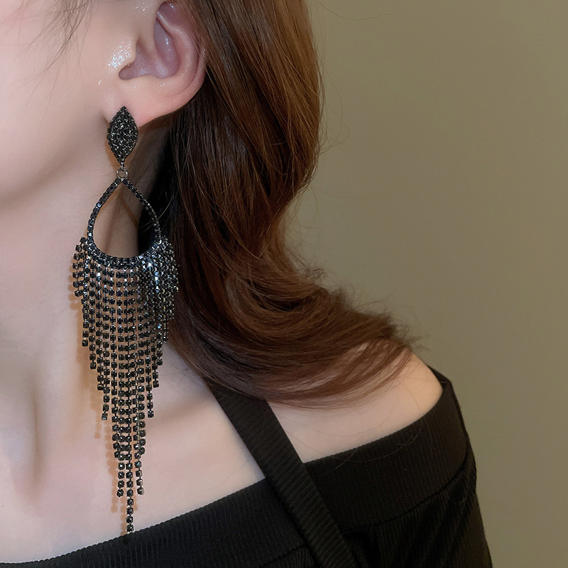 Pendientes de borla de gota de agua de diamante de viento oscuro largo de aguja de plata Pendientes de moda de lujo ligero Pendientes exagerados de temperamento de alta calidad