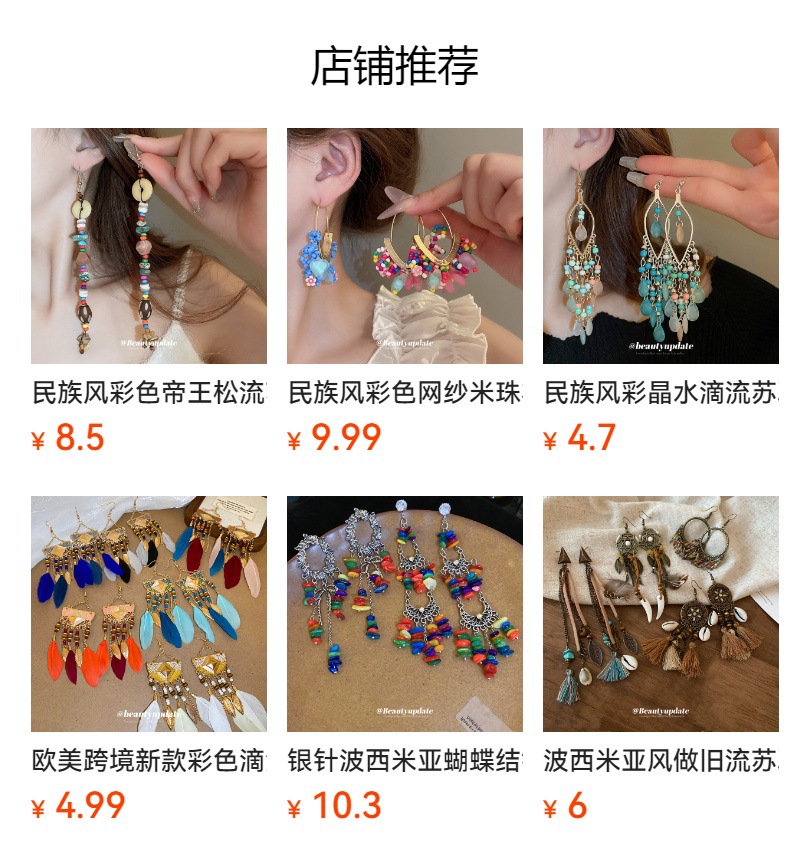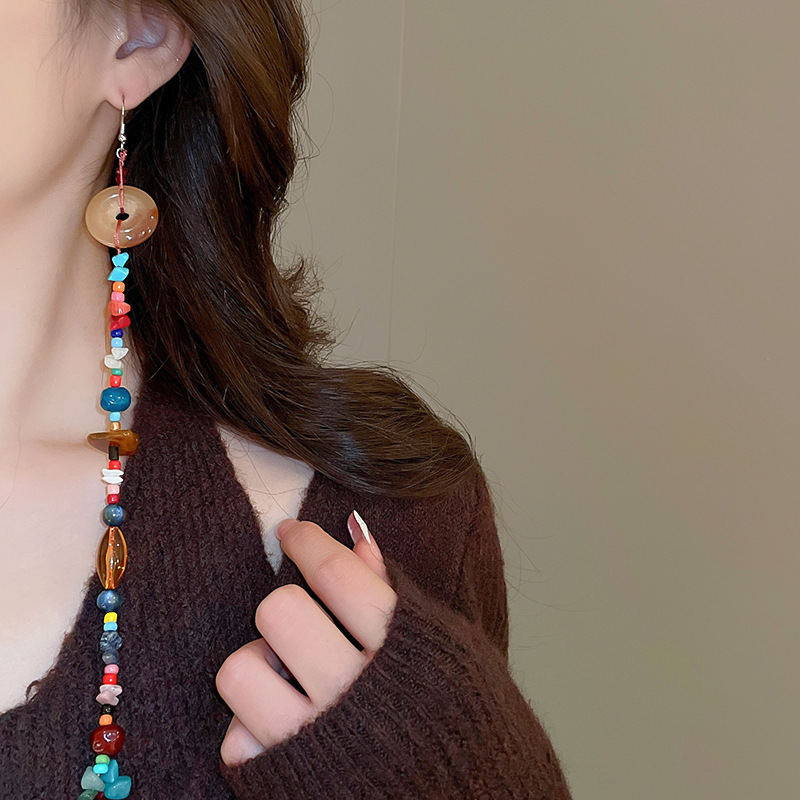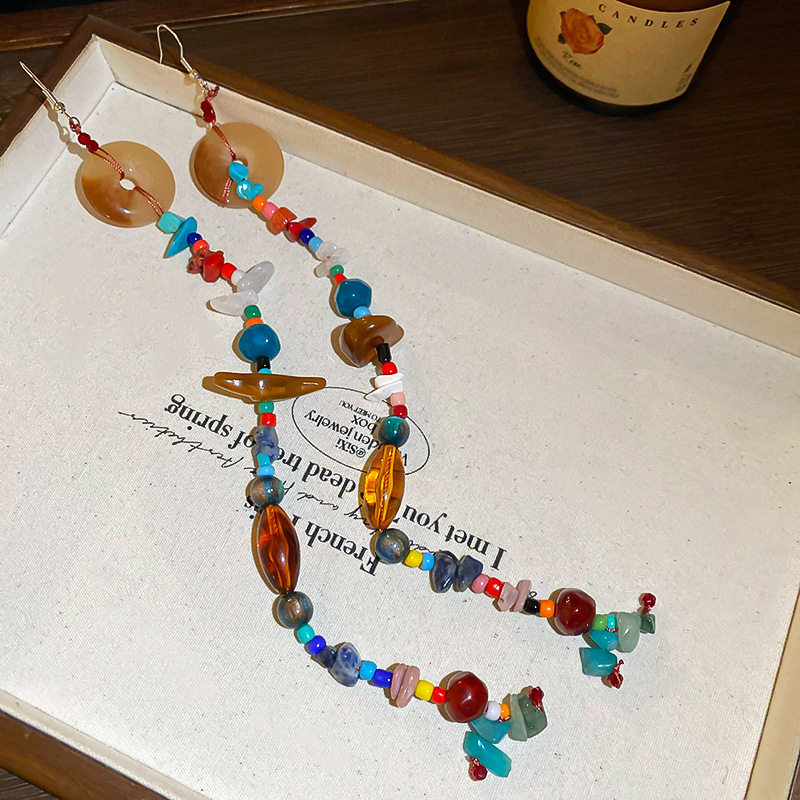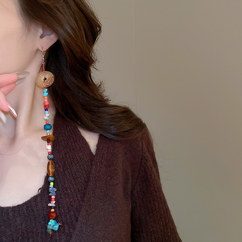 Pendientes de cuentas de resina de color irregular de estilo étnico Pendientes de borla ultralargos Pendientes frescos pequeños retro al por mayor