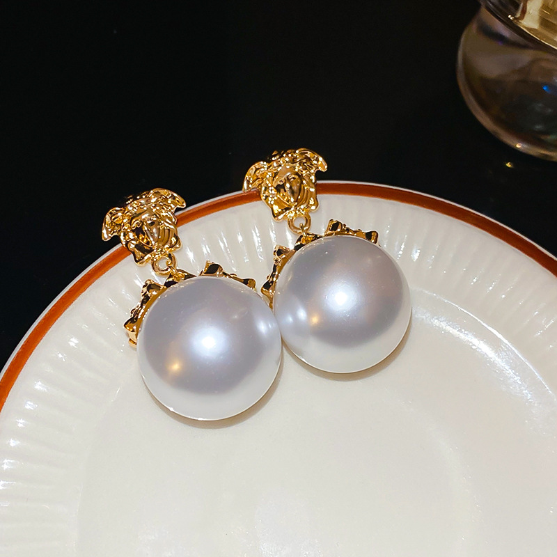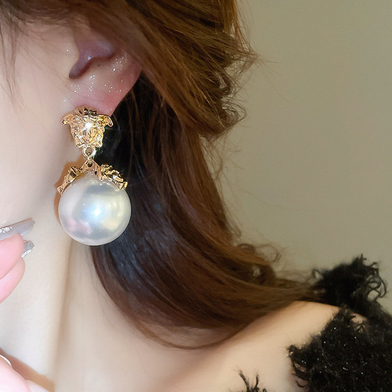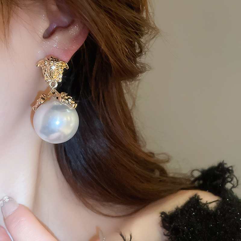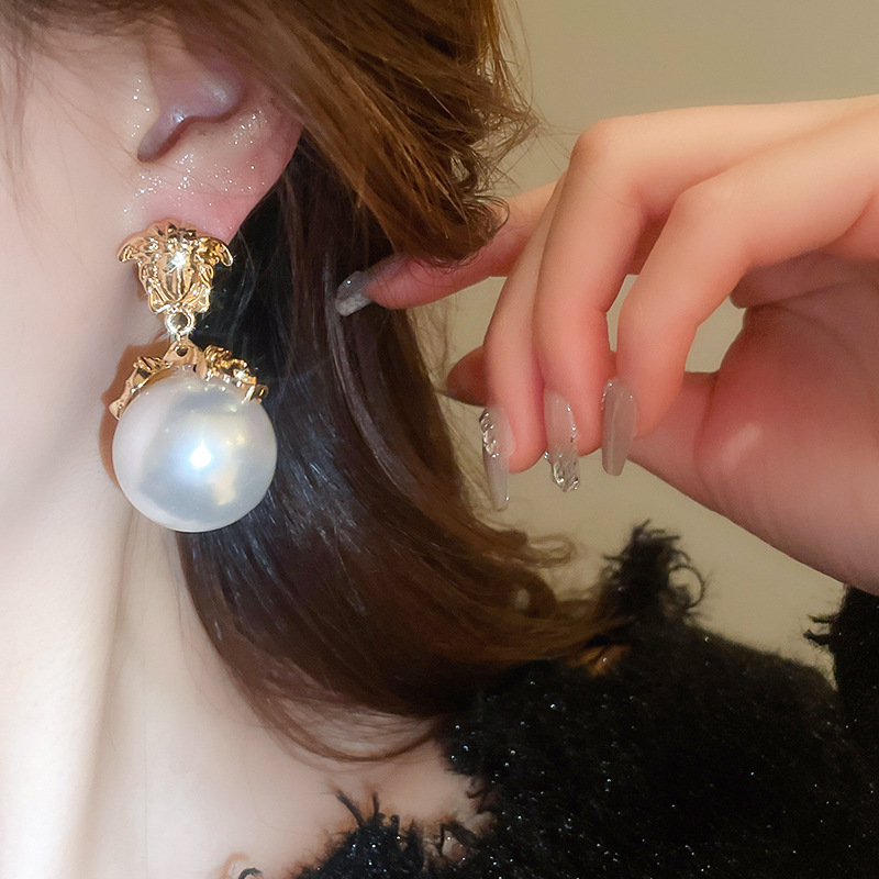 Aguja de plata Vintage Retrato Pendientes de perlas Pendientes de nicho femenino Pendientes de temperamento de moda Lujo ligero Sentido de alta gama