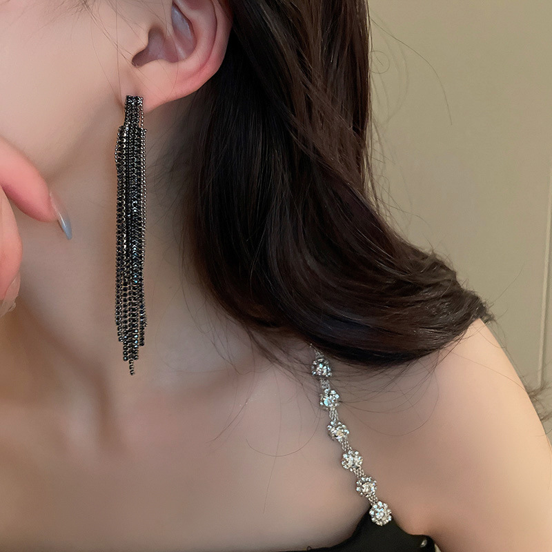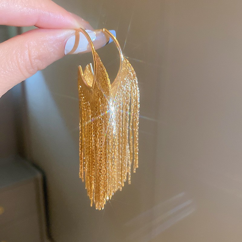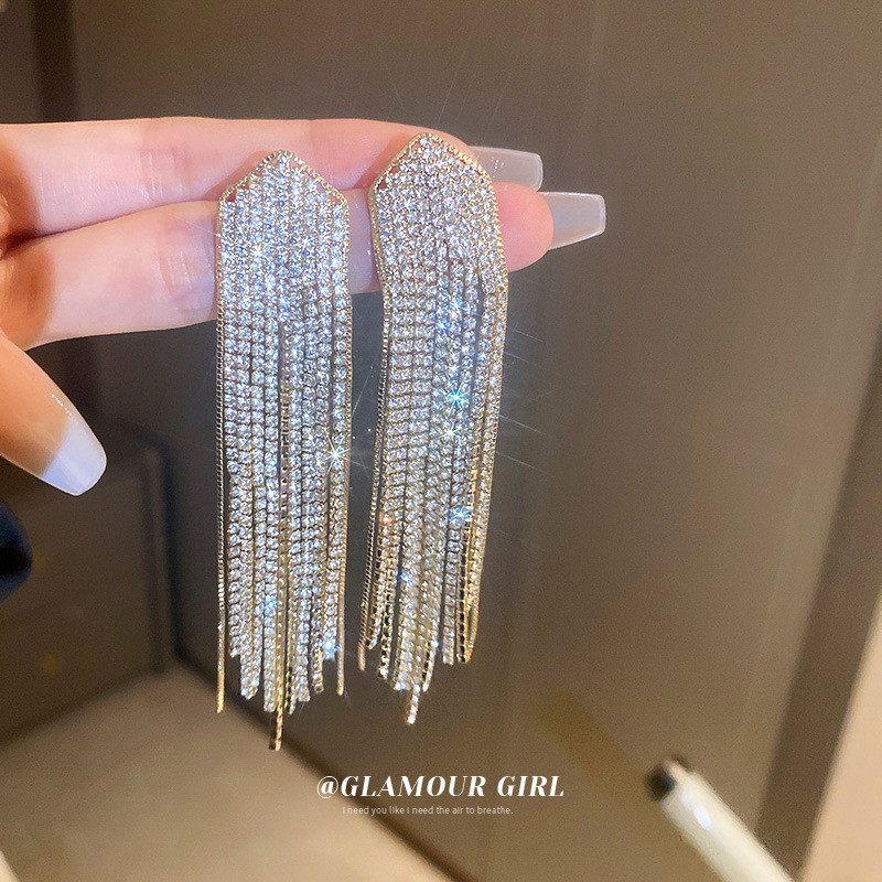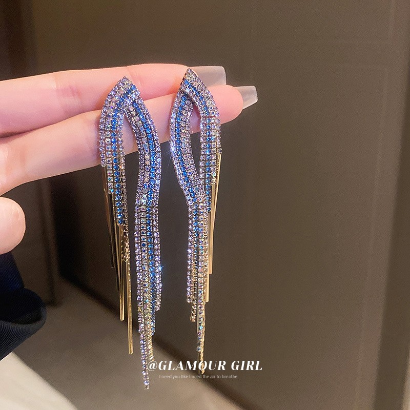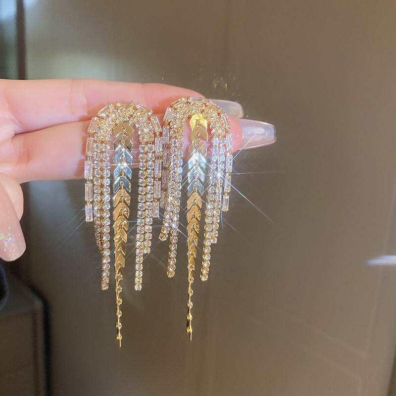 Pendientes de borla de hoja de circón largo de viento de metal con aguja de plata Pendientes de moda exquisita Pendientes de lujo ligero de viento frío