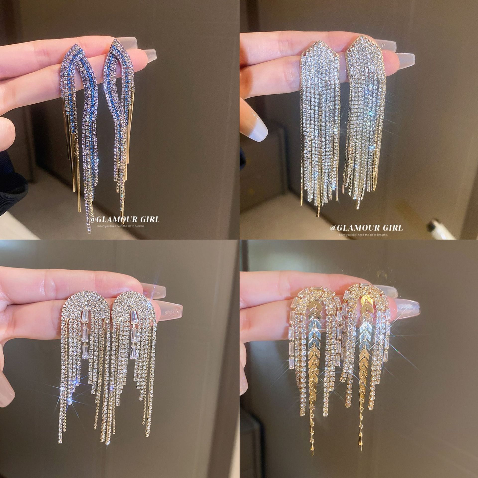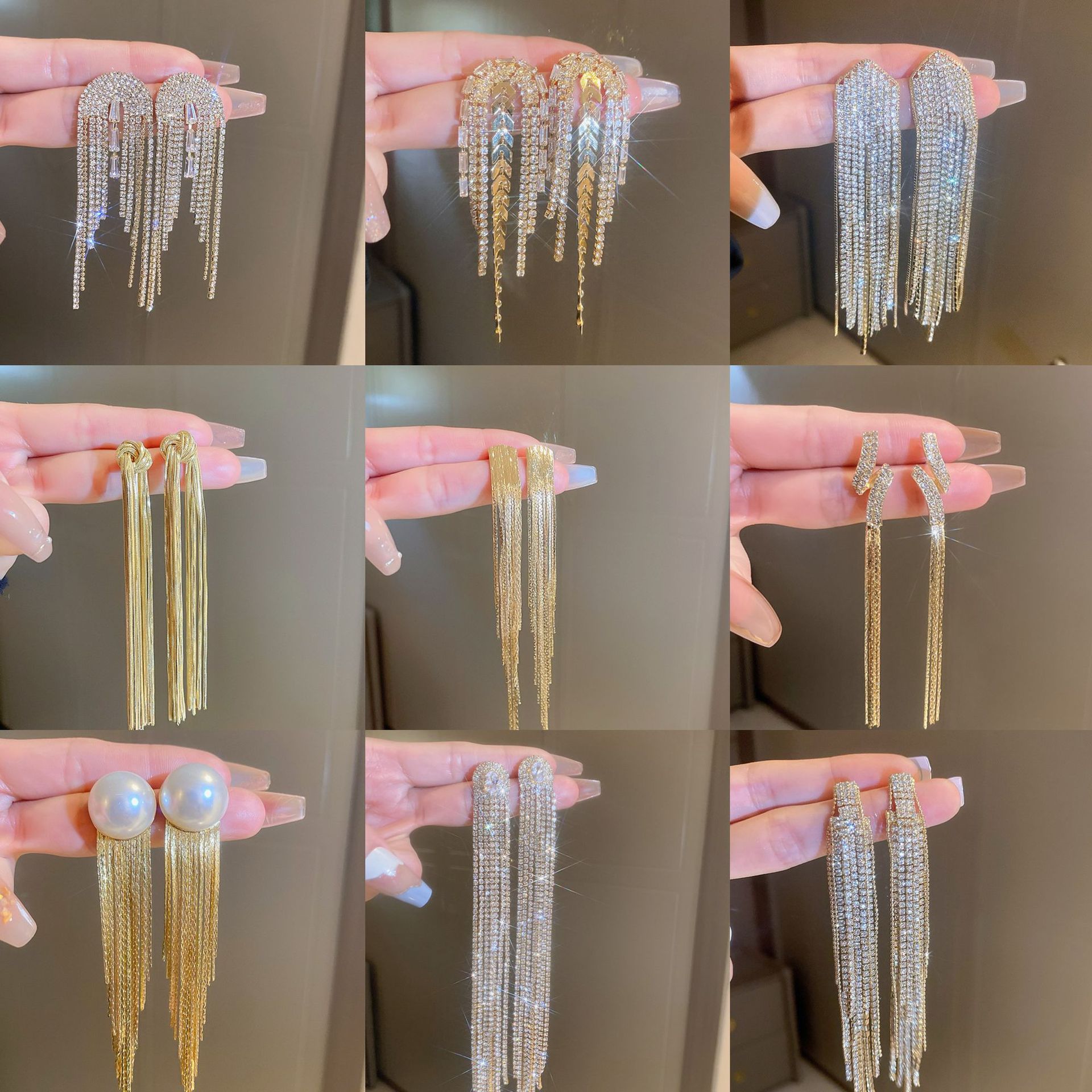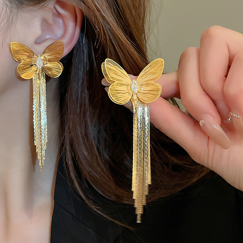 Pendientes de borla de hoja de circón largo de viento de metal con aguja de plata Pendientes de moda exquisita Pendientes de lujo ligero de viento frío