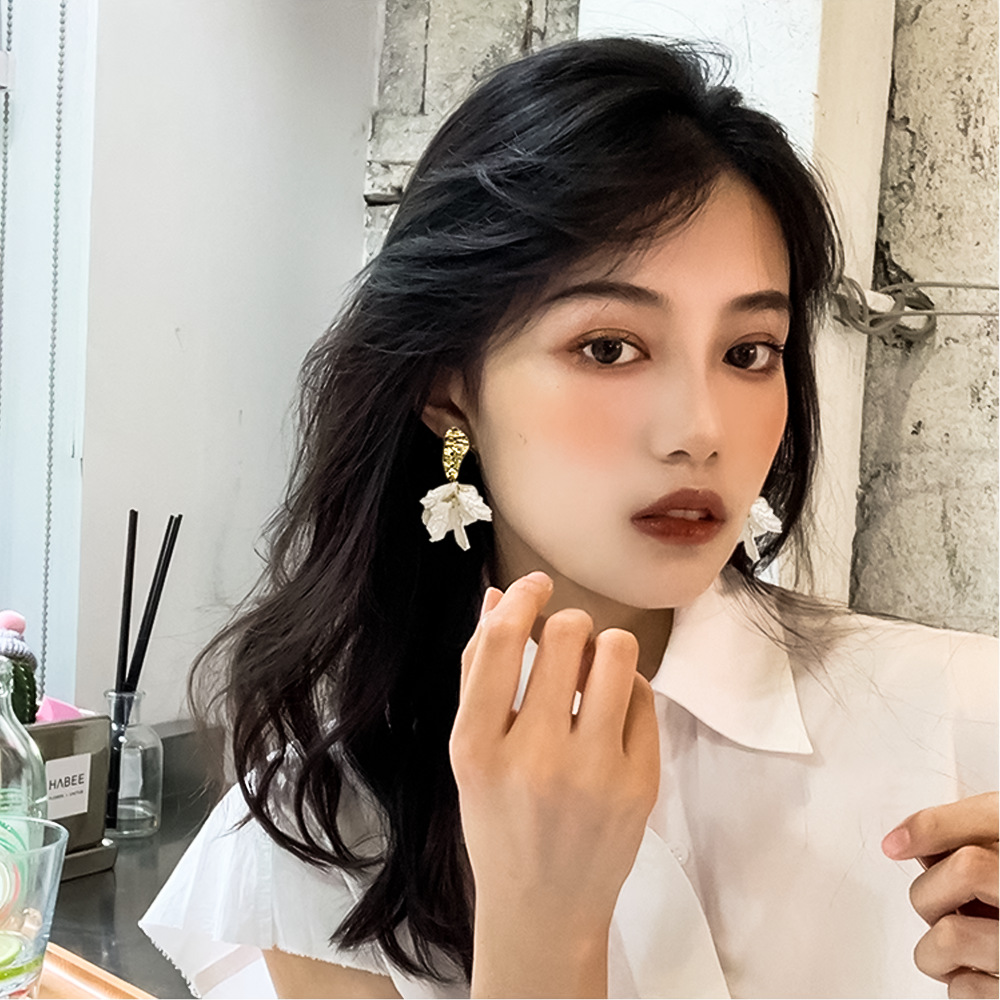 Pendientes de concha de textura irregular con pliegues de aguja de plata Pendientes de temperamento de moda simple Pendientes elegantes de lujo ligero de alta calidad