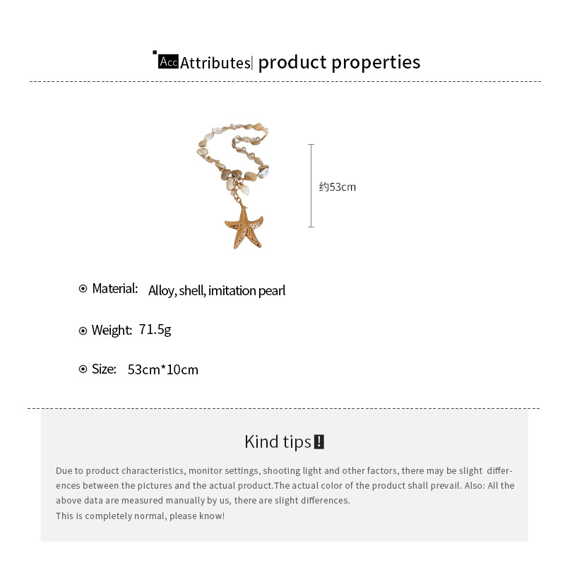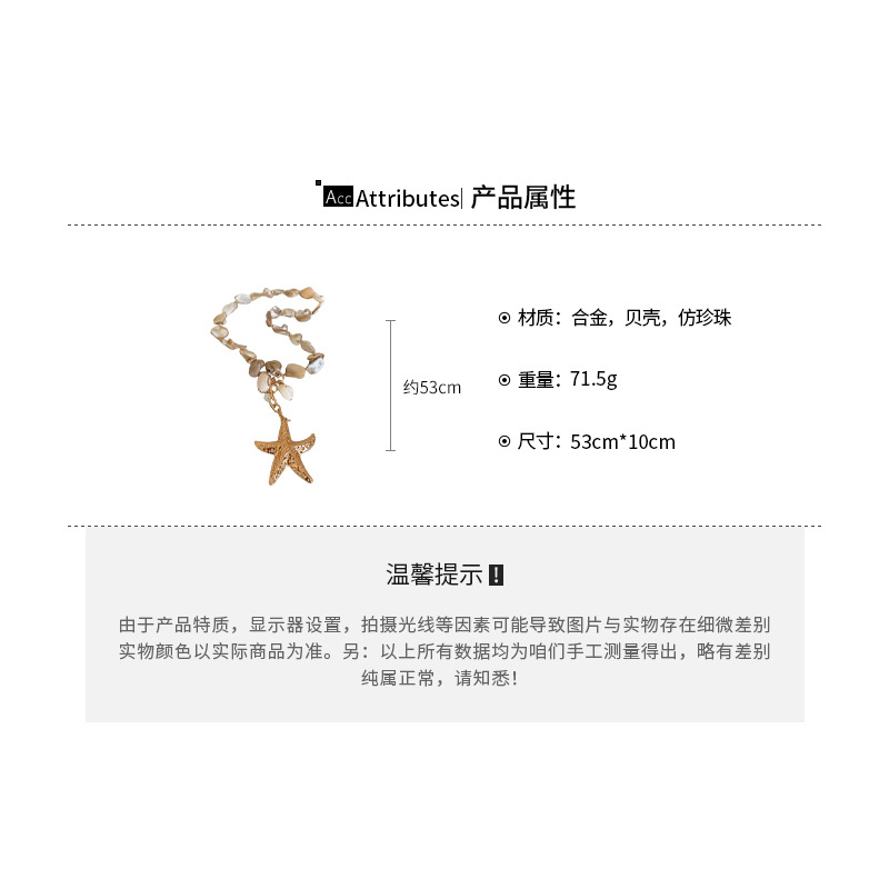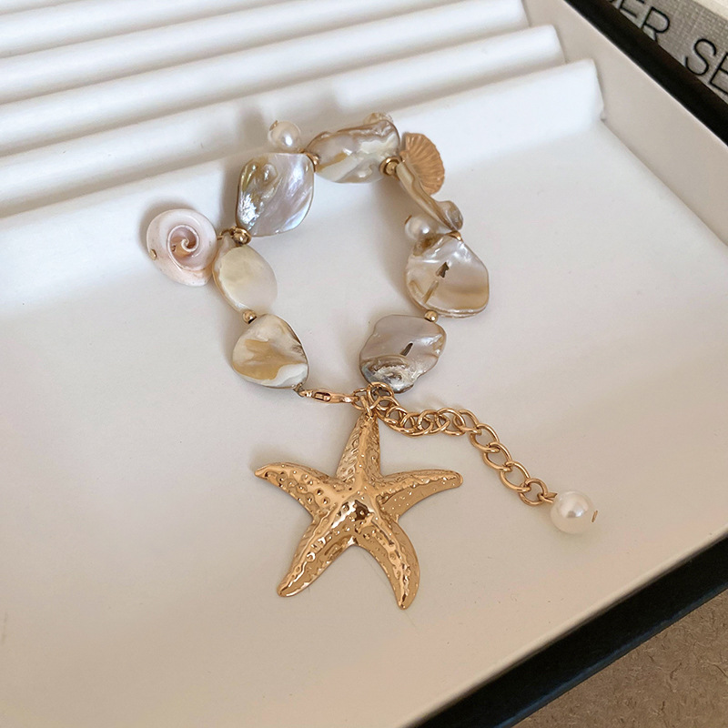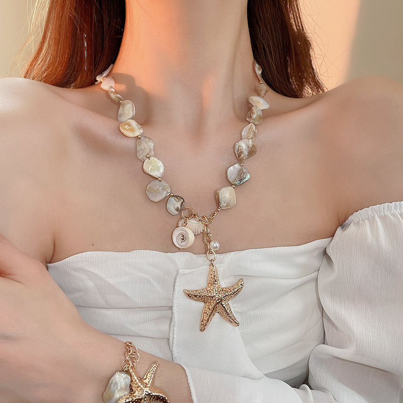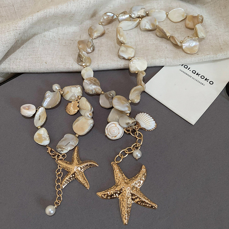Collar de perlas de estrella de mar con cuentas de estilo de vacaciones junto al mar, nueva cadena de clavícula transfronteriza, joyería de lujo ligera de alta gama de nicho para mujer