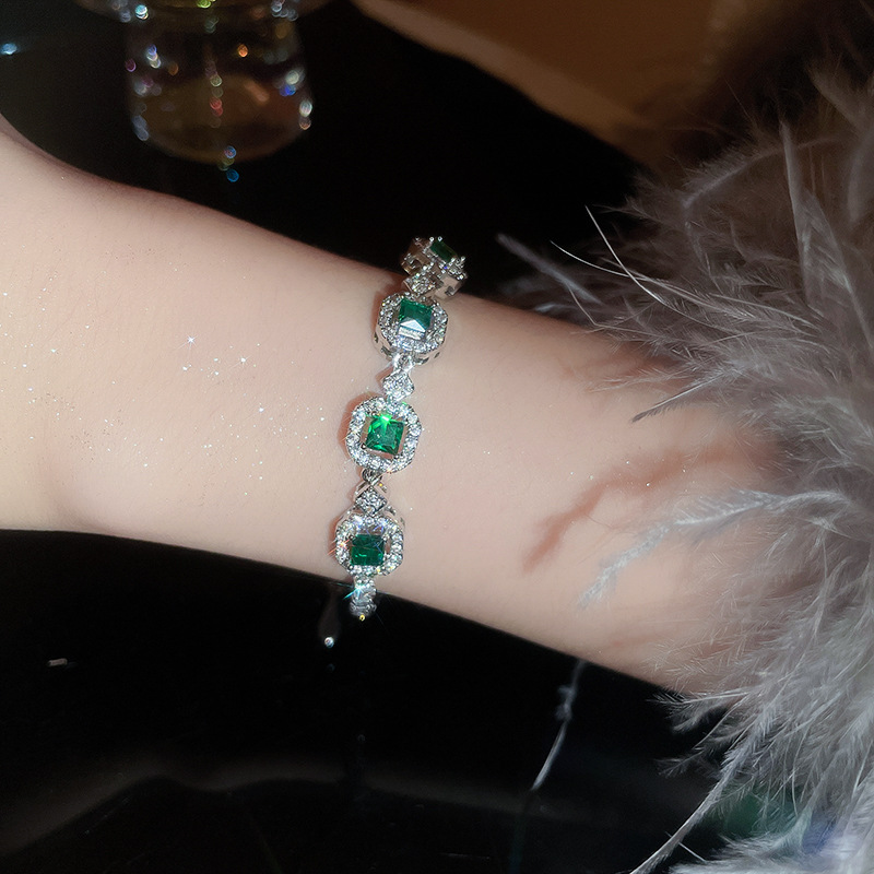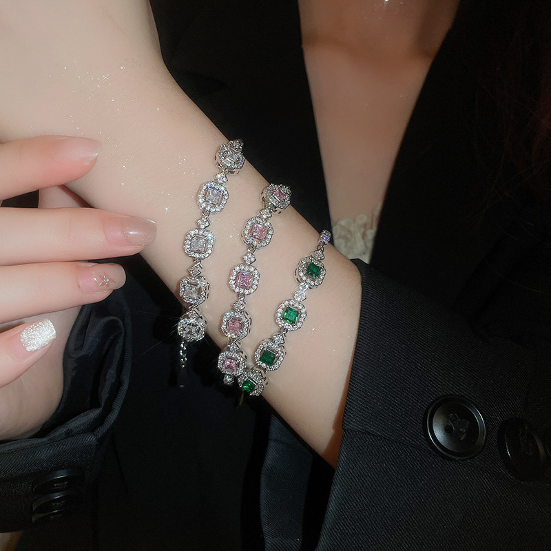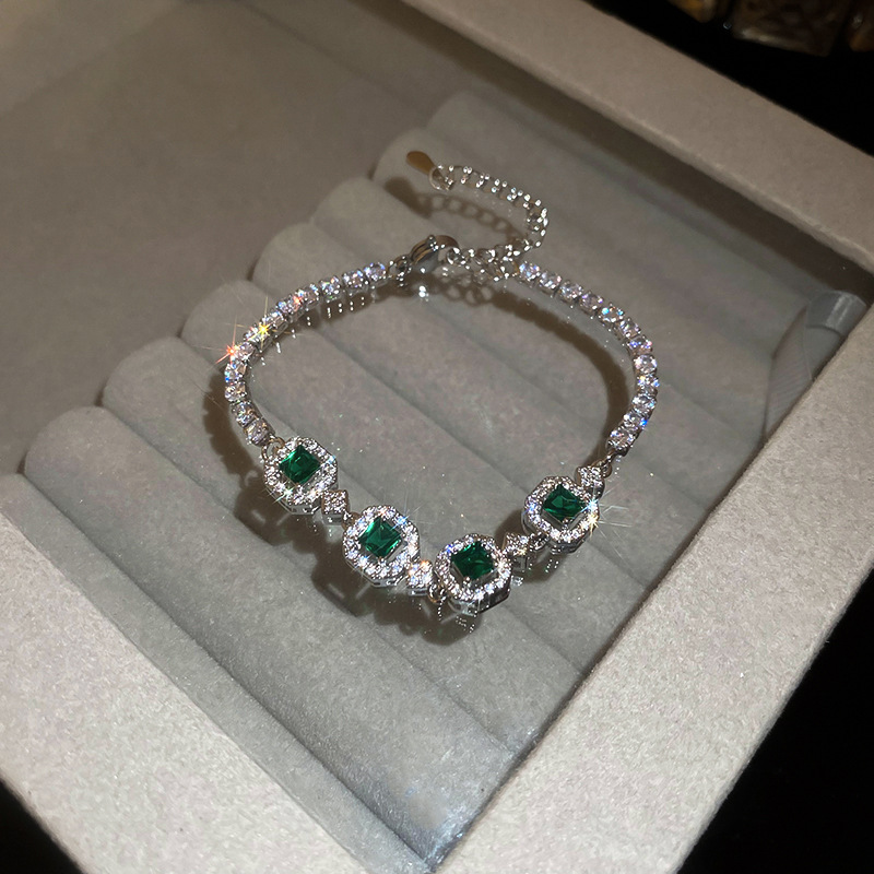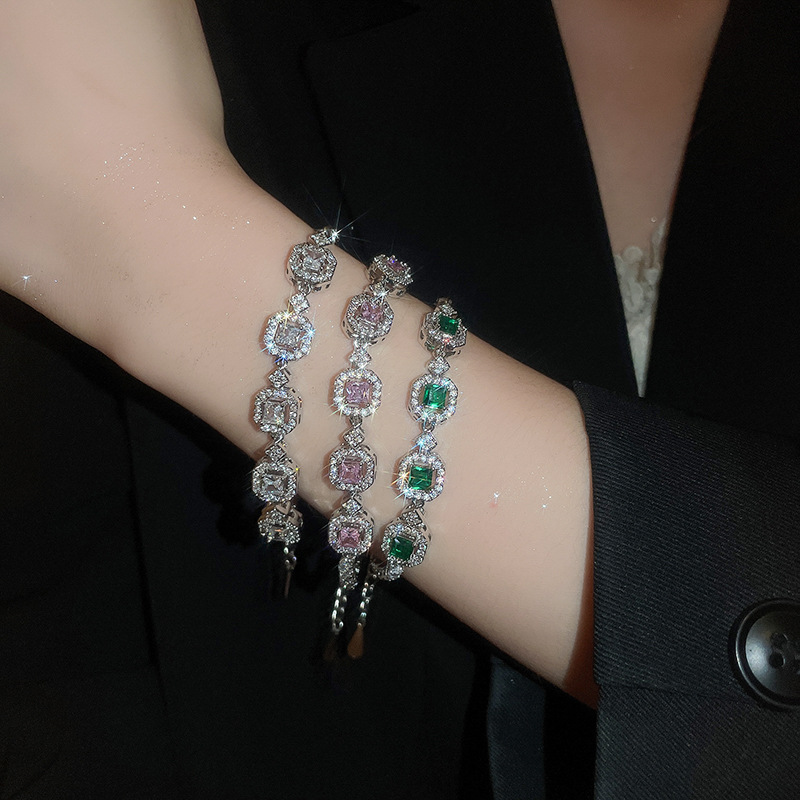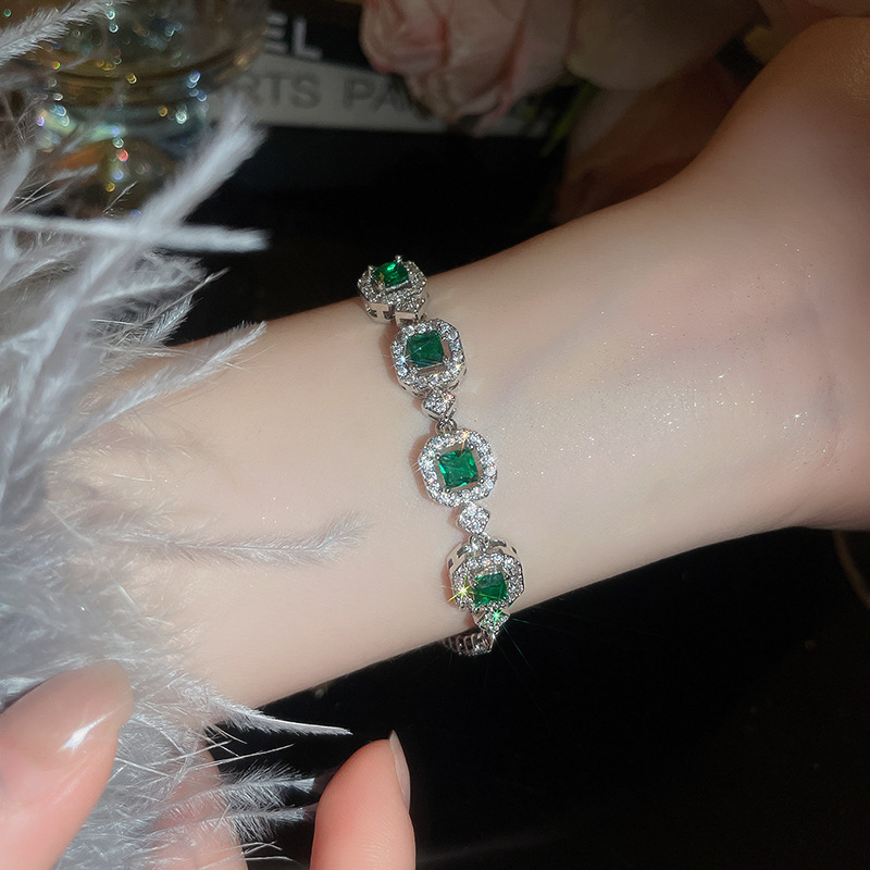 Pulsera geométrica de diamantes esmeralda de estilo palacio francés Pulsera de temperamento magnífico, exquisita luz y lujo, joyería de alta calidad para mujer