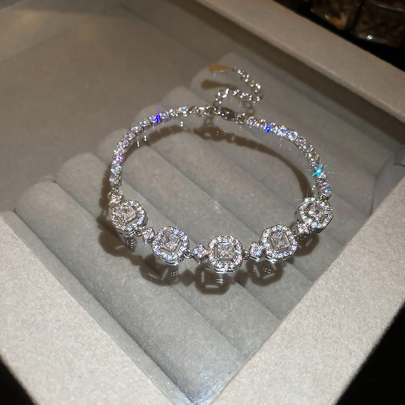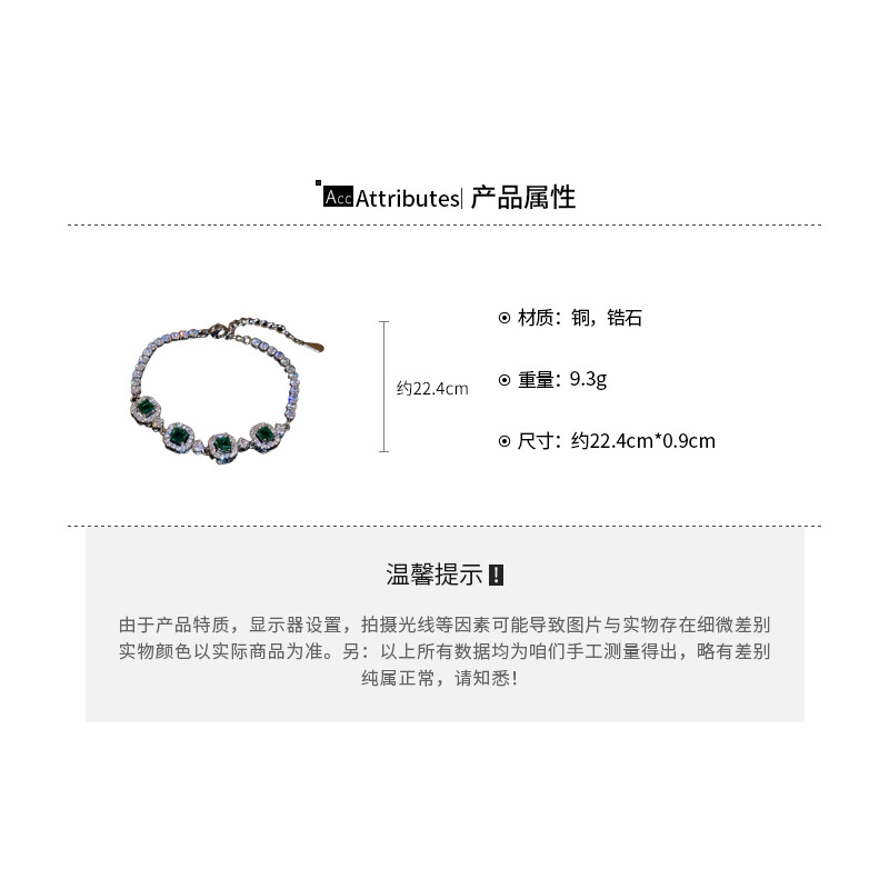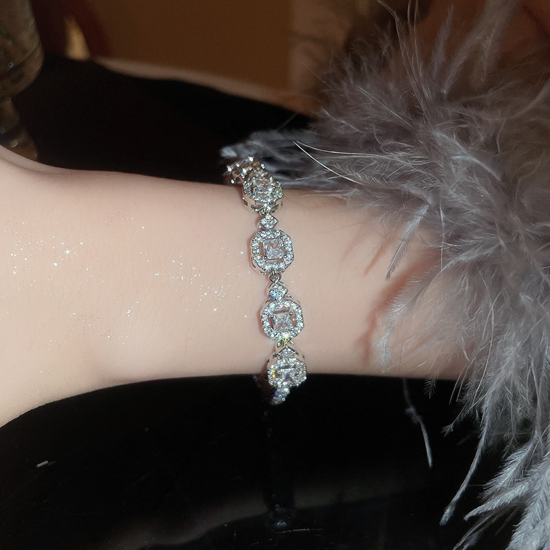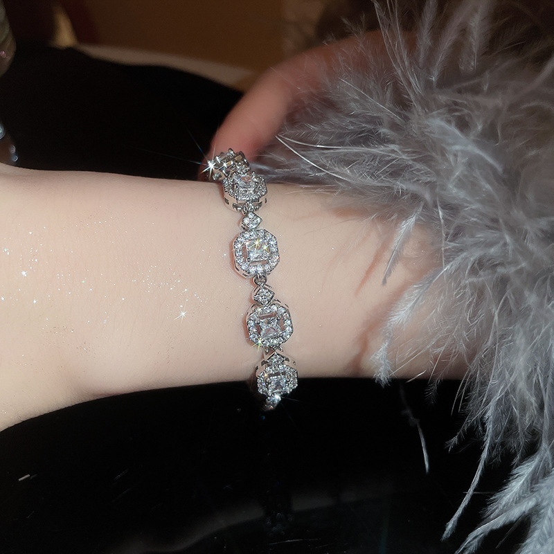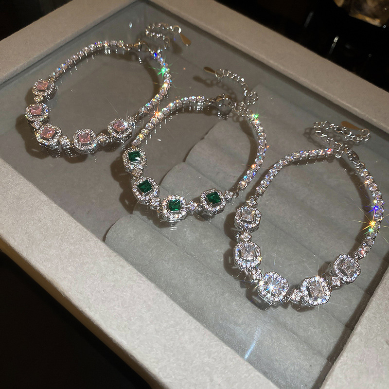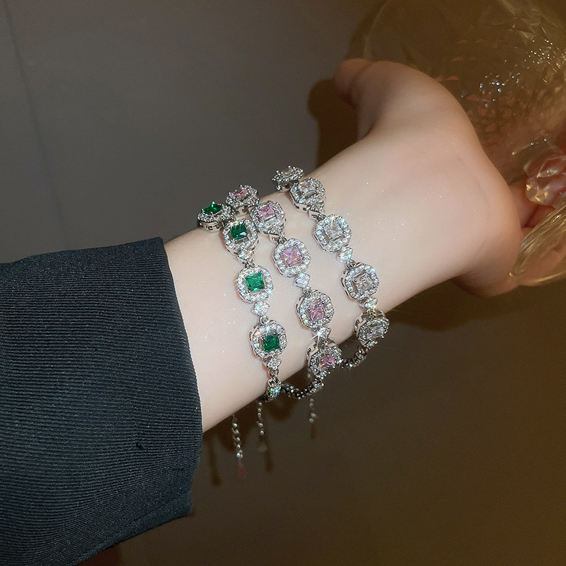 Pulsera geométrica de diamantes esmeralda de estilo palacio francés Pulsera de temperamento magnífico, exquisita luz y lujo, joyería de alta calidad para mujer