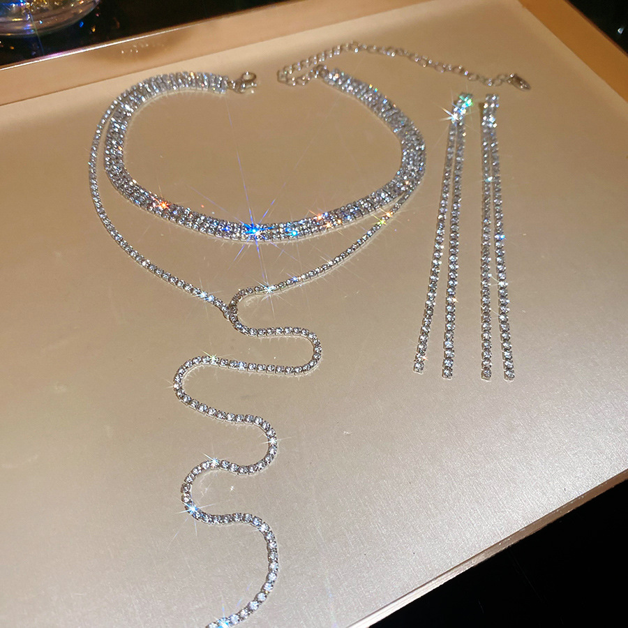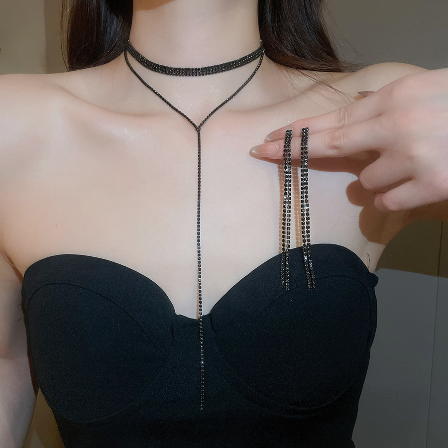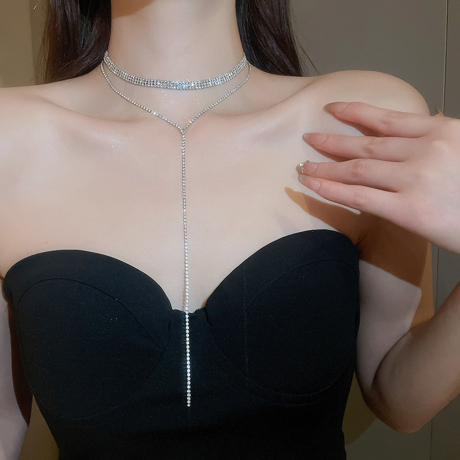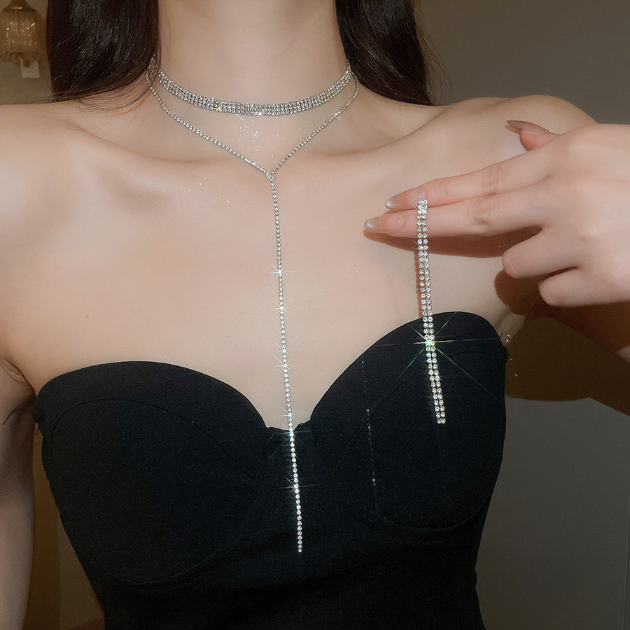 Collar de borlas multicapa con incrustaciones de diamantes, cadena de clavícula de todo fósforo de moda exquisita de nicho, lujo ligero, collar de temperamento de alta calidad al por mayor