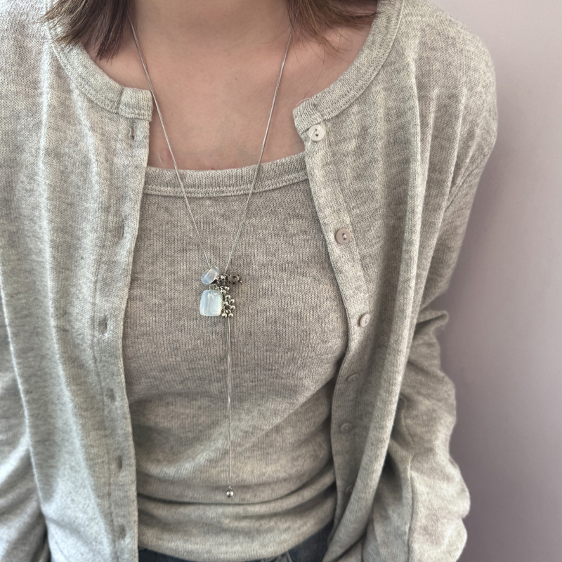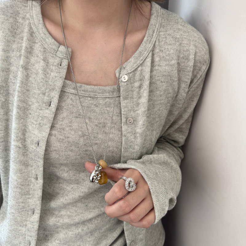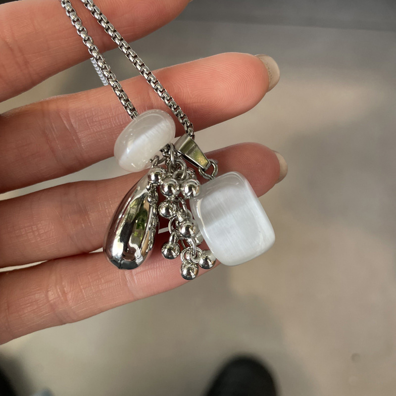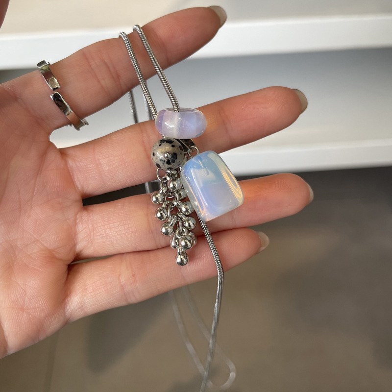 Collar colgante de cadena de uva de piedra de acero de titanio, cadena de clavícula de todo fósforo simple y de moda, cadena de suéter de sentido avanzado de nicho